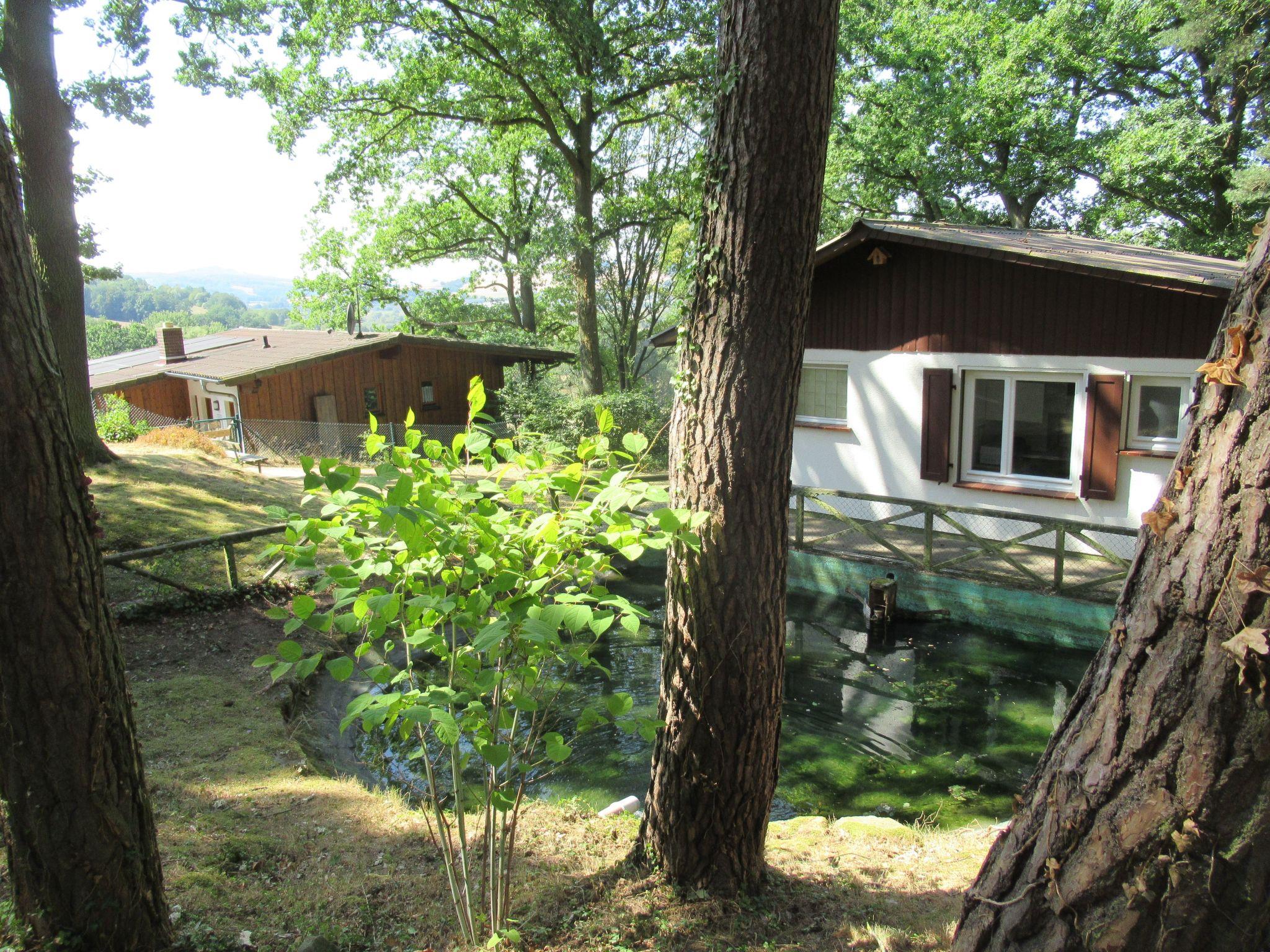 These four holiday houses are situated on a 5000m² private site on a south-facing slope by the edge of a forest, between the Rhön, Vogelsberg and Knüll Mountains, with a view into the Fulda Valley.