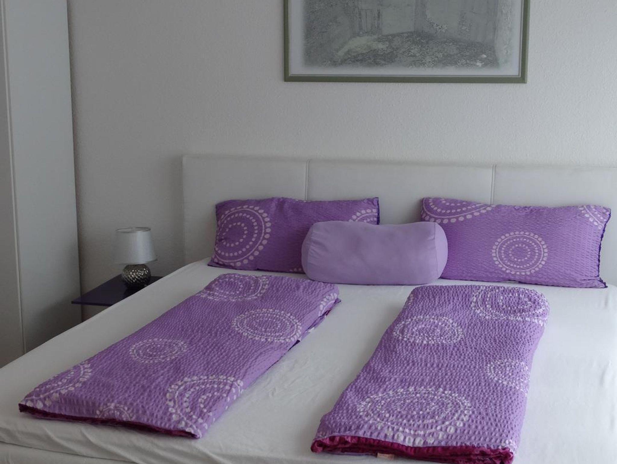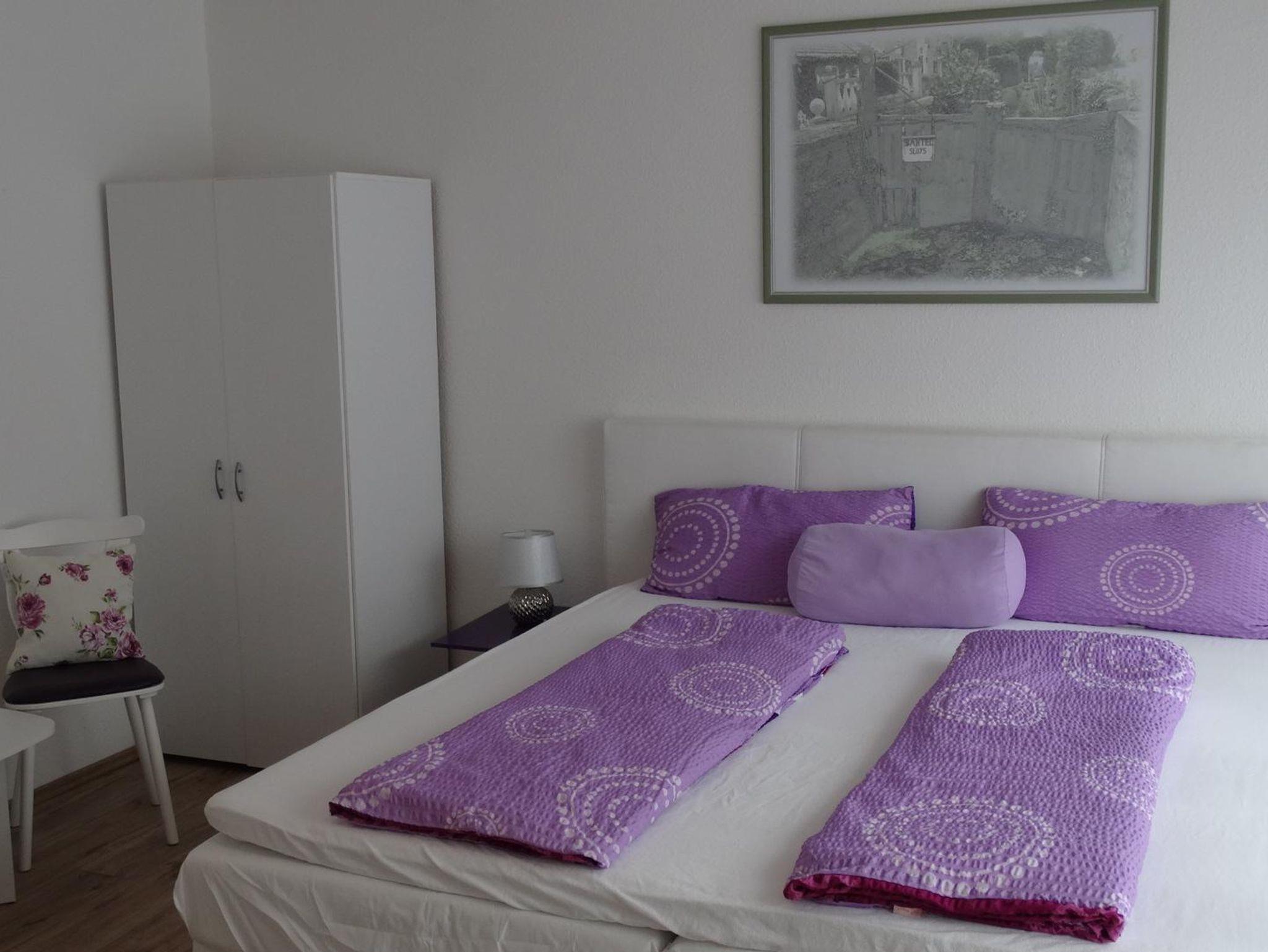Unsere helle Ferienwohnung bietet mit ca. 70 qm Platz für 2-4 Personen. Die Wohnung besteht aus zwei getrennten Wohn-Schlafzimmern, sowie je einem dazugehörigen Bad und je einem Balkon (Ost und Süd). Die Küche ist komplett ausgestattet: Spülmaschine, Backofen, Eierkocher, Toaster, Wasserkocher, Kaffeefiltermaschine und Kapselmaschine.