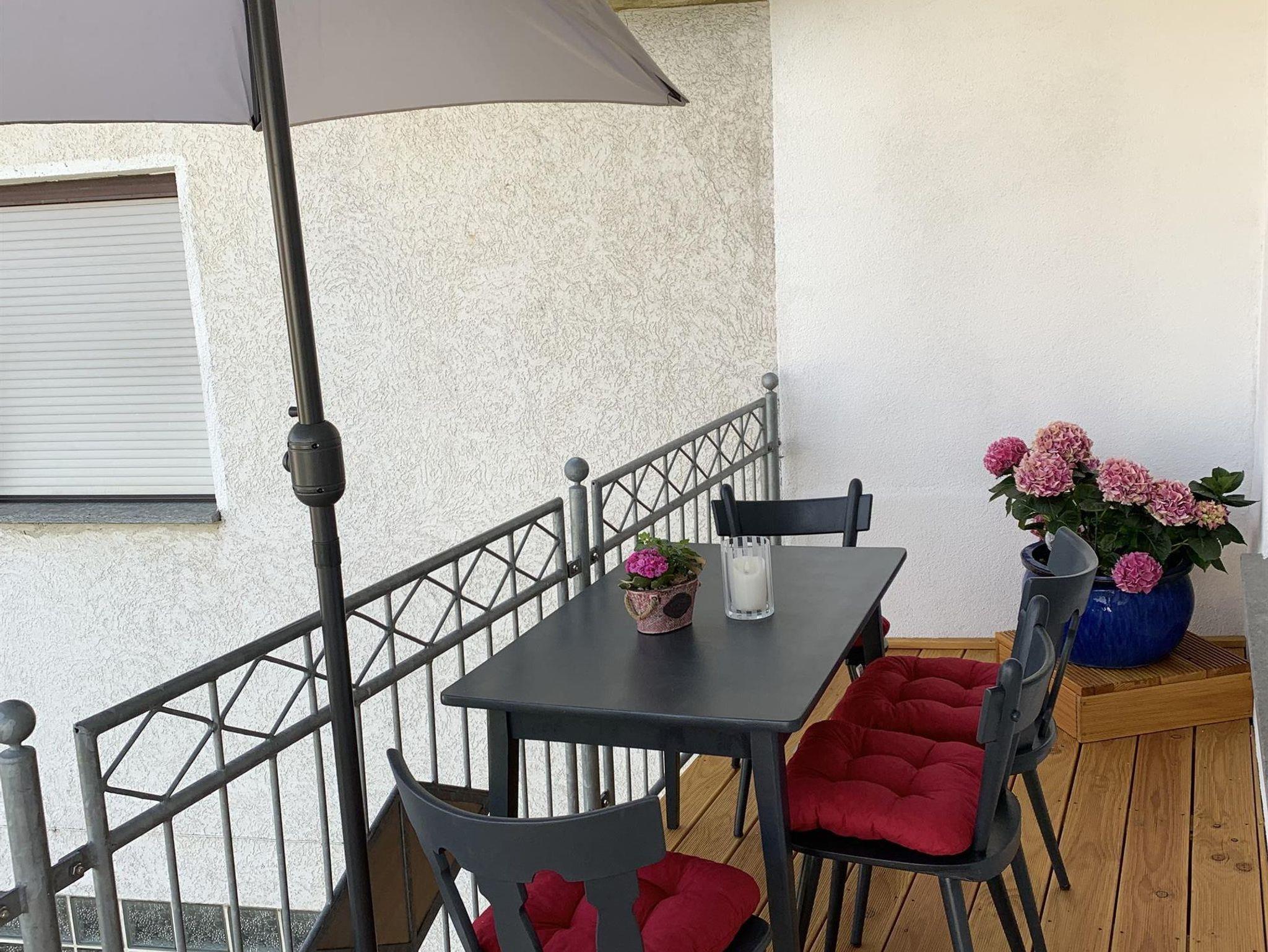 Neue , moderne und helle Ferienwohnung. Modern und zeitgemäß eingerichtet. 1. Stock mit Balkon und eigener, abschliessbarer Garage und separaten Fitnessraum. In jedem Raum elektrische Jalousien, barrierefreises Bad.