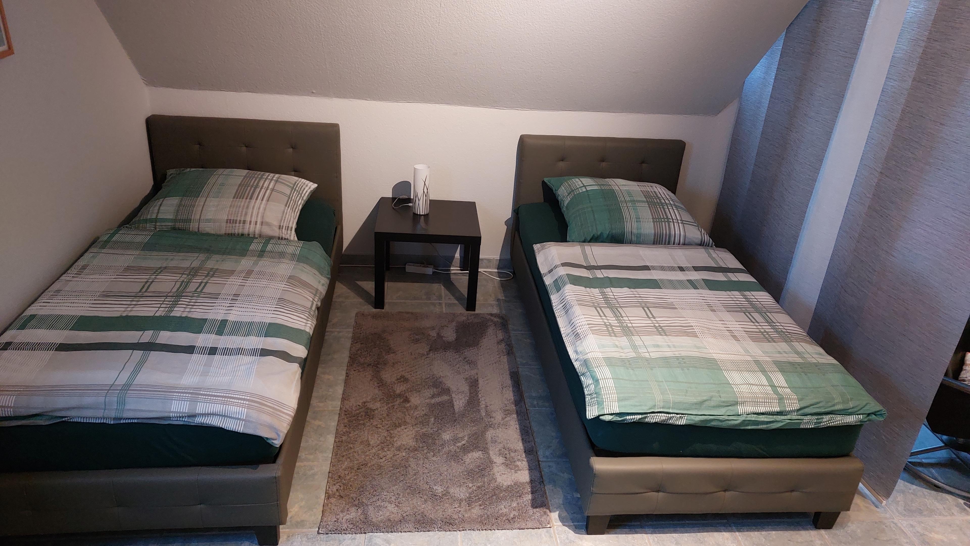 Die Wohnung besteht aus einem Wohn/Schlafzimmer mit 2 Einzelbetten, einer Ausziehcouch mit 2 Schlafplätzen (80x200cm) sowie einem separatem Schlafzimmer mit Doppelbett (180x200 cm), auch getrennt stellbar.