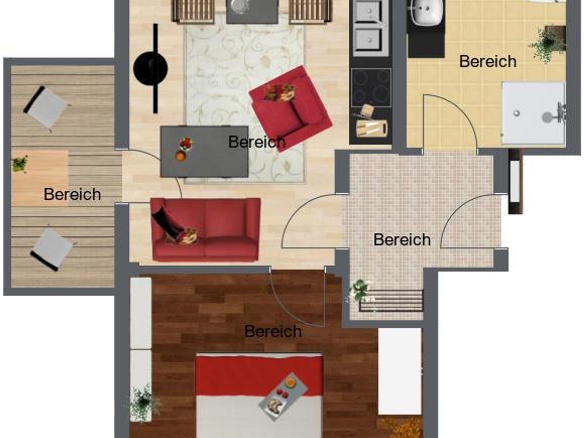 Ihre Wohnung hat ein Schlafzimmer mit Doppelbett (1,80*2,00 m), einen kombinierten Wohnraum mit kleinem Sofa und Sessel sowie kompletter Einbau-Küchenzeile und Essplatz, einen kleinen Balkon, ein Duschbad und einen kleinen Flur. Insgesamt beziehen Sie rund 45 m². Selbstverständlich ist auch ein kleiner Tresor für Ihre Wertsachen vorhanden. Zur Wohnung gehört ein Pkw-Stellplatz.