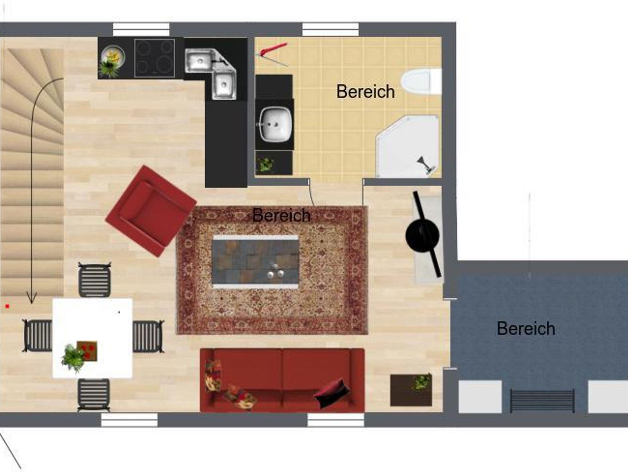 Ihre Wohnung hat im DG ein Schlafzimmer mit Doppelbett (1,80*2,00 m) und einer zusätzliche Schlafcouch. Im 1. OG befindet sich der kombinierten Wohnraum mit kleinem Sofa und Sessel sowie kompletter Einbau-Küchenzeile und Essplatz, ein Duschbad und ein kleiner Flur. Insgesamt beziehen Sie rund 55 m². Selbstverständlich ist auch ein kleiner Tresor für Ihre Wertsachen vorhanden. Zur Wohnung gehört ein Pkw-Stellplatz.