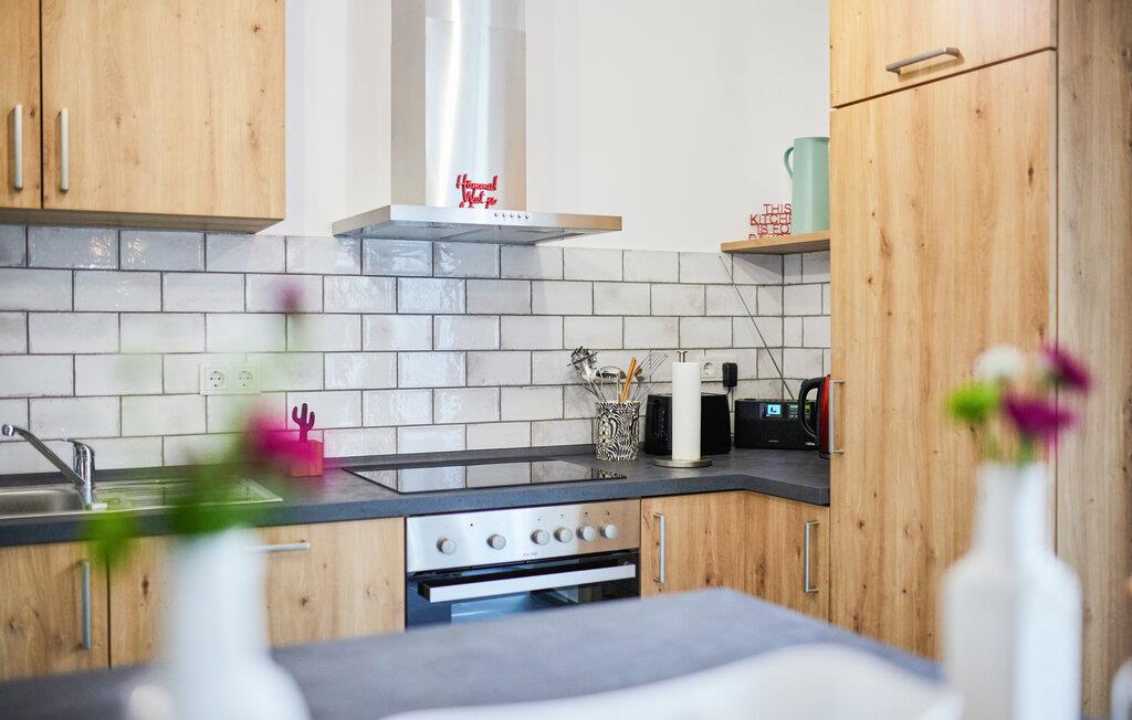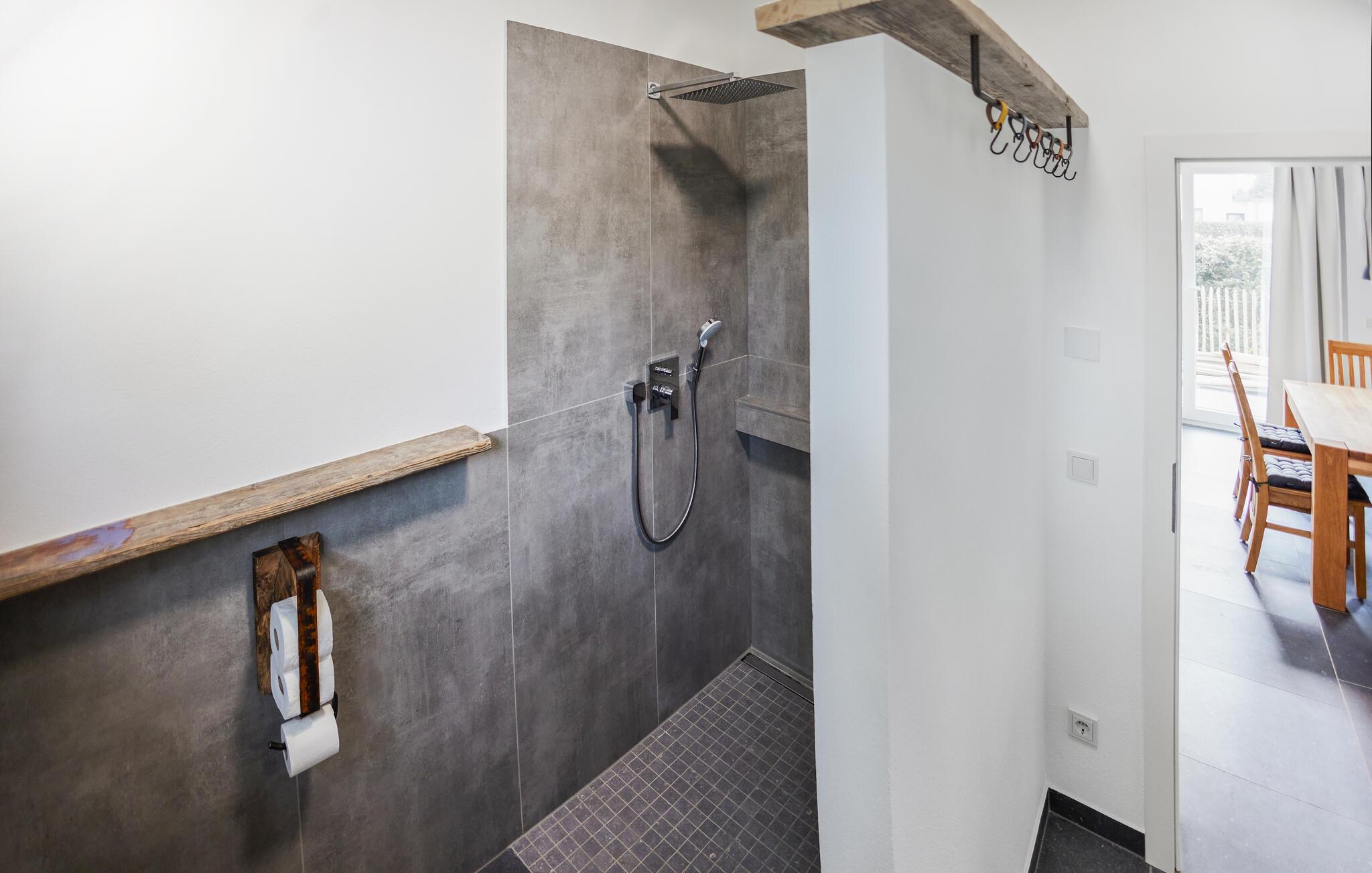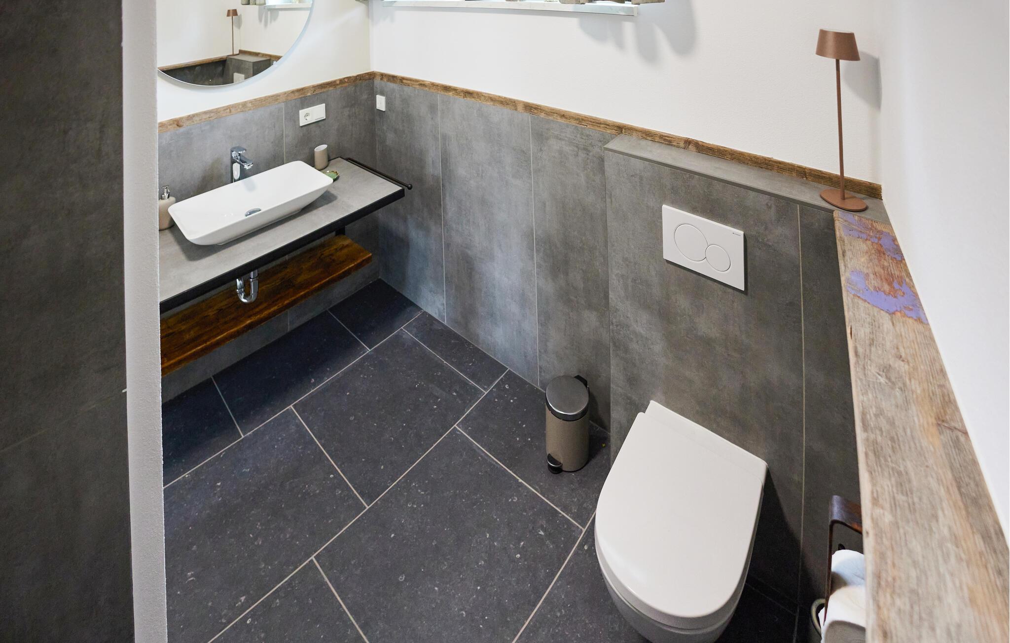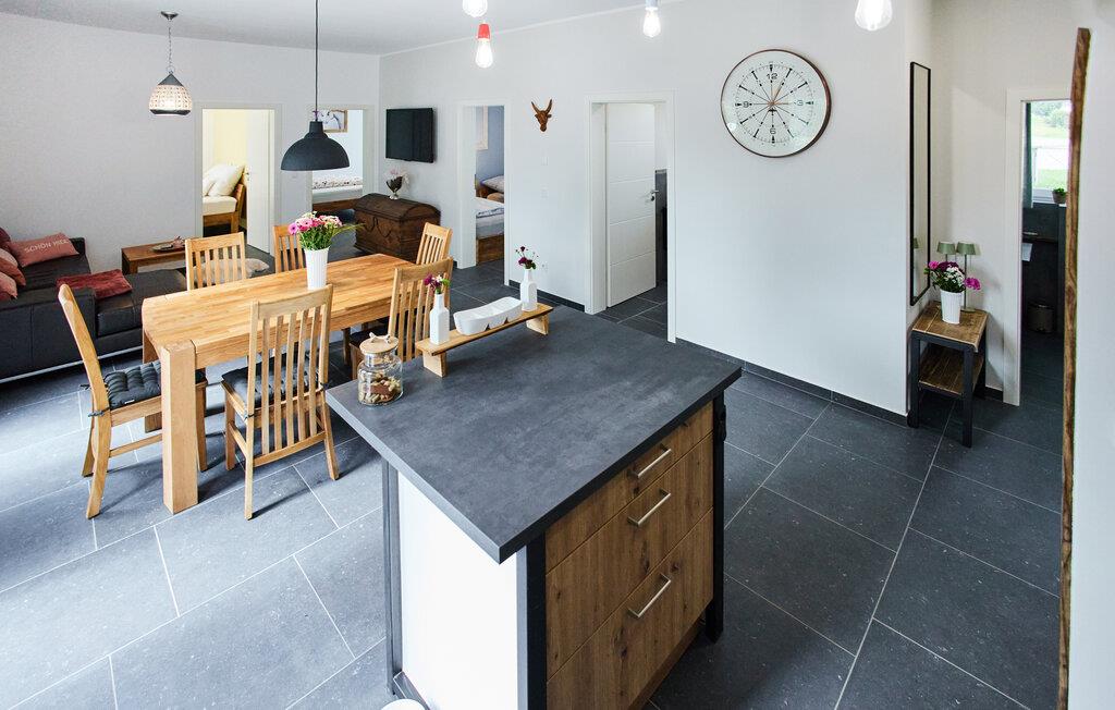 Oplev ren afslapning i denne moderne og stilfulde ferielejlighed. Den smarte kombination af mørke fliser og kvalitetsløsninger i træ skaber en harmonisk atmosfære, der lægger op til at nyde livet og have det rart. De lyse rum på første sal giver jer masser af muligheder for at slappe af. Nyd den åbne terrasse med en vidunderlig udsigt over landskabet. Adgangen til åen og et bålfad i haven lægger op til en masse gode oplevelser udendørs.