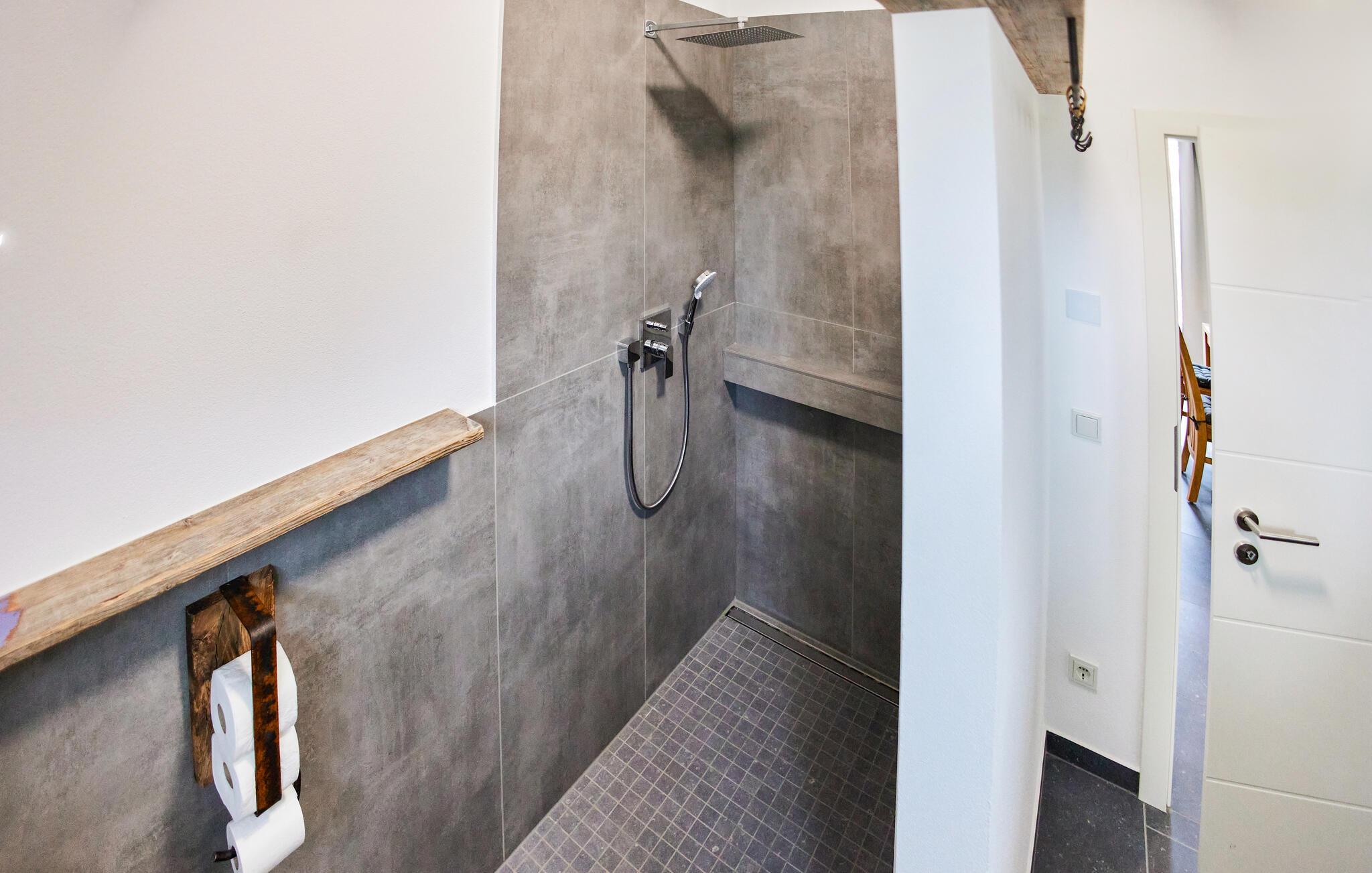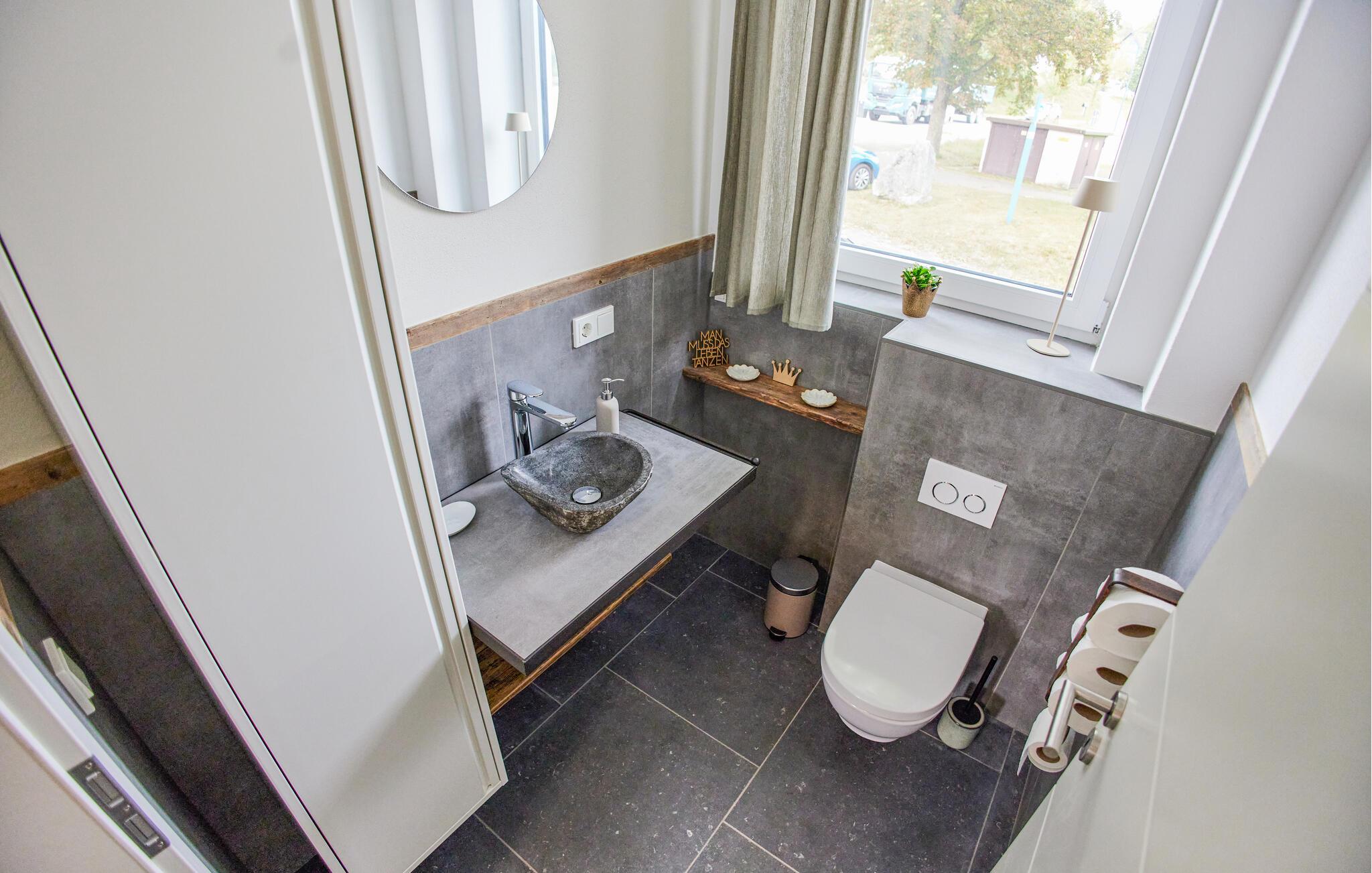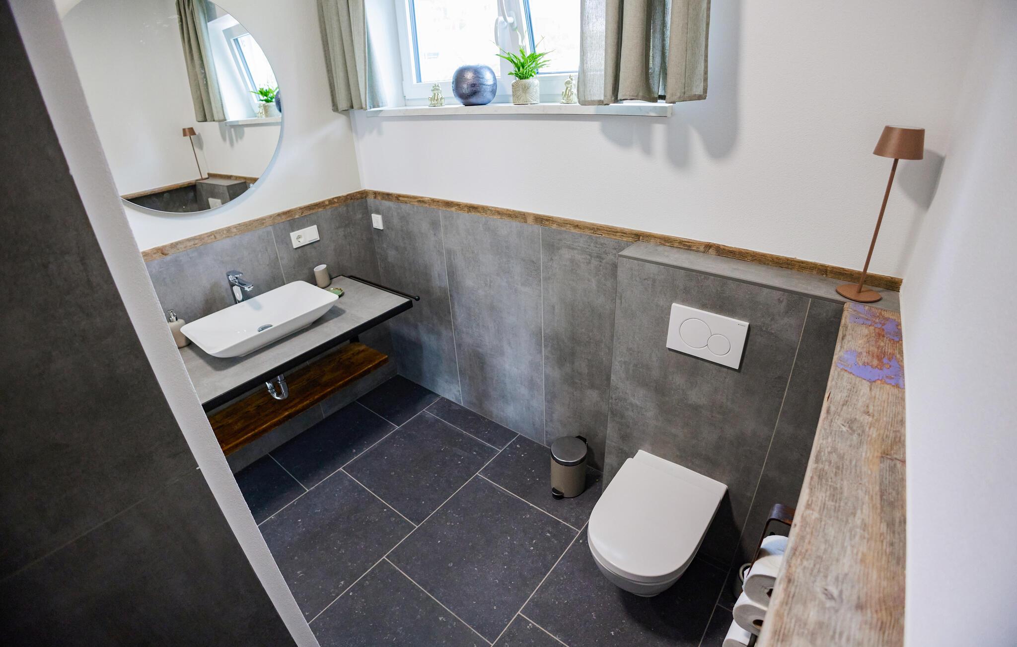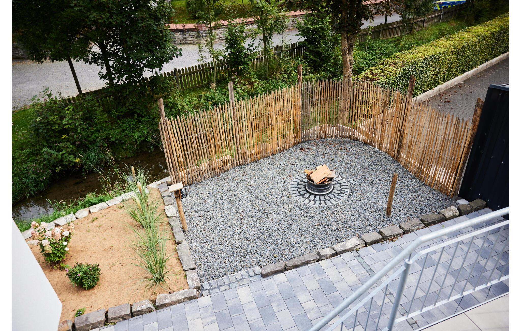 Oplev ren afslapning i denne moderne og stilfulde ferielejlighed. Den smarte kombination af mørke fliser og kvalitetsløsninger i træ skaber en harmonisk atmosfære, der lægger op til at nyde livet og have det rart. De lyse rum på første sal giver jer masser af muligheder for at slappe af. Nyd den åbne terrasse med en vidunderlig udsigt over landskabet. Adgangen til åen og et bålfad i haven lægger op til en masse gode oplevelser udendørs.