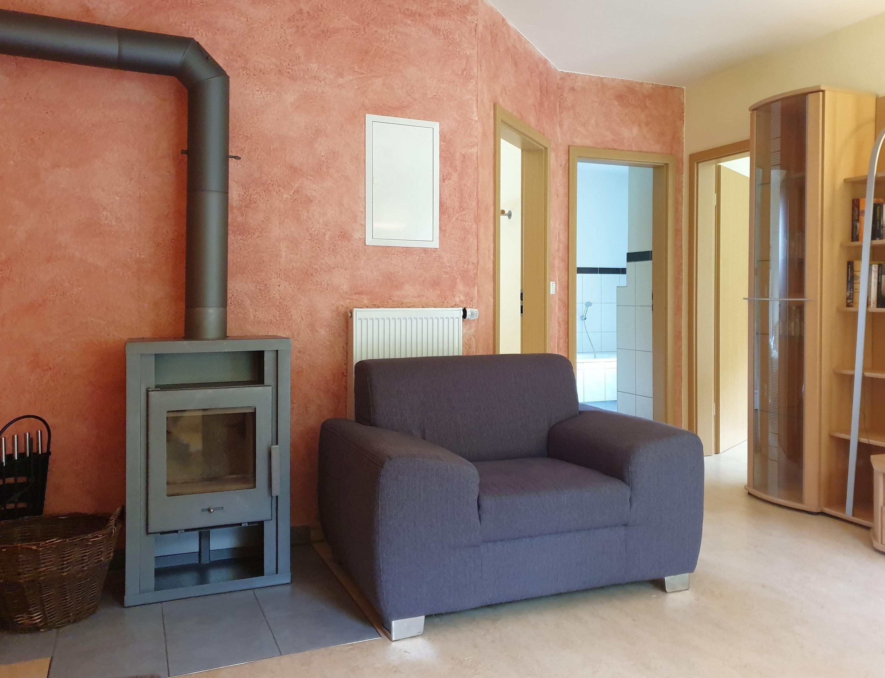 - Terrasse mit Grill & Kaminofen im Wohnzimmer