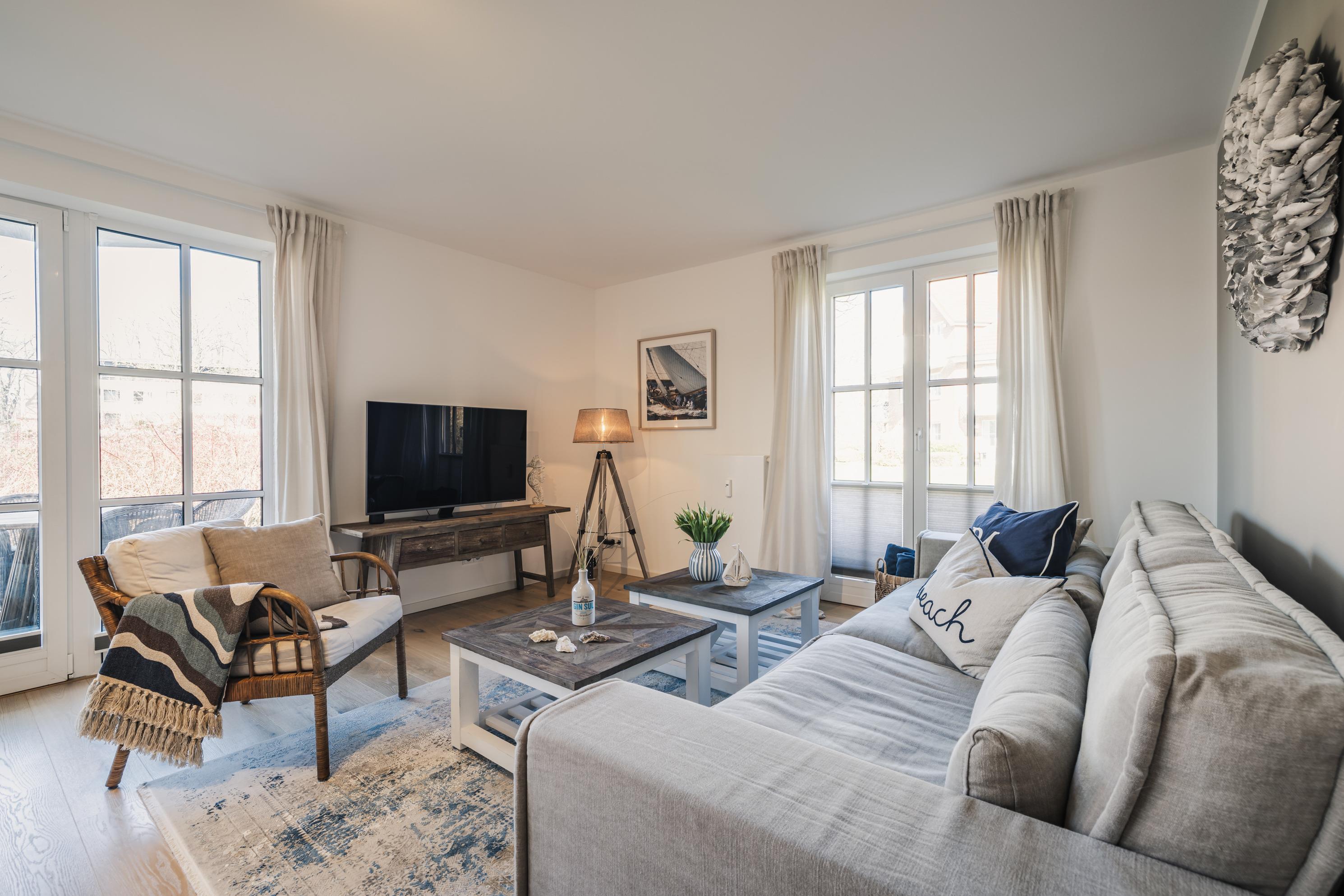 Die Ferienwohnung wurde im Jahr 2024 komplett renoviert und bietet zwei Schlafzimmer mit jeweils einem Flatscreen TV, Einbauschränken und einem Schreibtisch für Homeoffice-Arbeiten. Zur Aufbewahrung von Fahrrädern gibt es einen separaten Raum in der Tiefgarage und ein reservierter PKW-Stellplatz mit Duplex-Funktion ist ebenfalls vorhanden. Die Lage der Ferienwohnung ist ideal für erholsame Spaziergänge entlang der Steilküste und Radtouren durch die zauberhafte Landschaft. Auch die Orte Travemünde und Timmendorfer Strand sind nur wenige Kilometer entfernt und bieten weitere Möglichkeiten für Ausflüge.