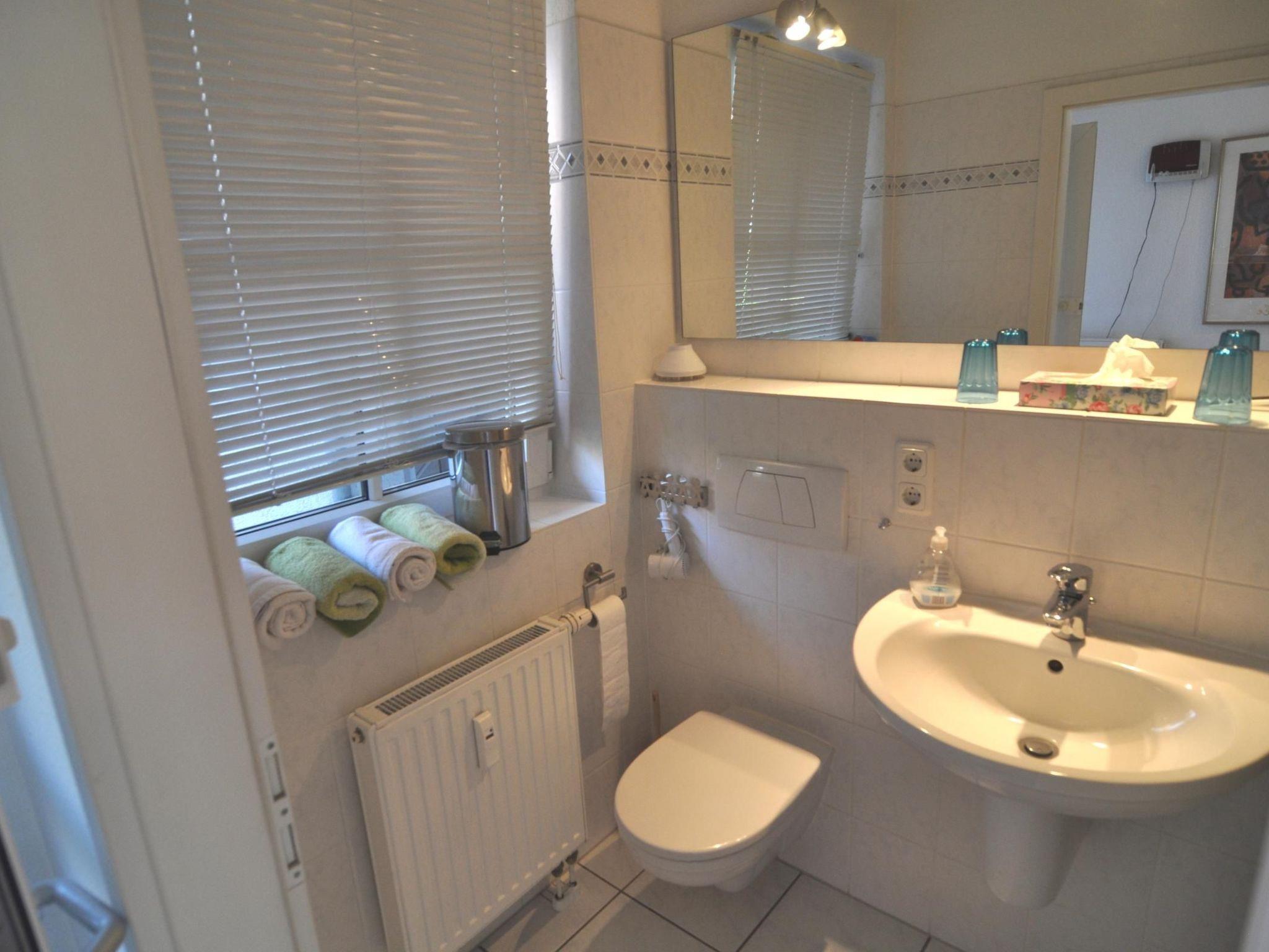 Spacious living room with integrated kitchen, dining area and direct access to the terrace. Bedroom with double bed with single mattresses measuring 100 x 200 cm and bedside tables, as well as a wardrobe. Outside window with blackout blind. Please bring your own bed linen. The kitchen is integrated into the living room and is equipped with everything you are used to at home, including - fridge with freezer compartment - cooker with ceramic hob and oven - microwave - kettle - coffee machine - dishwasher Bathroom with shower, washbasin, WC and an outside window.