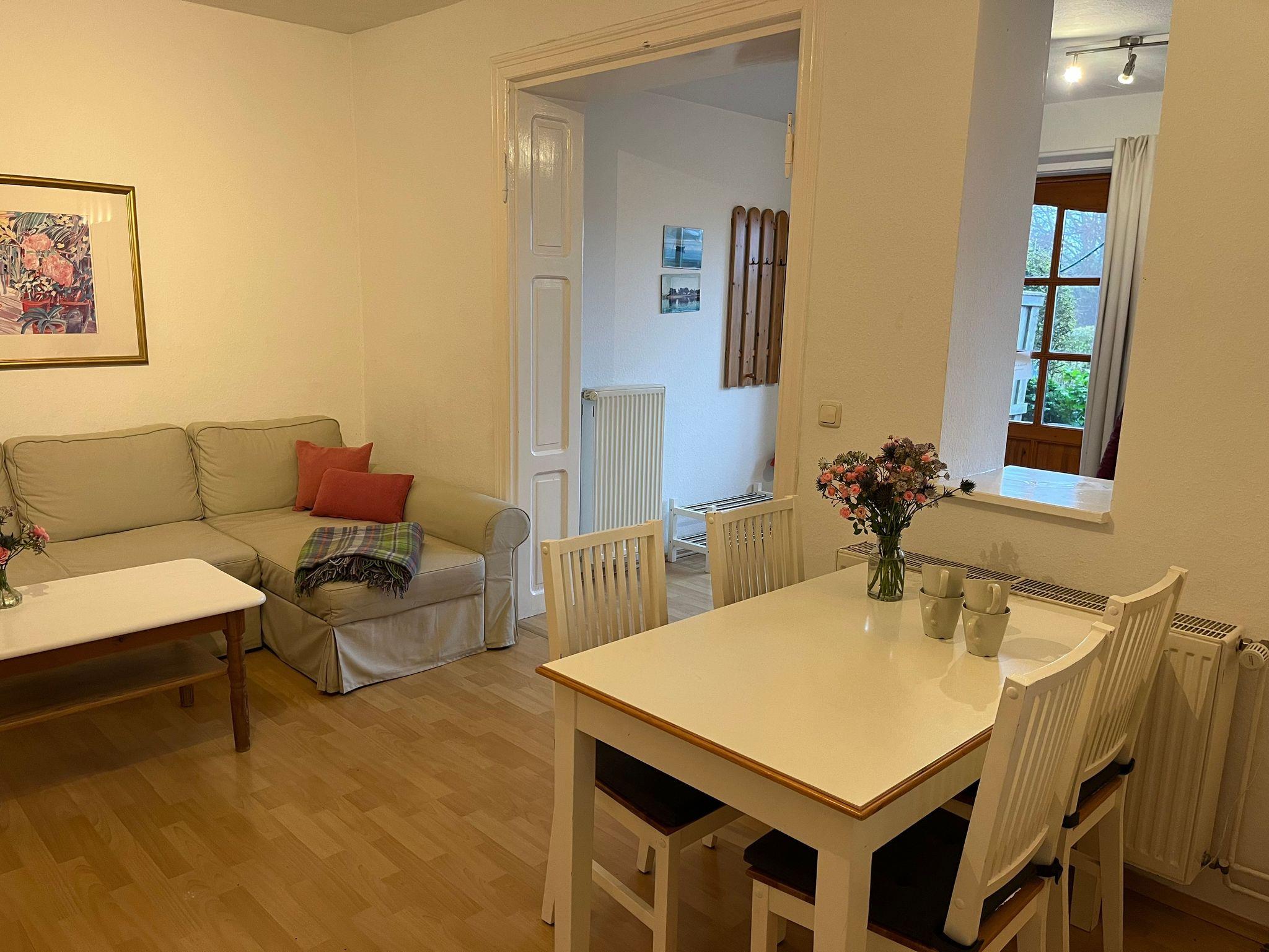 Appartement 2 im Erdgeschoss für 2- 5 Personen mit Sitzecke vorm Haus