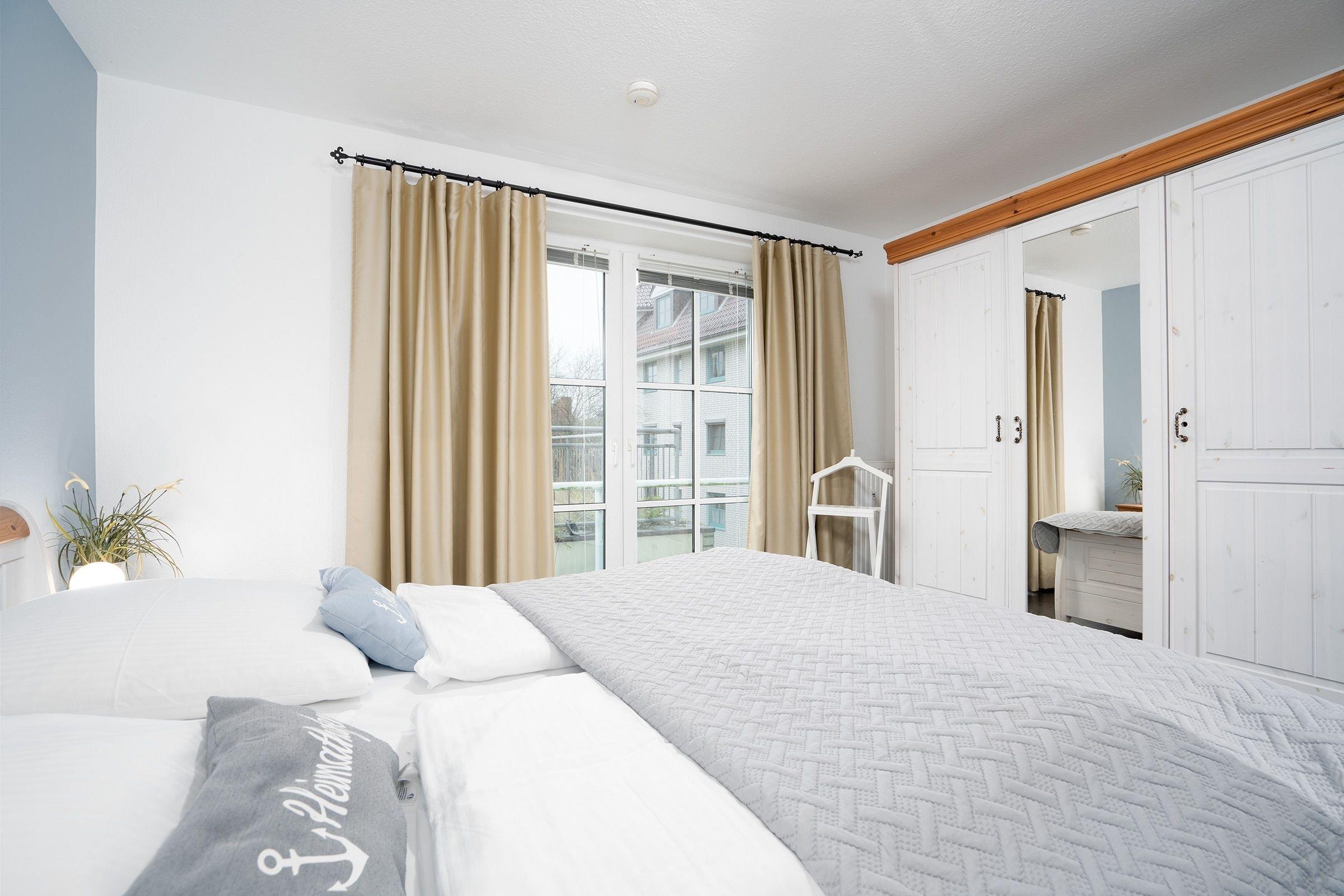 Schlafzimmer: 1 Doppelbett (2x 90x200 cm), Kleiderschrank, Verdunkelung (Jalousien und Verdunkelungsvorhänge)