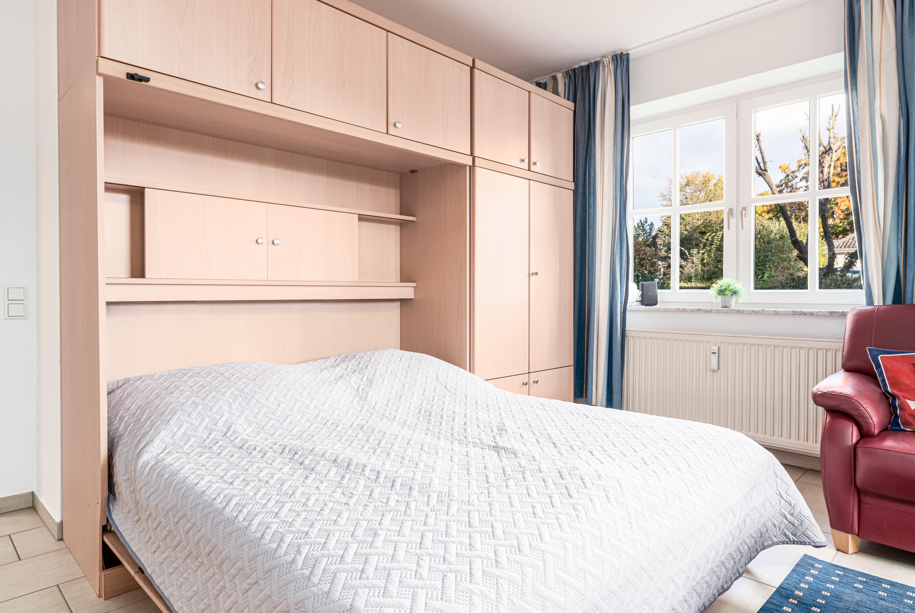 Im separaten Schlafzimmer können sich bis zu zwei weitere Personen in den zwei Einzelbetten (90 cm x 200 cm) vom erlebnisreichen Urlaubstag erholen.