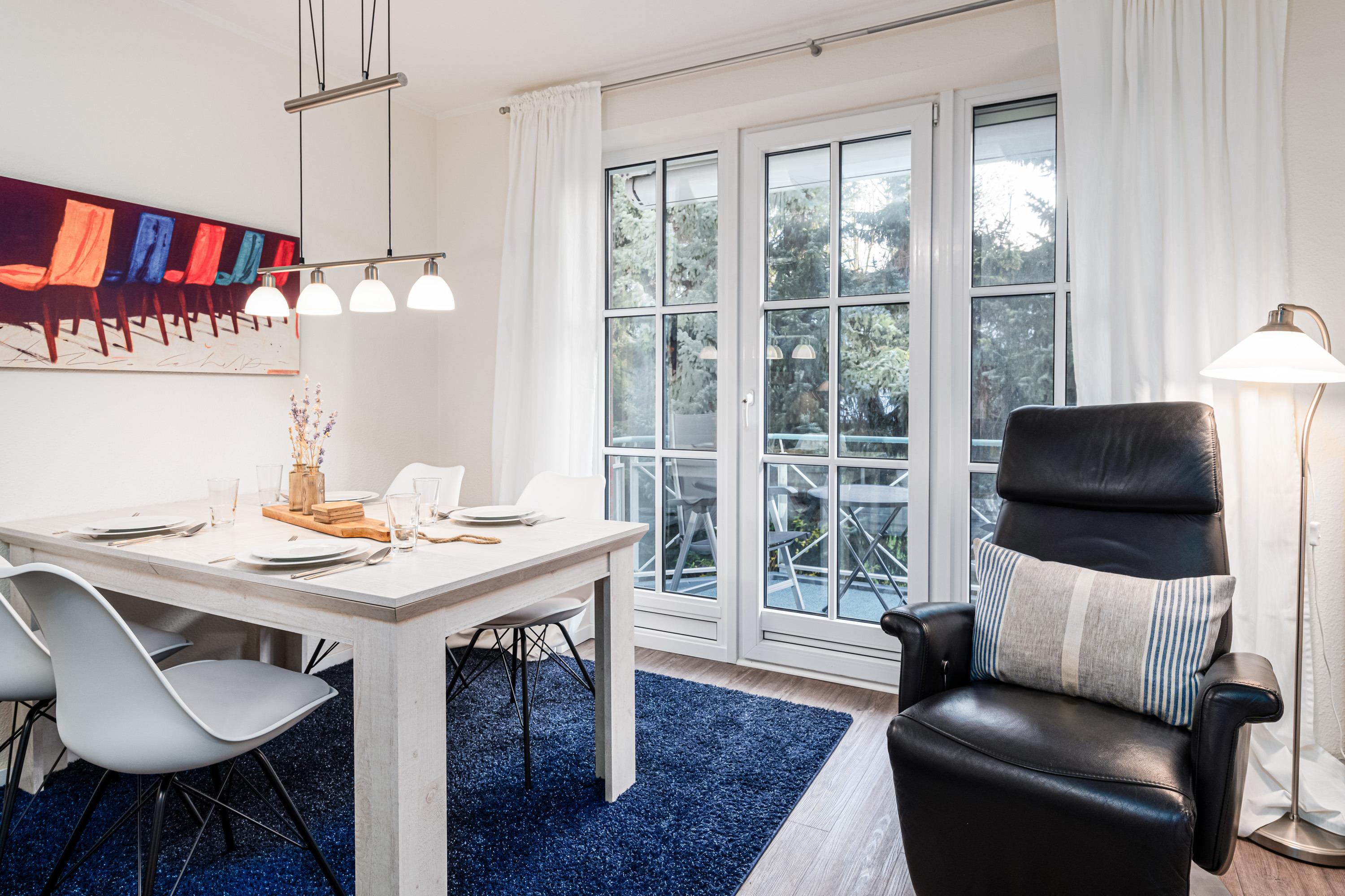 Bis zu 3 Personen wohnen in der 55m² großen und in der 1. Etage befindlichen 2-Zimmer Niendorf Ferienwohnung "Perla" in der Ostseeallee 18.