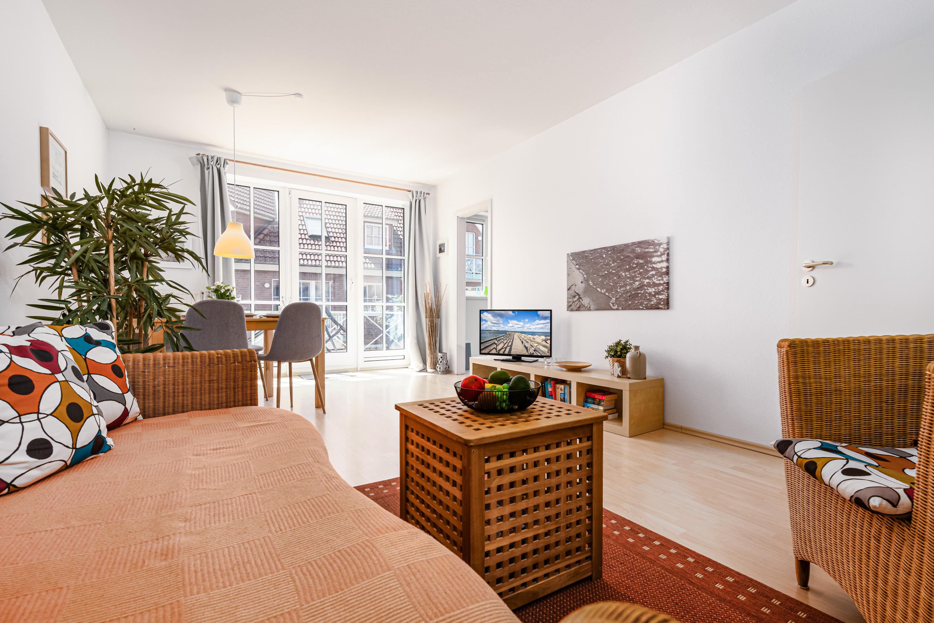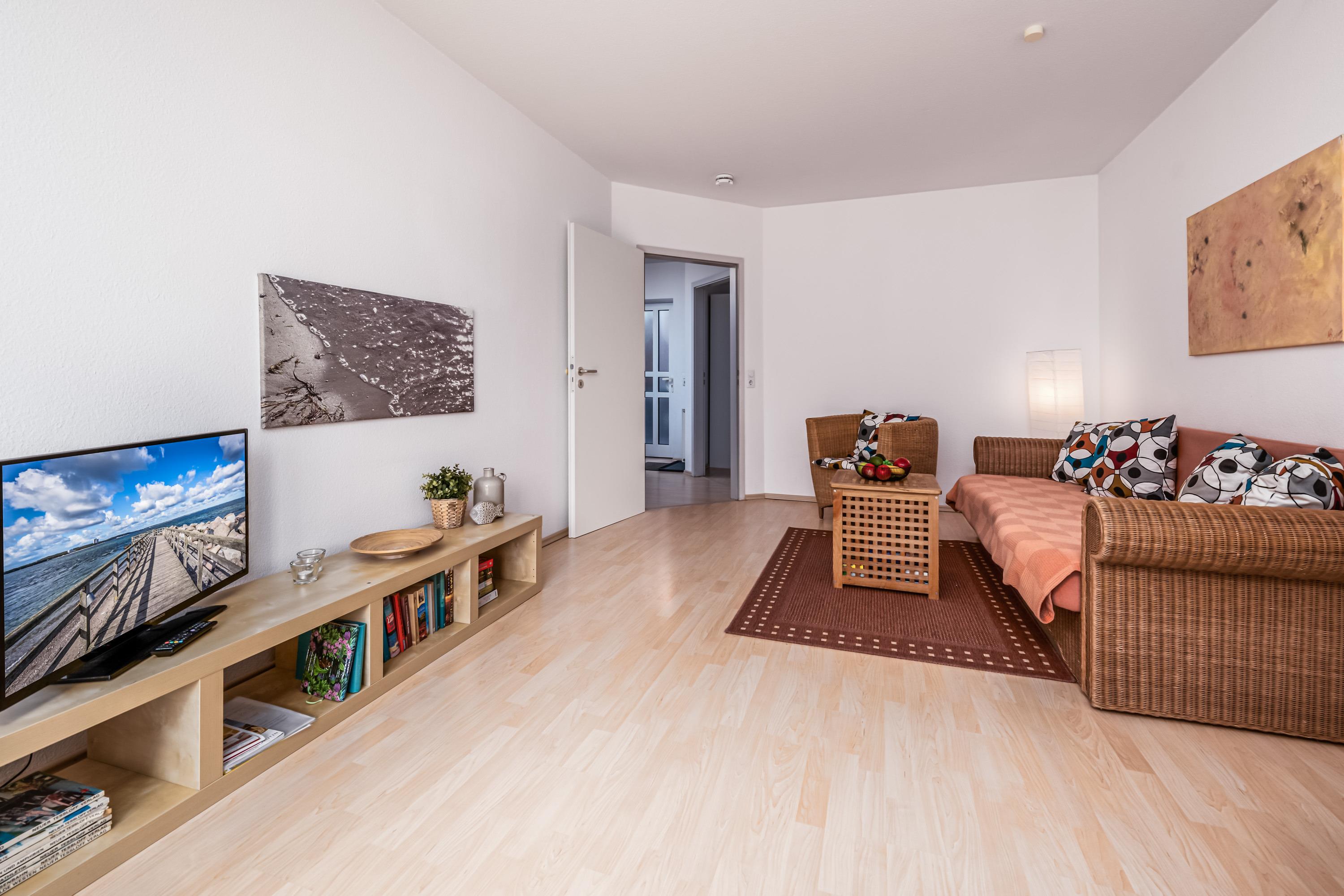Das lichtdurchflutete und modern eingerichtete Feriendomizil "Strandmöwe" ist ca. 52m² groß und bietet für bis zu 4 Personen einen idealen Ausgangspunkt für Ihren Ostseeurlaub. Vom Flur aus gehen Sie in den Wohnraum, der über eine bequeme Sitzecke mit Kabel-TV sowie einen schönen Essbereich verfügt. Von hier aus gelangen Sie auf den Balkon, wo Sie Ihren erholsamen Urlaubstag entspannt ausklingen lassen und die Meeresluft genießen können.
