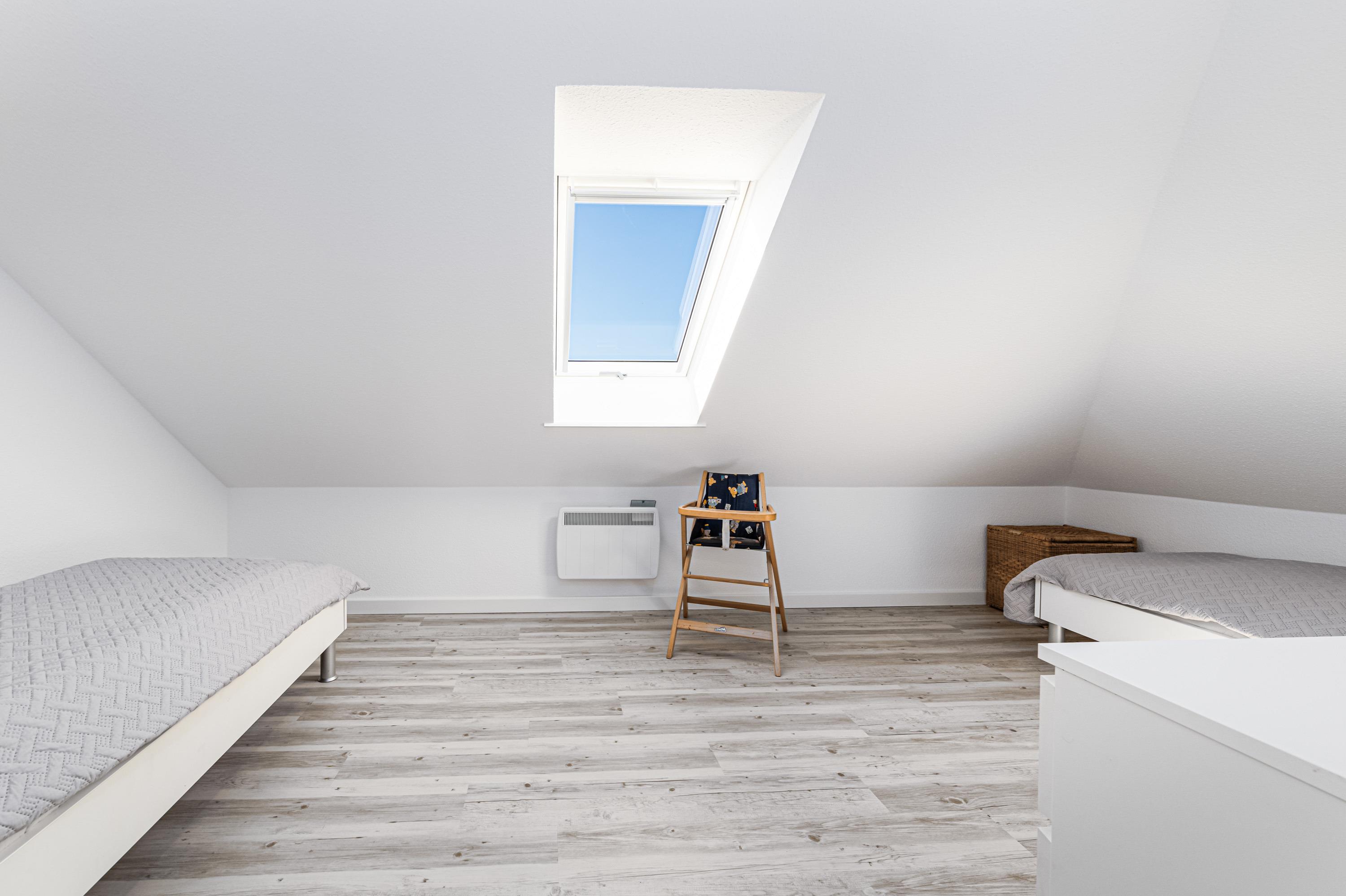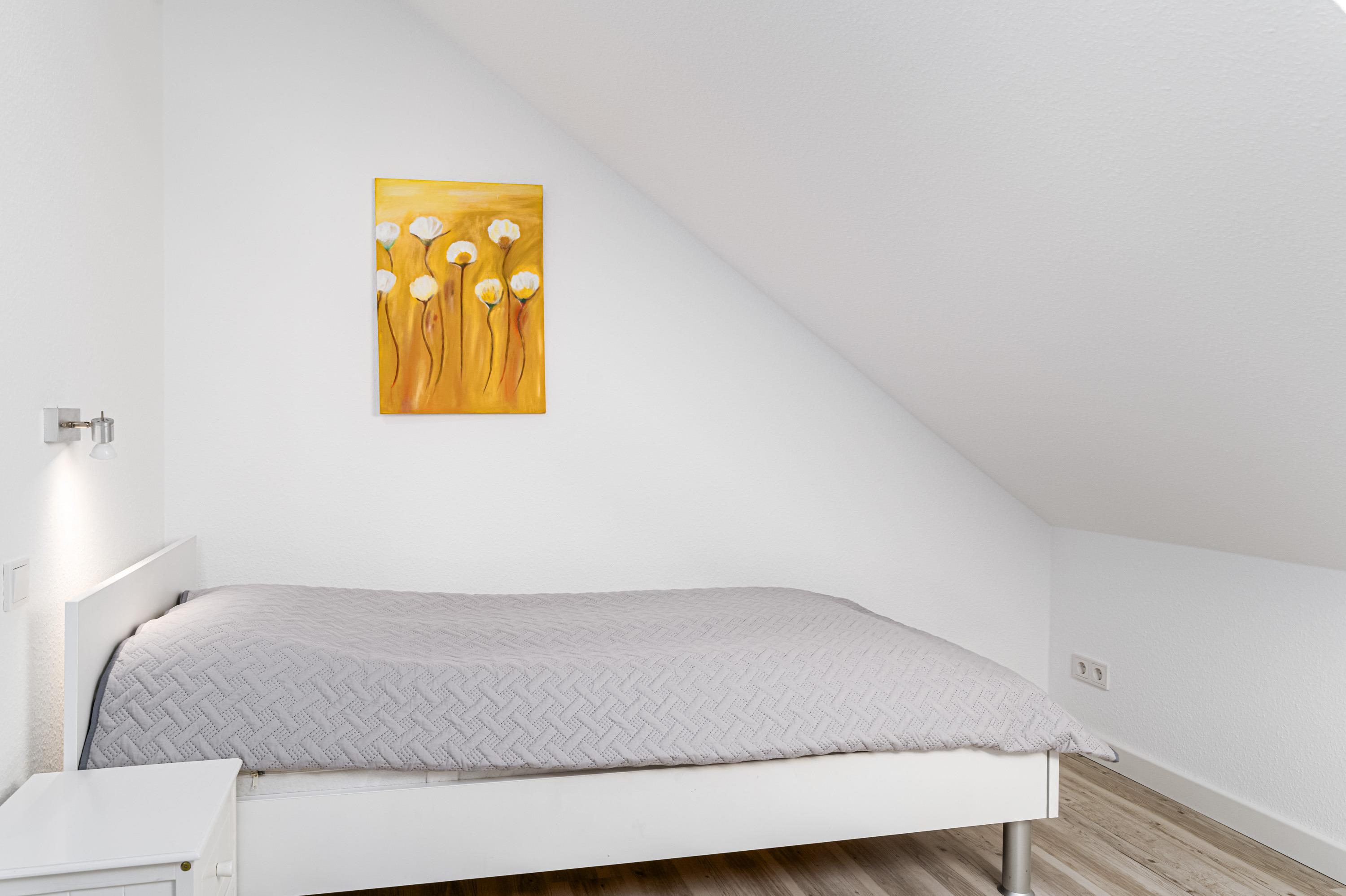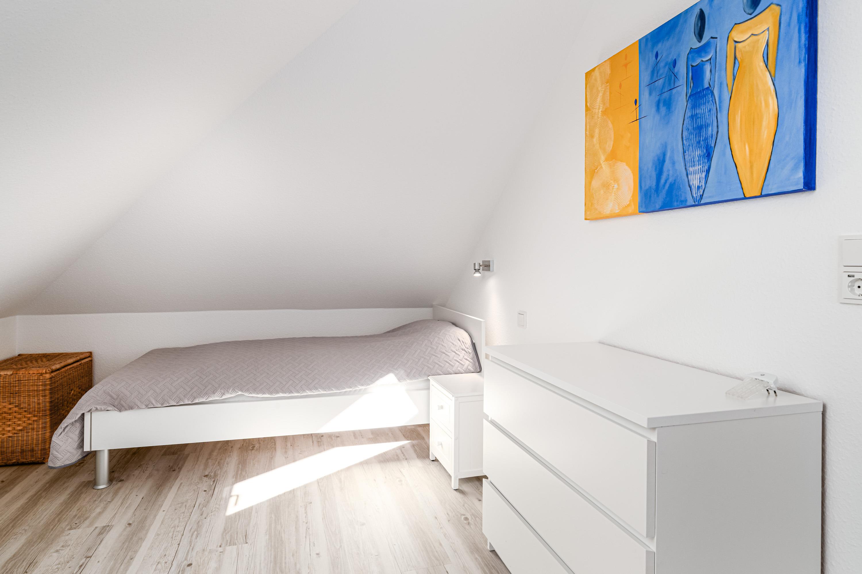 In dem ersten Schlafzimmer erholen sich bis zu 2 Personen auf dem bequemen Boxspringbett (180 cm x 200 cm). Das zweite Schlafzimmer ist mit zwei Einzelbetten (je 90 cm x 200 cm) ausgestattet.