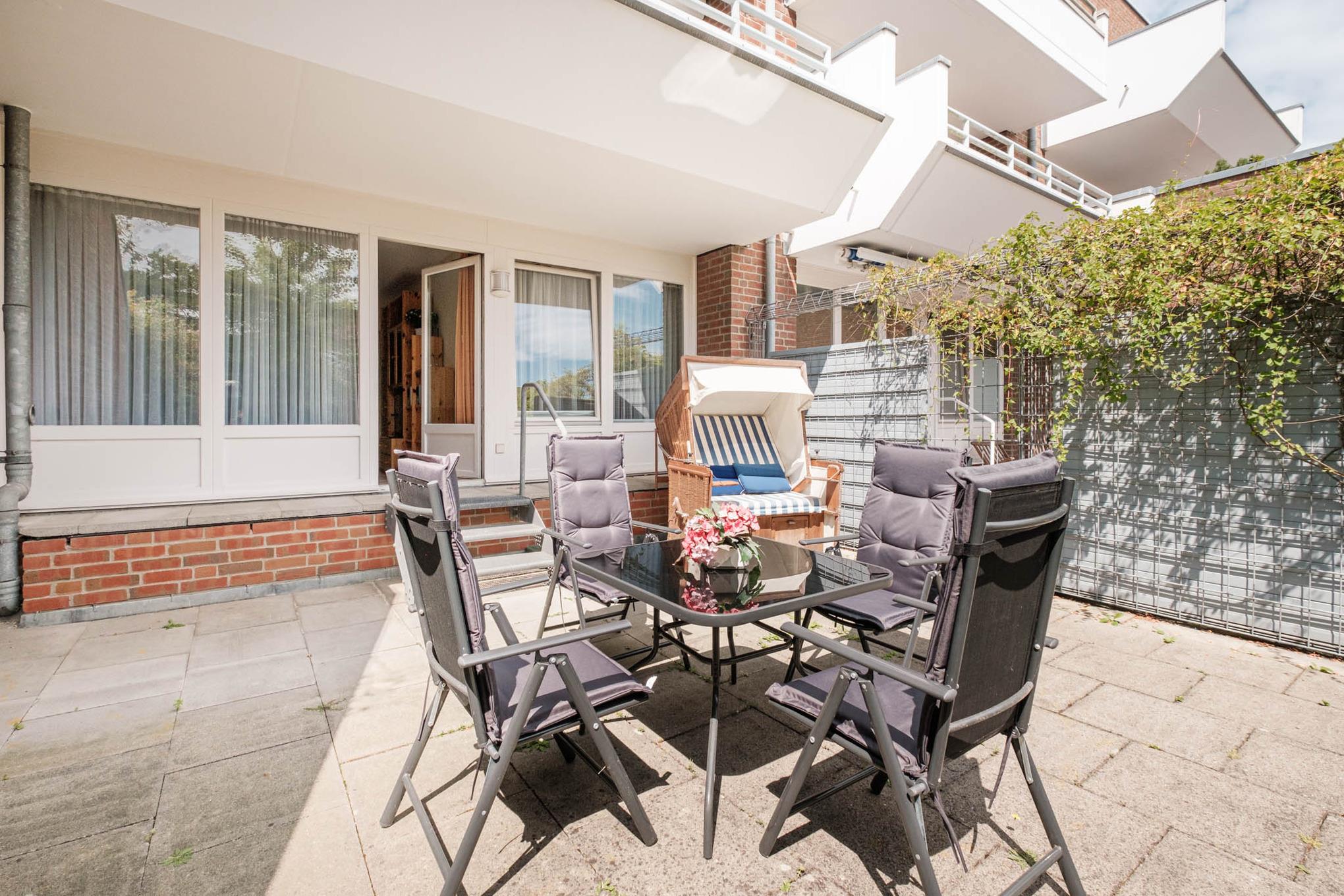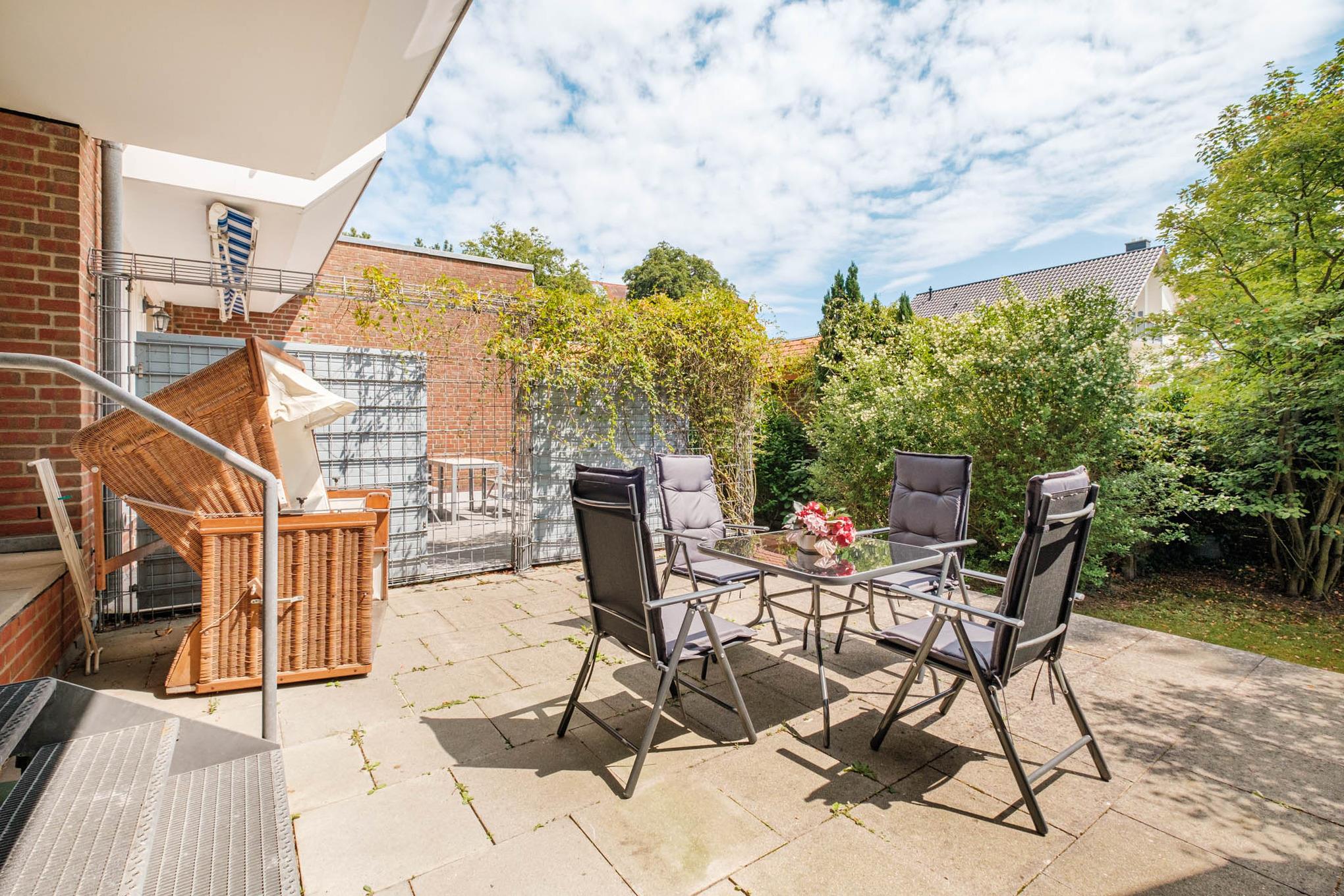 Im eigenen Strandkorb auf der nach Osten ausgerichteten großen Terrasse lassen sich entspannte Stunden genießen.
