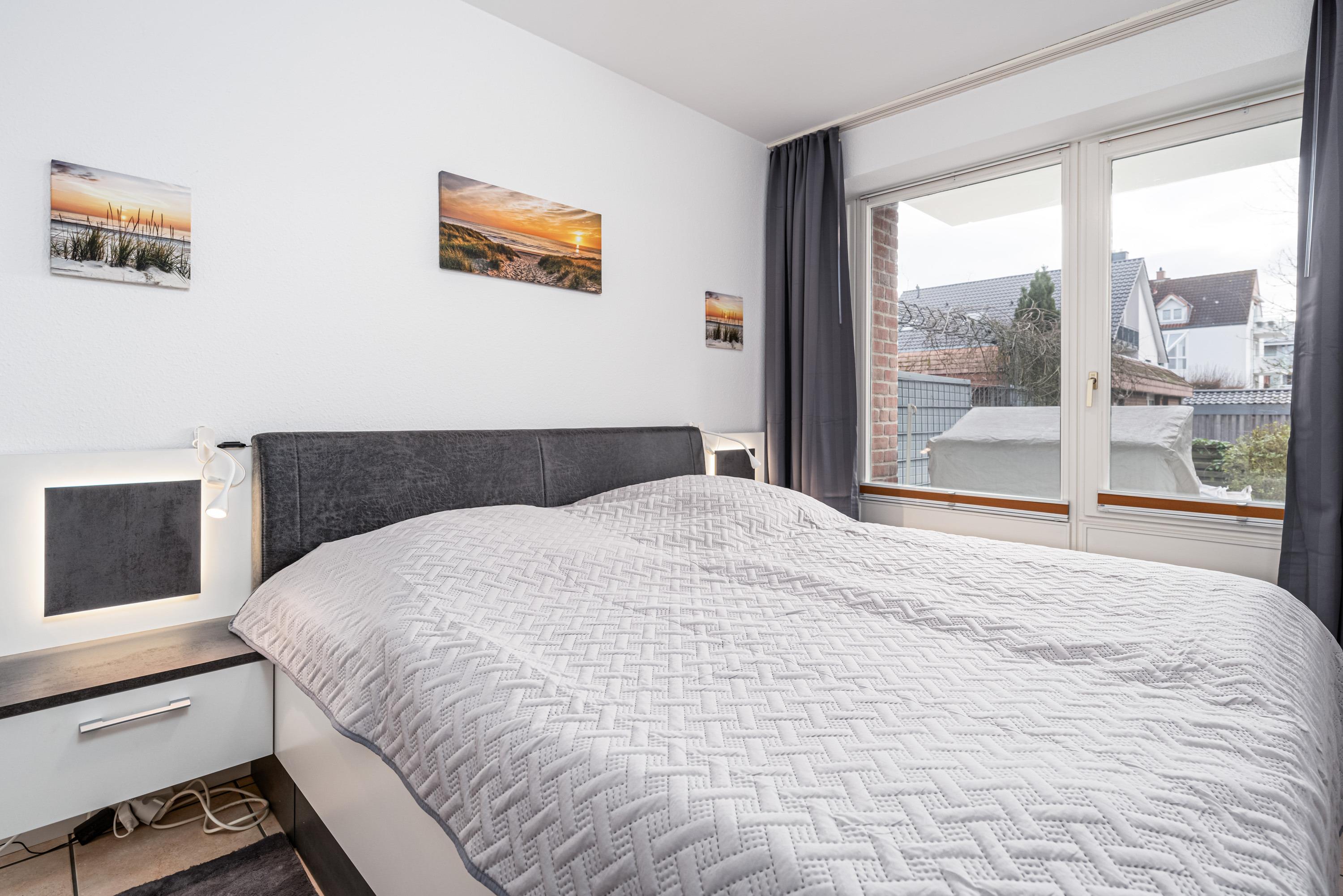 Im separaten Schlafzimmer befindet sich zusätzlich zum Doppelbett (2 x 90cm x 200cm H2 und H3 Wendematratzen) auch ein kostenfreies Kinderreisebett. Das moderne Duschbad ist mit einer Handtuchtrocknerheizung und einem Fön ausgestattet.
