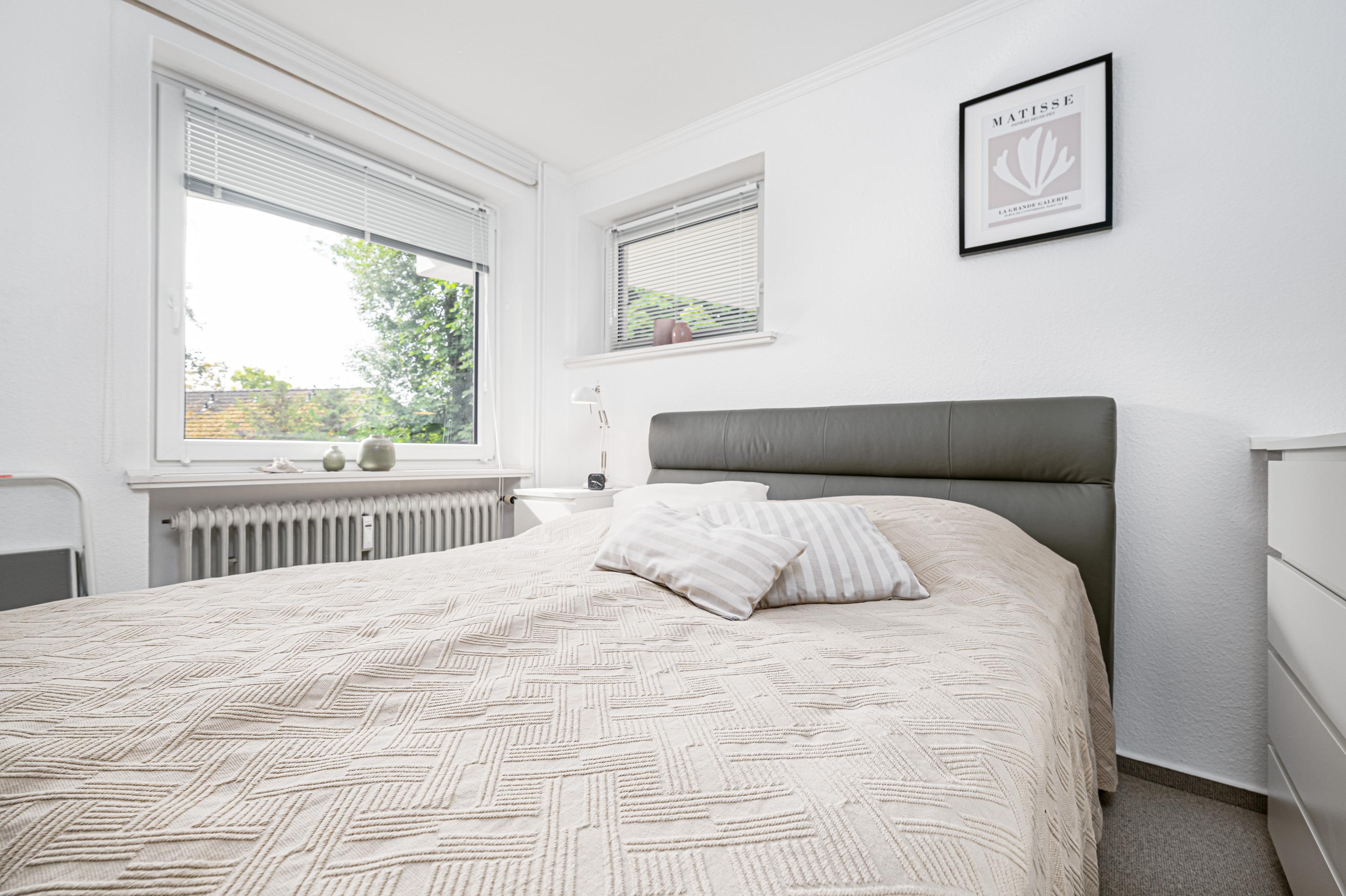 Das separate Schlafzimmer verfügt über ein gemütliches Doppelbett, sodass man sich in Ruhe von einem ausgelassenen Strandtag erholen kann.