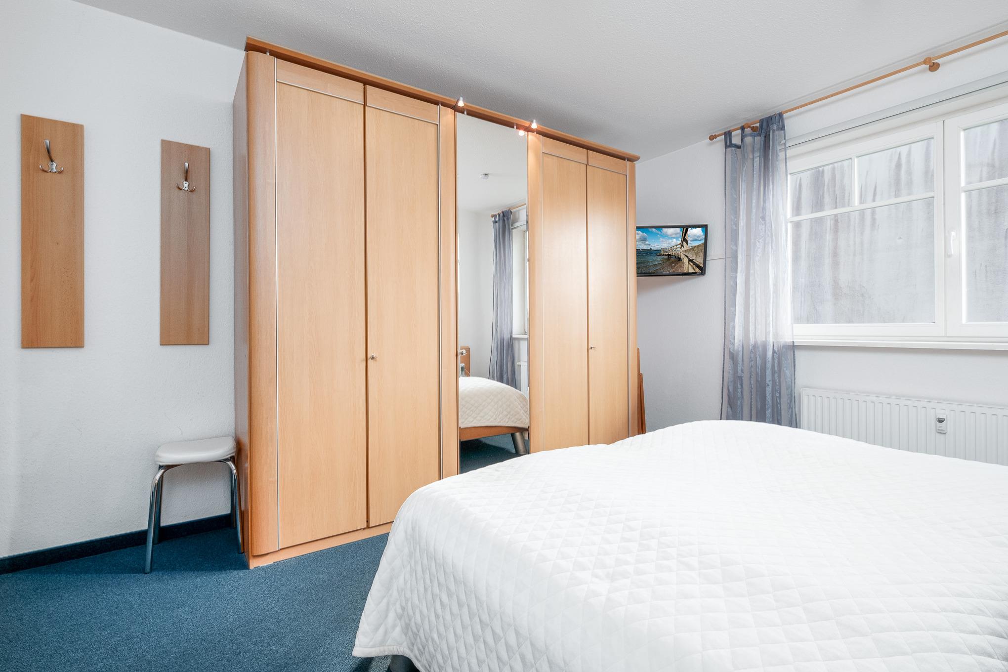 Das bequeme Schlafzimmer mit Doppelbett (2 x 90 cm x 200 cm) verfügt über einen großen Kleiderschrank mit Spiegel sowie einen weiteren Kabel-TV.