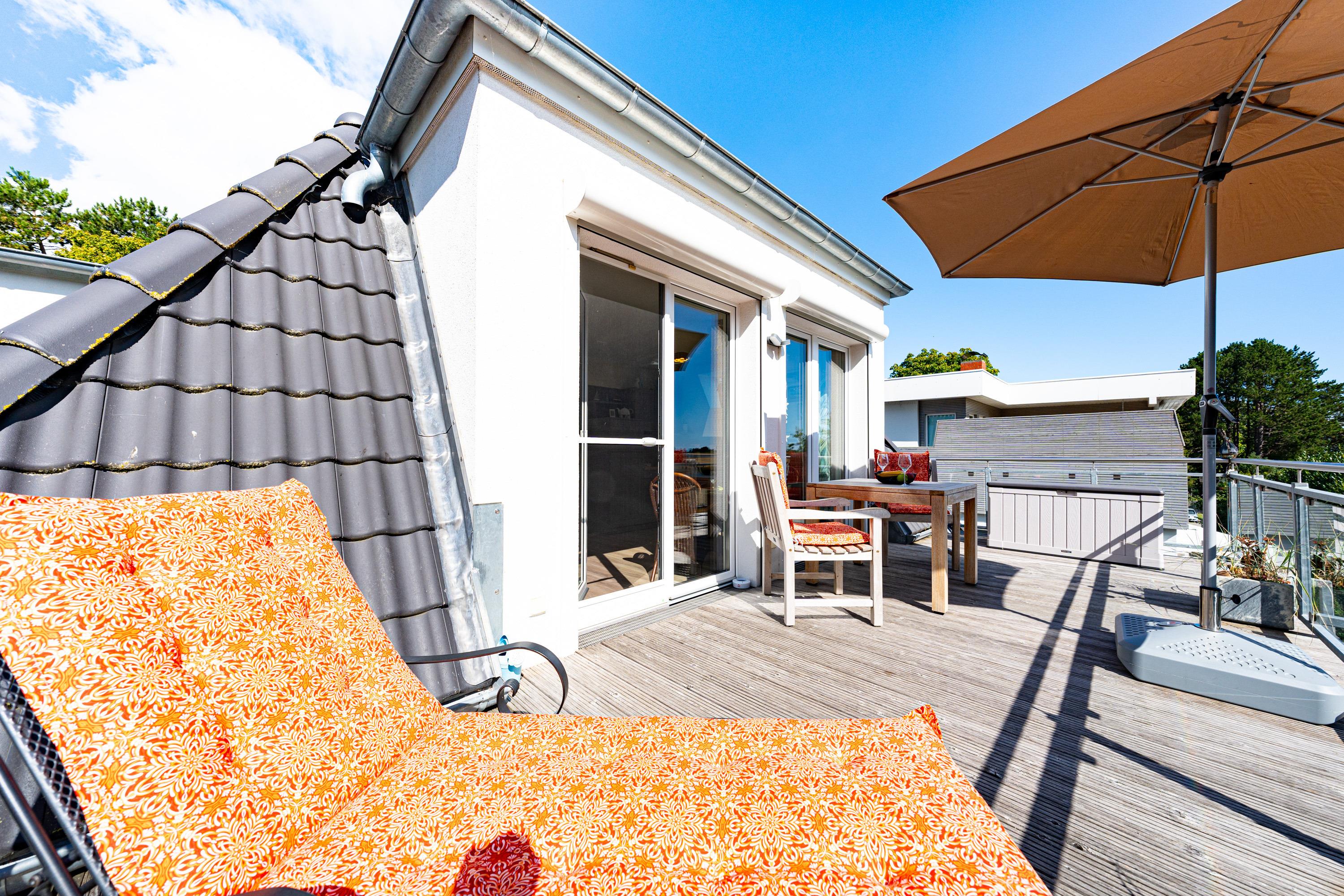 Die Besonderheit dieser modernen Niendorf Ferienwohnung ist die schöne, geräumige, 18m² große Dachterrasse zur Ostseite.