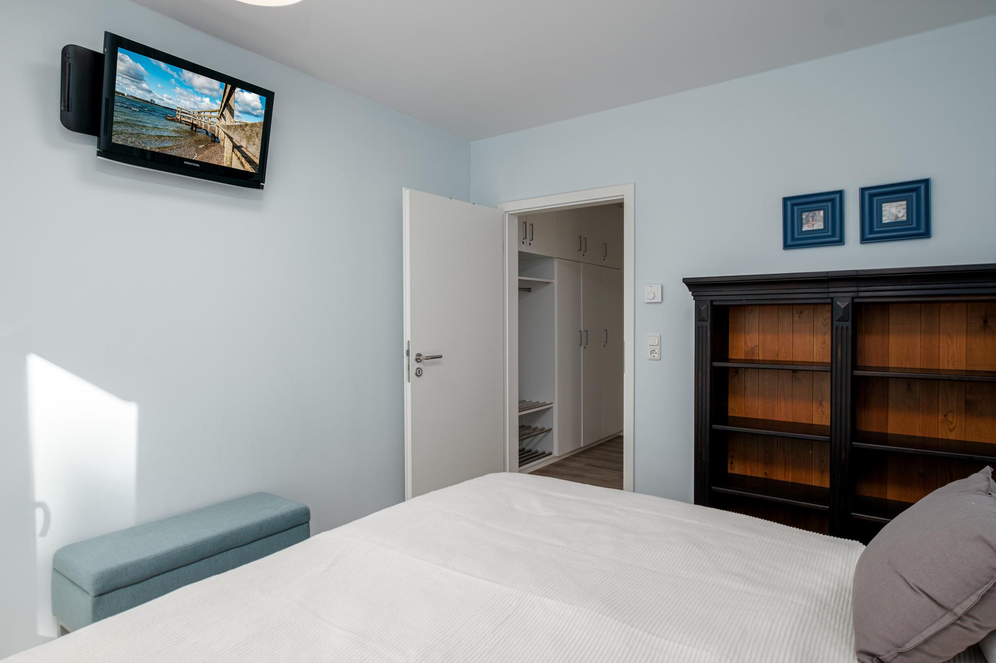Das große Schlafzimmer ist mit einem komfortablen Doppelbett (1 x 180 cm x 200 cm) und Kabel-TV ausgestattet.