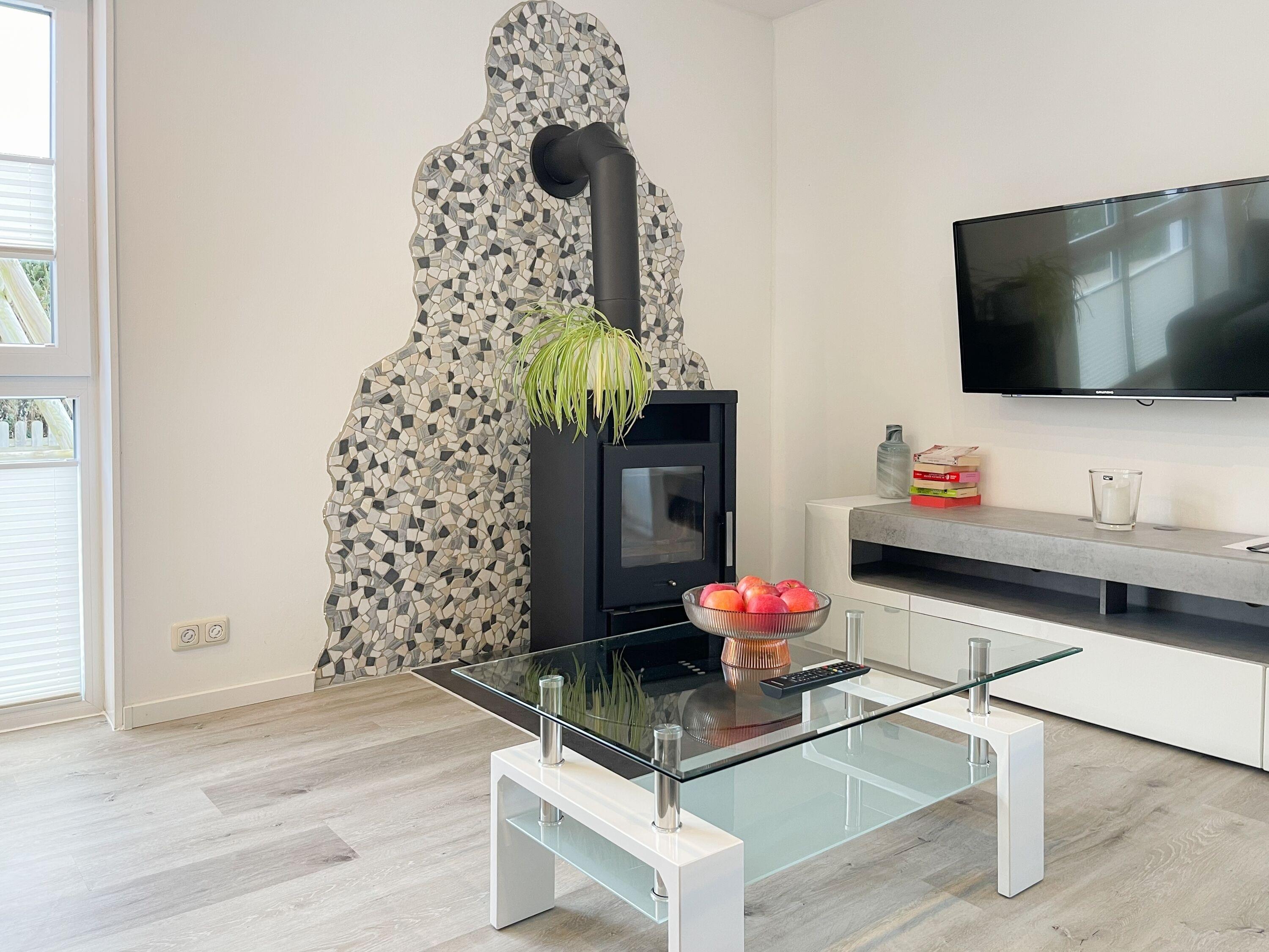 Das familienfreundliche Haus bietet auf ca. 90 m² Platz für bis zu 4 Personen und schafft mit seinem durchdachten Grundriss eine behagliche Wohlfühlatmosphäre. Im großzügigen Wohnbereich sorgen der Kamin, Sat-TV, Radio mit USB und kostenfreies WLAN für gemütliche Stunden. Direkt angrenzend lädt der offene Essbereich mit Platz für vier Personen zum gemeinsamen Schlemmen ein. Die moderne Einbauküche ist bestens ausgestattet – mit Spülmaschine, Backofen und Mikrowelle bleiben kaum Wünsche offen.