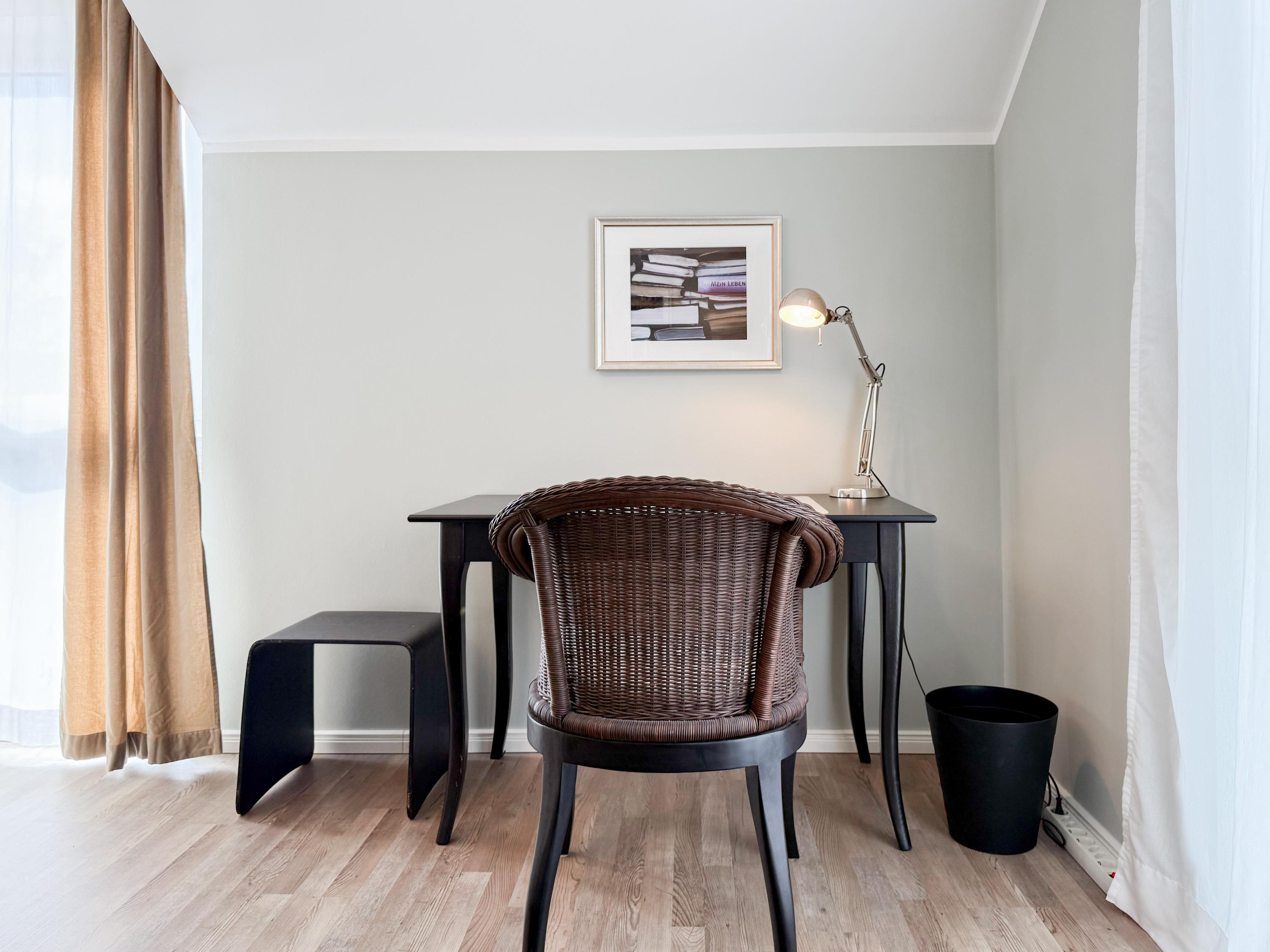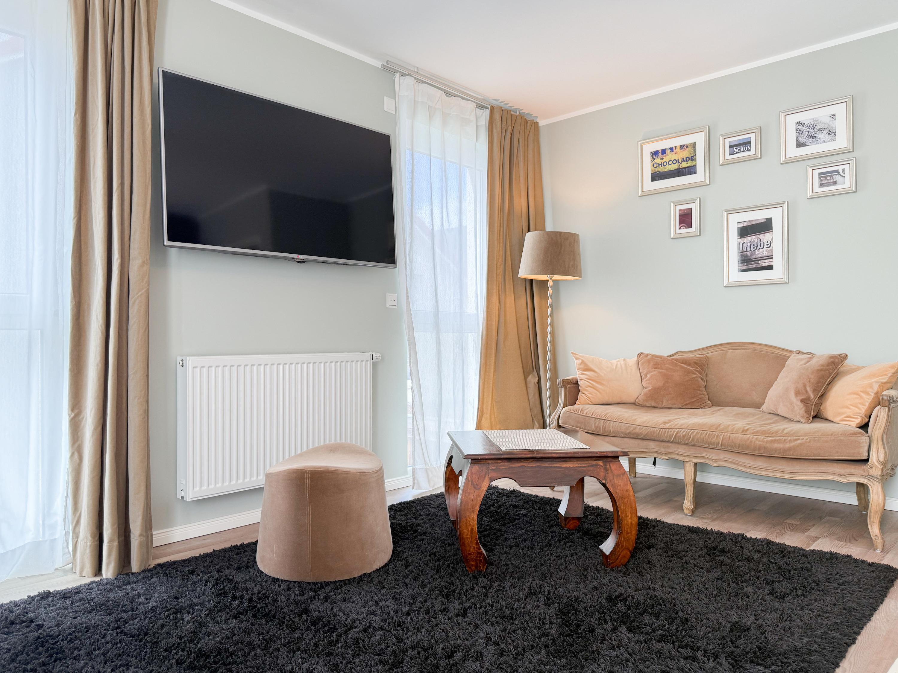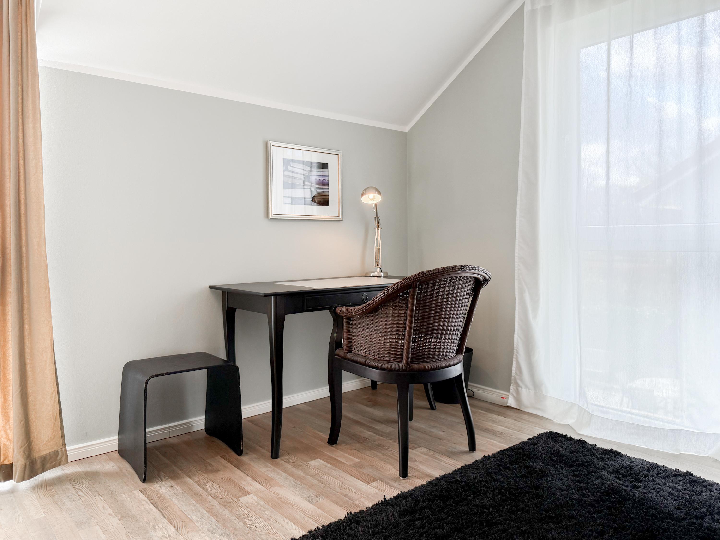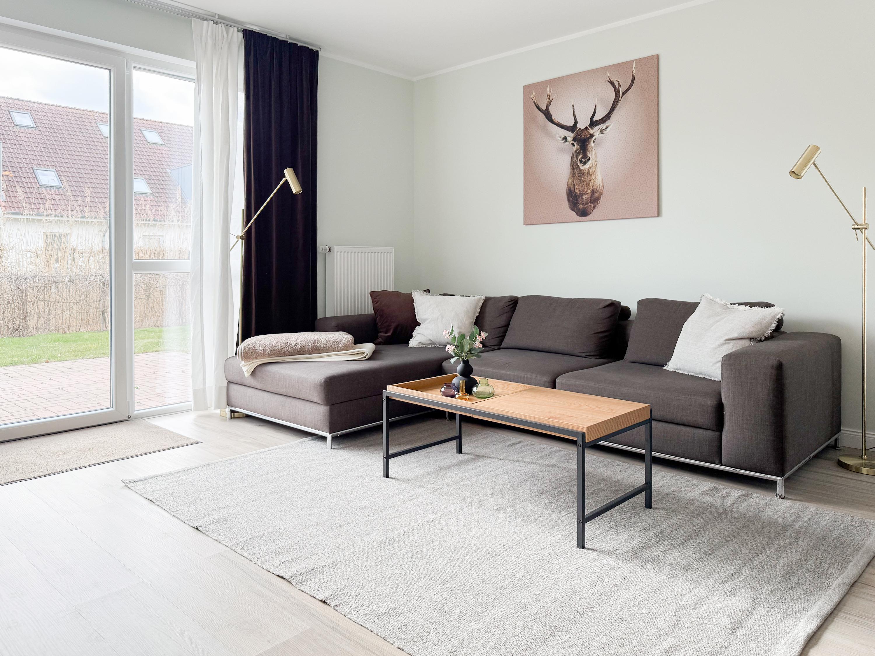 Es erwartet Sie ein tolles Doppelhaus mit 3 separaten Schlafzimmern und 2 Duschbädern. Sonnige Räumlichkeiten auf über 100 qm Wohnfläche und die geschmackvolle Einrichtung mit liebevollen Details schaffen ein behagliches Ambiente für 6 Personen. Im Erdgeschoss erwartet Sie ein großzügiger Wohnbereich, der mit einem gemütlichen Ecksofa und TV eingerichtet ist. Die vorgelagerte Sonnenterrasse in Südausrichtung garantiert erholsame Urlaubszeit. Die großzügige Einbauküche ist bestens ausgestattet und lädt zum gemeinsamen Kochen ein. Der anschließende Essbereich, mit großem Esstisch und gemütlichen Sesseln, bietet ausreichend Platz für gemeinsame Mahlzeiten und geselliges Beisammensein. Im Eingangsbereich befindet sich eine Garderobe und ein neuwertiges Tageslichtbad mit Dusche, Waschbecken und WC. Eine Waschmaschine ist im separaten Abstellraum untergebracht, ebenfalls im Erdgeschoss. Im Obergeschoss befindet sich ein weiteres Duschbad mit Doppelwaschtisch und Fenster sowie 2 separate Schlafzimmer. Schlafzimmer 1 ist äußerst großzügig und mit einem Doppelbett, einer Sitzecke mit TV und einem Schreibtisch für das Home Office eingerichtet. Schlafzimmer 2 verfügt über 2 Einzelbetten und einen gemütlichen Relaxsessel. Im Dachgeschoss befindet sich das 3. Schlafzimmer mit einem Doppelbett (180x200), Kleiderschrank und Sessel. Die Dachflächenfenster lassen sich über ein Rollo verdunkeln, alle anderen Fenster des Hauses sind mit elektrischen Außenjalousien versehen. WLAN steht selbstverständlich kostenlos zur Verfügung. Vor dem Haus befinden sich zwei Parkplätze. (1 Carport und 1 Außenstellplatz). Fahrräder können sicher und trocken im Schuppen am Haus untergestellt werden. [nbsp]