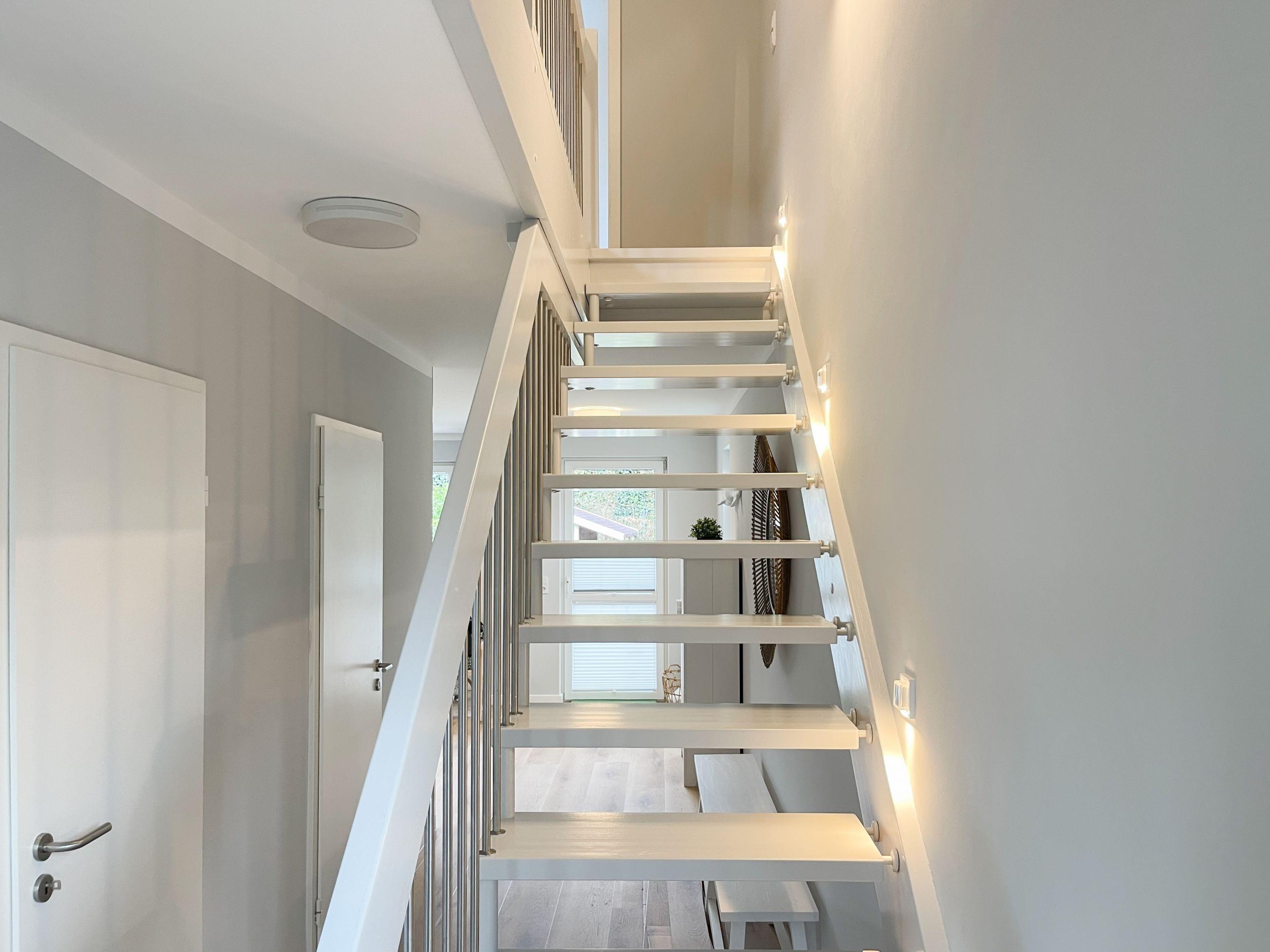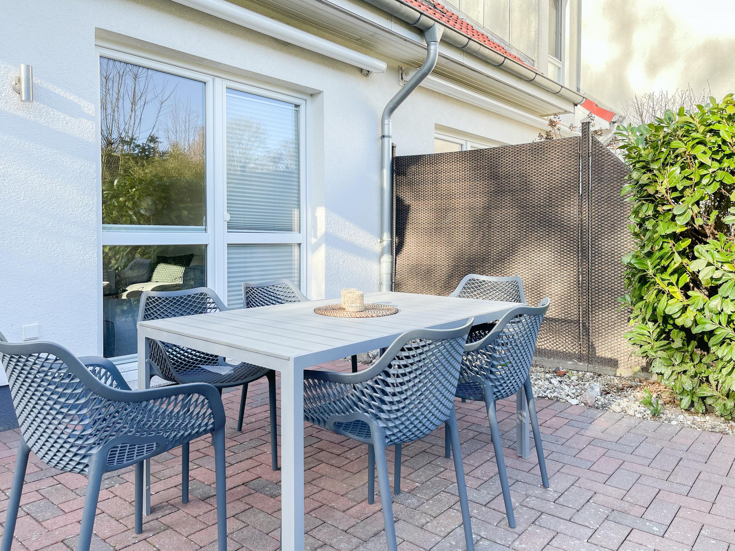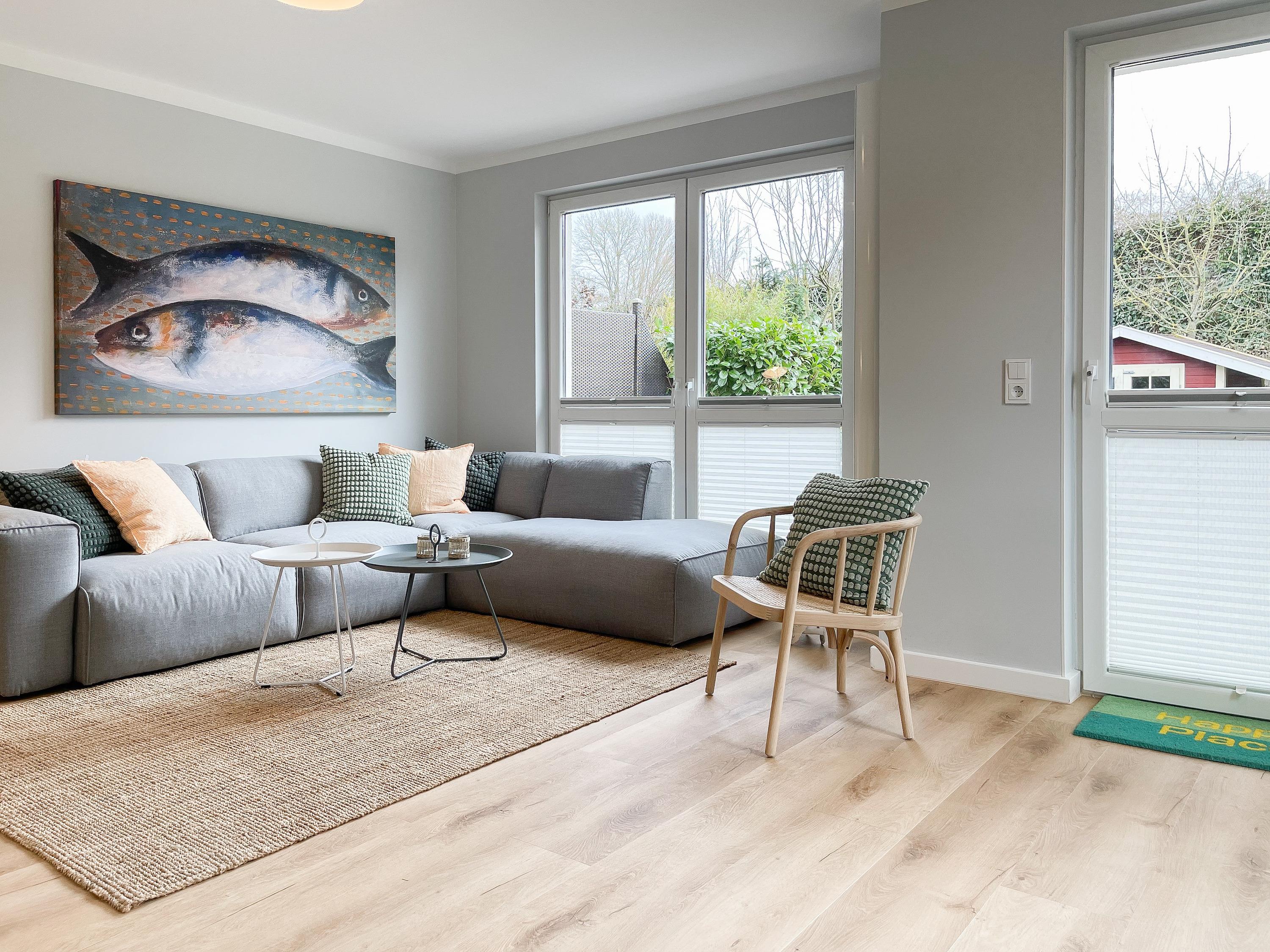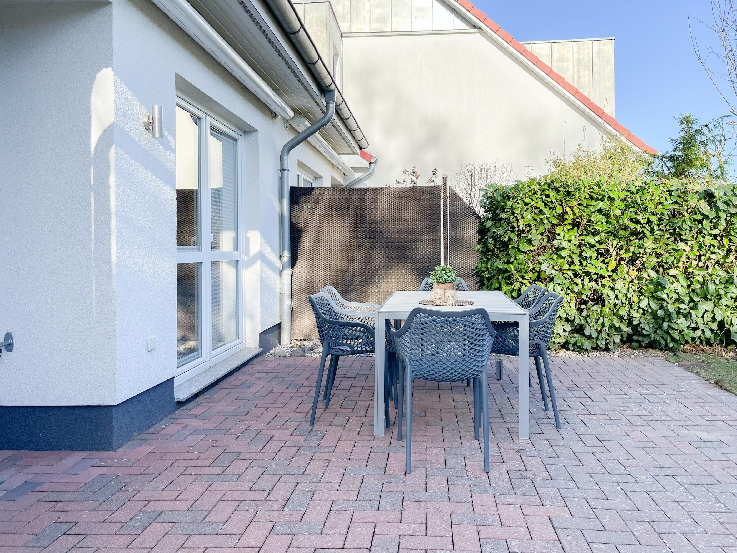 Es erwartet Sie eine wunderschönes Endreihenhaus, das bereits beim Eintreten Behaglichkeit und Wohlbefinden spüren läßt. Warme Farben, viel Licht und die hochwertige Einrichtung sorgen für einen hohen Wohnstandard in einer wunderbaren Atmosphäre. Mit 3 Schlafzimmern, einem Bad und einem separaten Gäste WC bietet das Haus auf 110 qm Wohnfläche ausreichend Raum für 4-6 Personen, um einen entspannten Urlaub in Strandnähe zu verleben. Im Erdgeschoss erwartet Sie ein großzügiger Wohnbereich, der mit einer gemütlichen XL Sofalandschaft und TV eingerichtet ist. Die vorgelagerte Sonnenterrasse in Südausrichtung ist mit Gartenmöbeln, 2 Sonnenliegen sowie einer elektrischen Markise ausgestattet und von einem großzügigen privaten Garten umgeben. Im hinteren Teil des Gartens befindet sich ein Holzhaus zum trockenen und sicheren Abstellen von Fahrrädern, Bollerwagen etc. Die neue moderne Einbauküche ist bestens ausgestattet und verfügt über Backofen, Mikrowelle, Induktionskochfeld, Spülmaschine und vielem mehr. Der anschließende Essbereich, mit großem Esstisch und gemütlichen Sesseln, bietet ausreichend Platz für 6 Personen zum gemeinsamen Essen und beisammen sein. Ein Gäste WC sowie ein Abstellraum mit Waschmaschine und Trockner sind ebenfalls im Erdgeschoss untergebracht. Im ersten Obergeschoss gibt es 2 separate Schlafzimmer (eines mit zusätzlichem TV), die mit hochwertigen Boxspringbetten (180x200), Kleiderschränken und Schreibtischen für das home office eingerichtet sind. Zwischen den Schlafräumen befindet sich das Bad mit Badewanne, Dusche, WC, Waschtisch, Fön und Handtuchtrockner. Auf der Galerie im Dachgeschoss befindet sich ein weiteres Schlafzimmer mit 2 Einzelbetten (Boxspring 90x200), TV, kleinem Kleiderschrank und gemütlicher Sitzecke. Alle Fenster der Schlafräume sind mit Blackout Plissees versehen. Ein fester PKW-Stellplatz (Carport) befindet sich vor dem Haus.