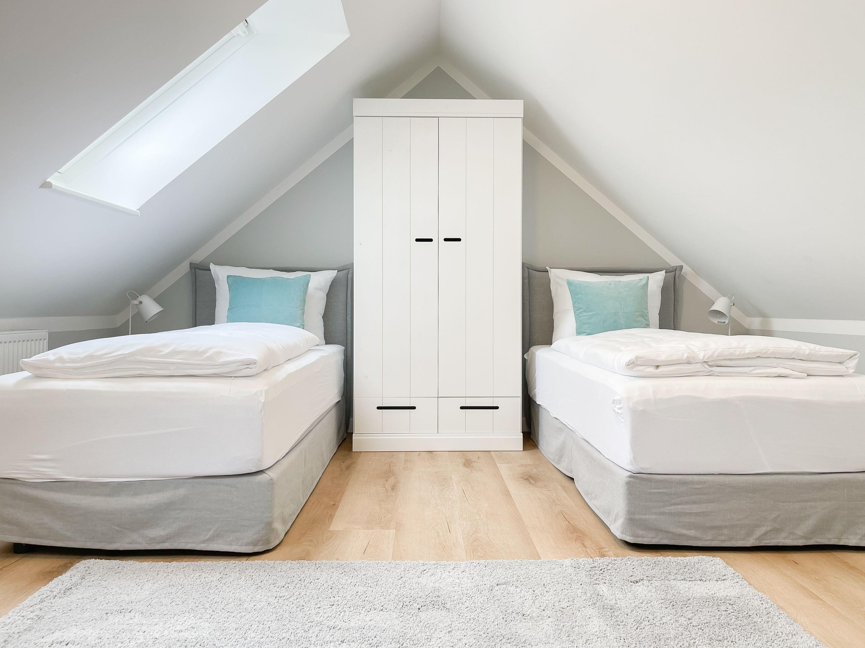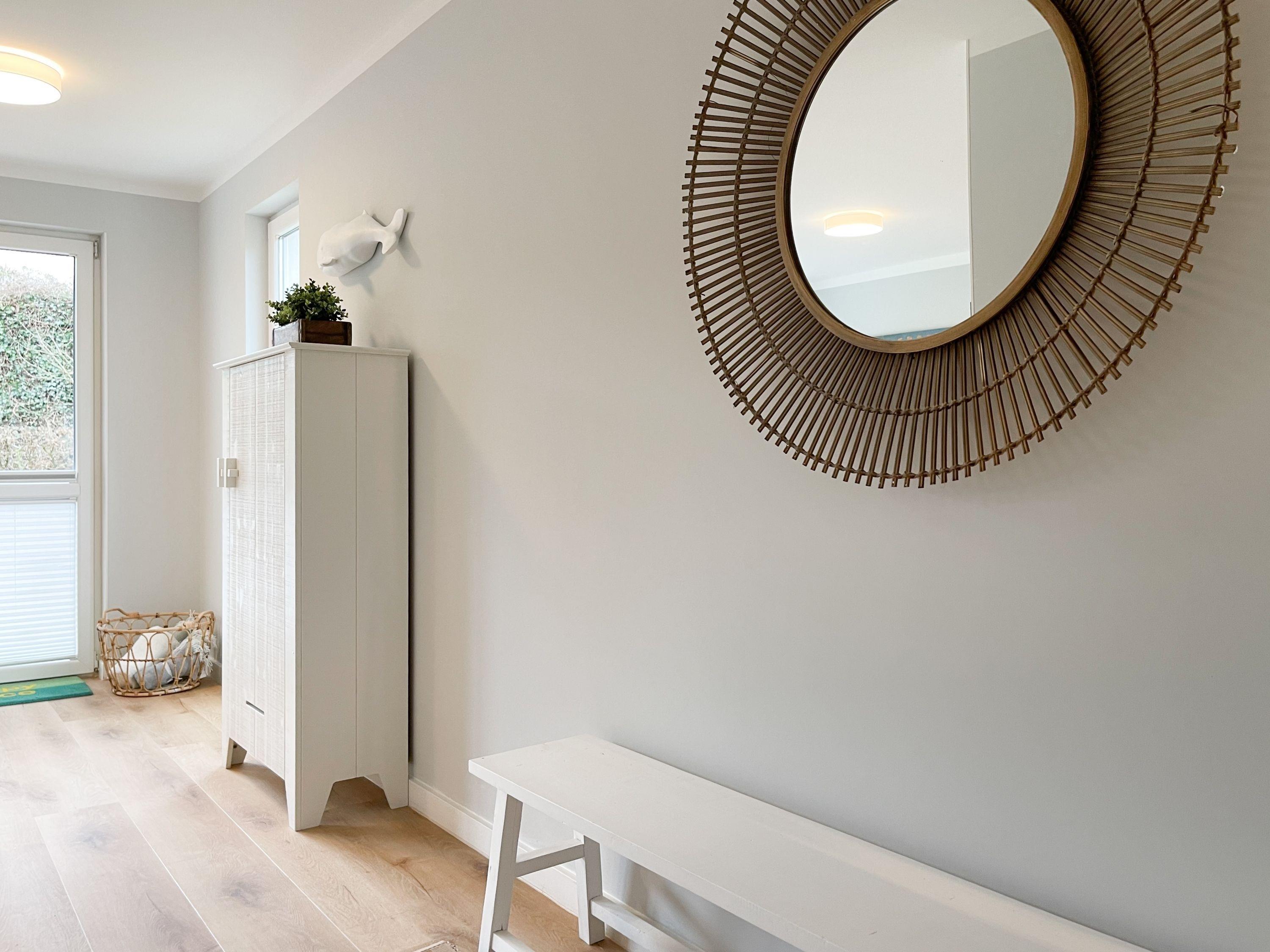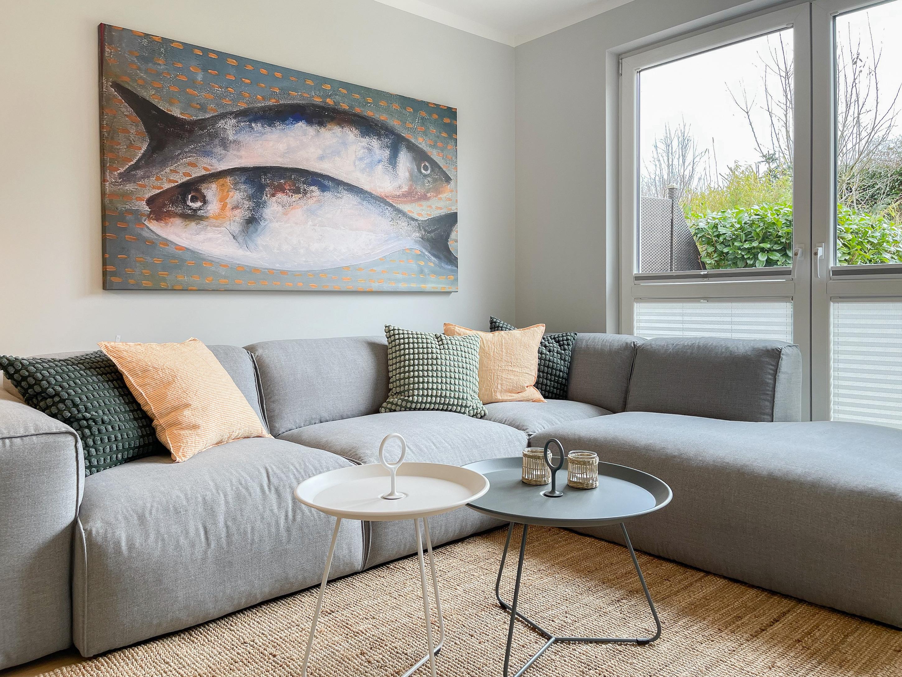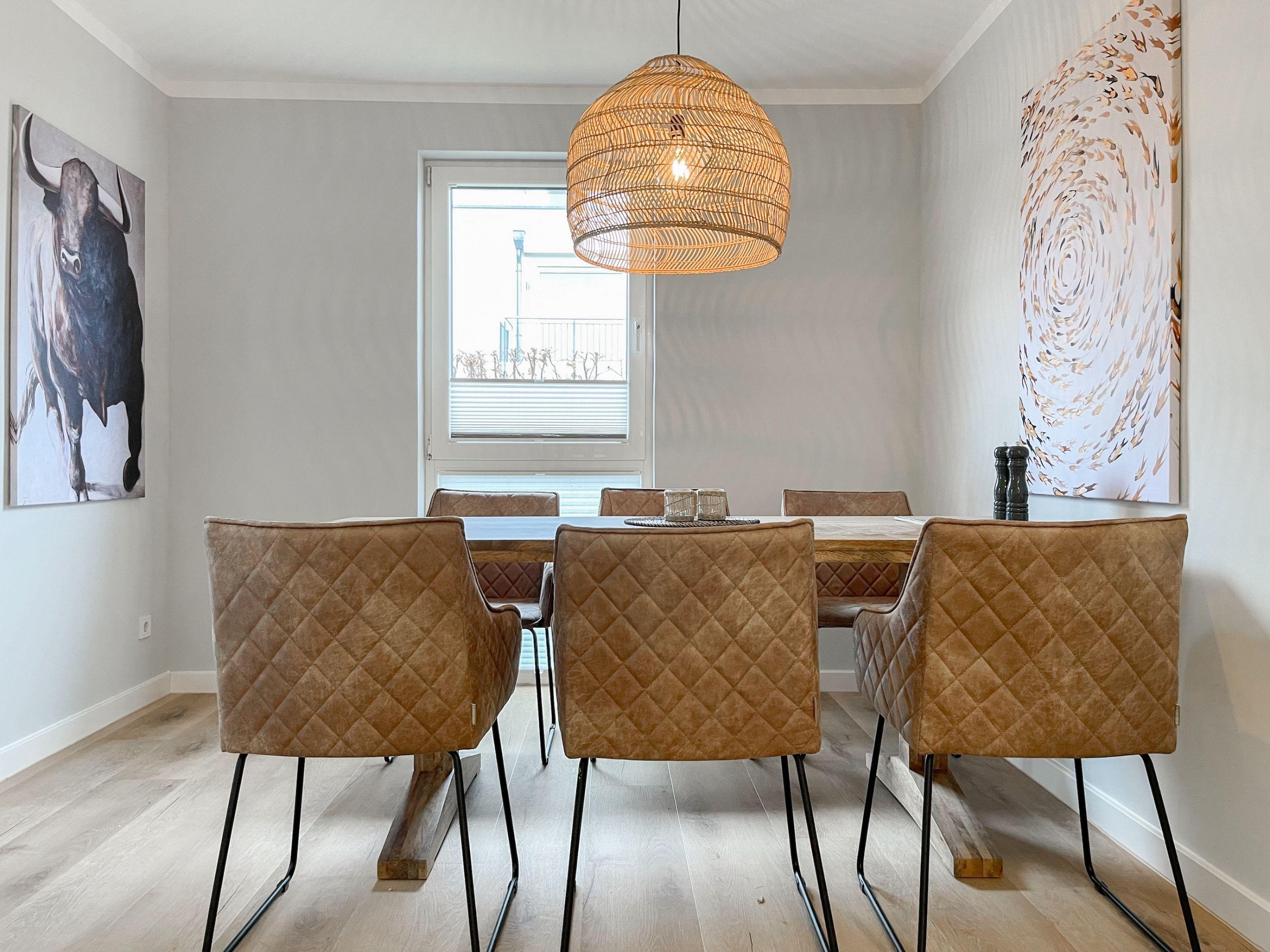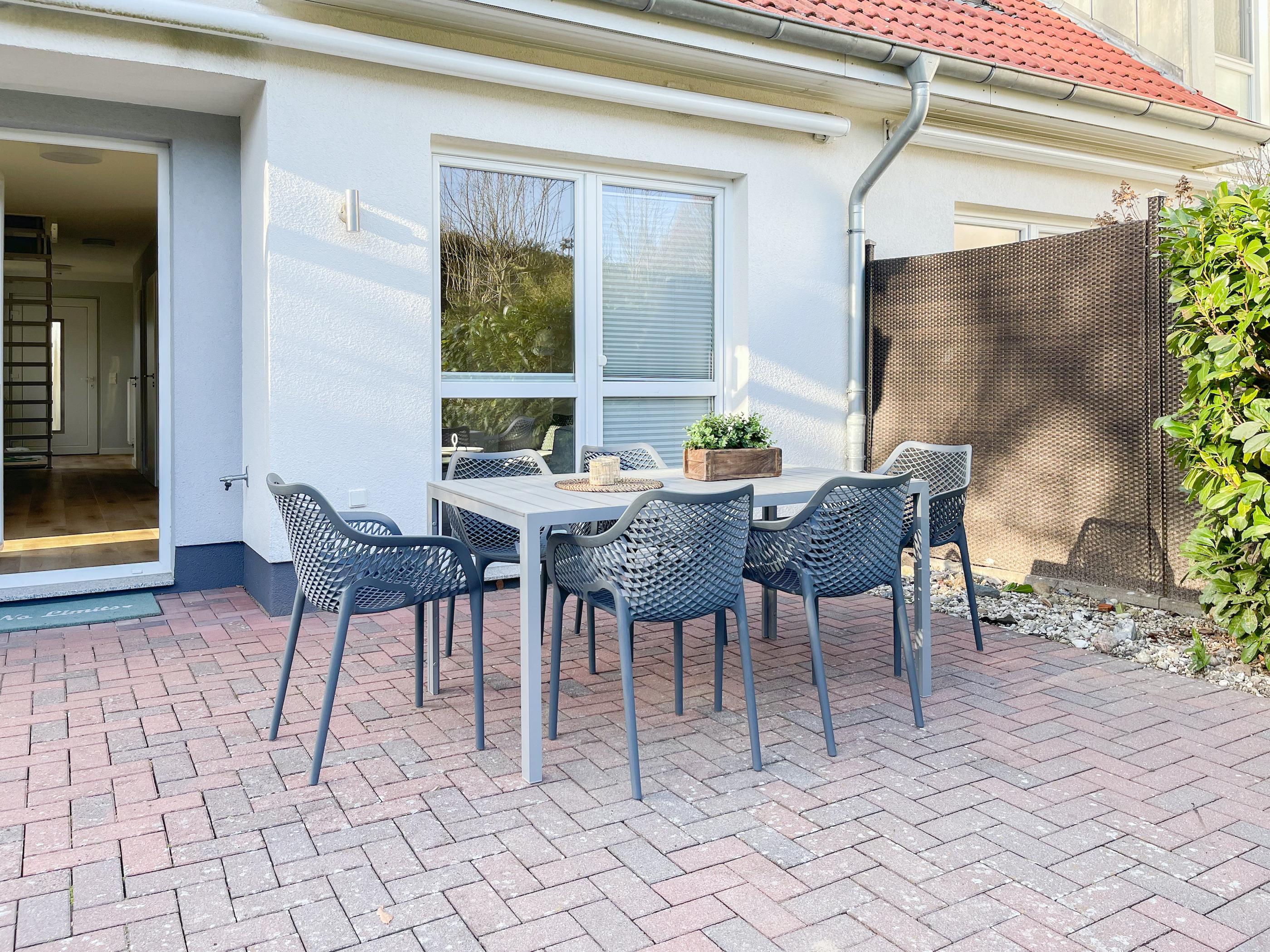 Es erwartet Sie eine wunderschönes Endreihenhaus, das bereits beim Eintreten Behaglichkeit und Wohlbefinden spüren läßt. Warme Farben, viel Licht und die hochwertige Einrichtung sorgen für einen hohen Wohnstandard in einer wunderbaren Atmosphäre. Mit 3 Schlafzimmern, einem Bad und einem separaten Gäste WC bietet das Haus auf 110 qm Wohnfläche ausreichend Raum für 4-6 Personen, um einen entspannten Urlaub in Strandnähe zu verleben. Im Erdgeschoss erwartet Sie ein großzügiger Wohnbereich, der mit einer gemütlichen XL Sofalandschaft und TV eingerichtet ist. Die vorgelagerte Sonnenterrasse in Südausrichtung ist mit Gartenmöbeln, 2 Sonnenliegen sowie einer elektrischen Markise ausgestattet und von einem großzügigen privaten Garten umgeben. Im hinteren Teil des Gartens befindet sich ein Holzhaus zum trockenen und sicheren Abstellen von Fahrrädern, Bollerwagen etc. Die neue moderne Einbauküche ist bestens ausgestattet und verfügt über Backofen, Mikrowelle, Induktionskochfeld, Spülmaschine und vielem mehr. Der anschließende Essbereich, mit großem Esstisch und gemütlichen Sesseln, bietet ausreichend Platz für 6 Personen zum gemeinsamen Essen und beisammen sein. Ein Gäste WC sowie ein Abstellraum mit Waschmaschine und Trockner sind ebenfalls im Erdgeschoss untergebracht. Im ersten Obergeschoss gibt es 2 separate Schlafzimmer (eines mit zusätzlichem TV), die mit hochwertigen Boxspringbetten (180x200), Kleiderschränken und Schreibtischen für das home office eingerichtet sind. Zwischen den Schlafräumen befindet sich das Bad mit Badewanne, Dusche, WC, Waschtisch, Fön und Handtuchtrockner. Auf der Galerie im Dachgeschoss befindet sich ein weiteres Schlafzimmer mit 2 Einzelbetten (Boxspring 90x200), TV, kleinem Kleiderschrank und gemütlicher Sitzecke. Alle Fenster der Schlafräume sind mit Blackout Plissees versehen. Ein fester PKW-Stellplatz (Carport) befindet sich vor dem Haus.