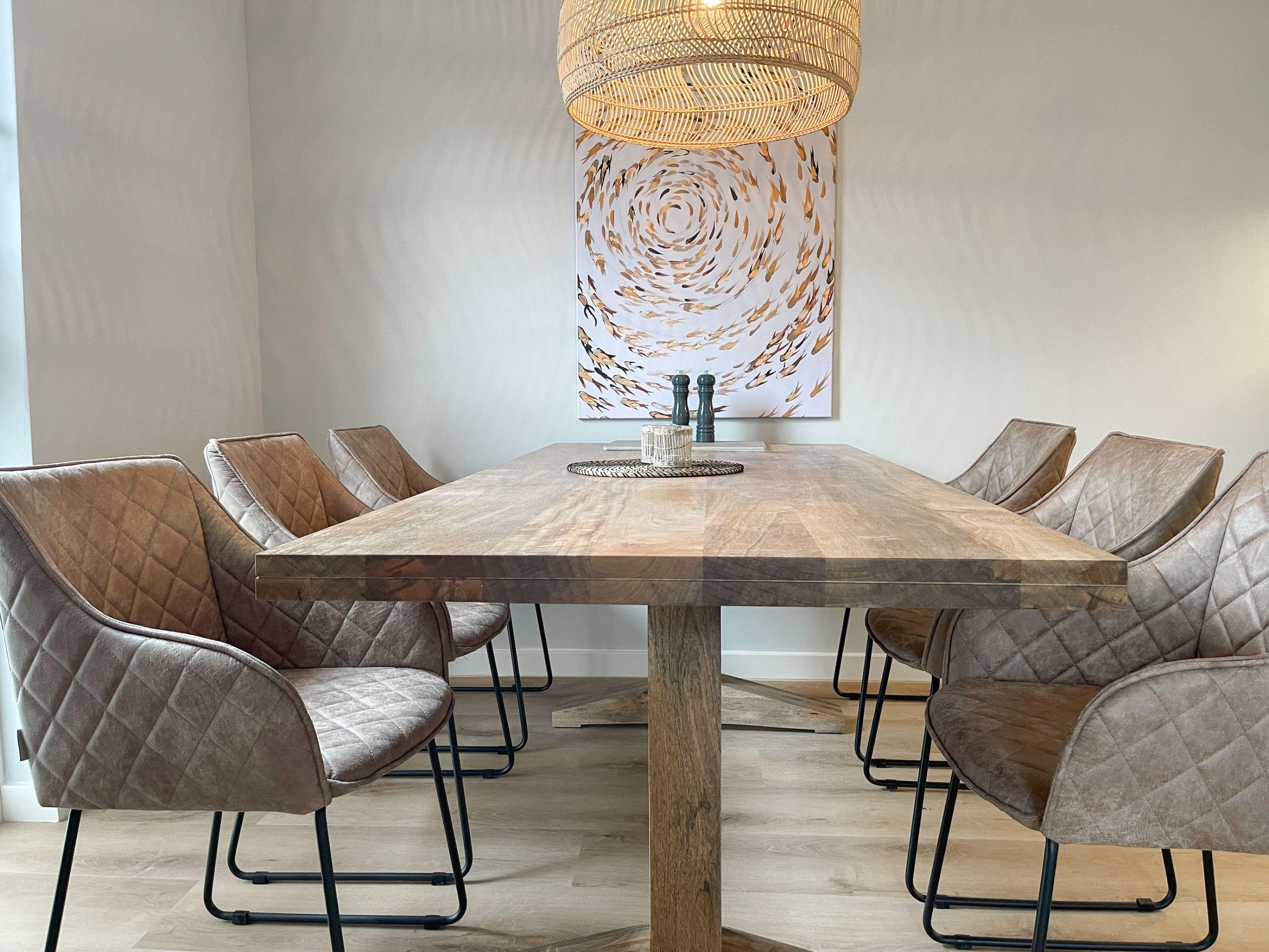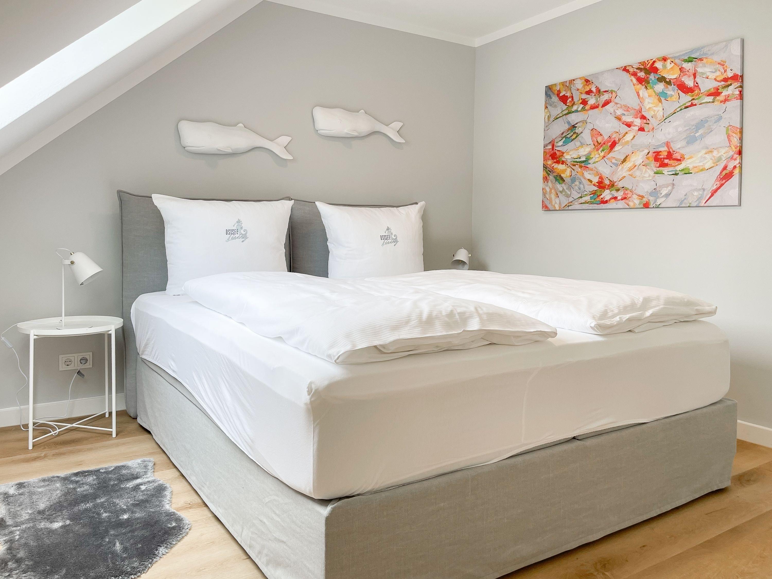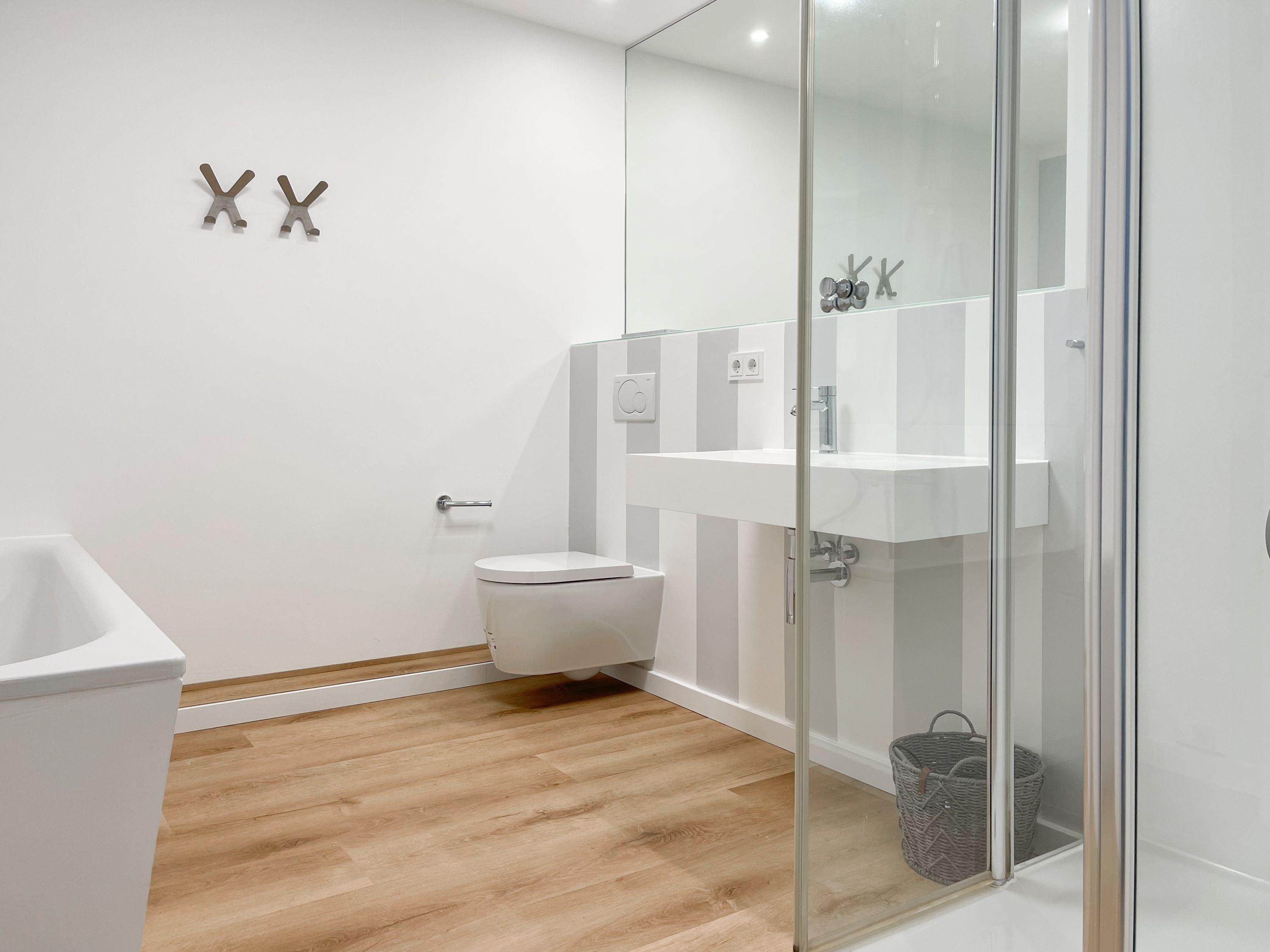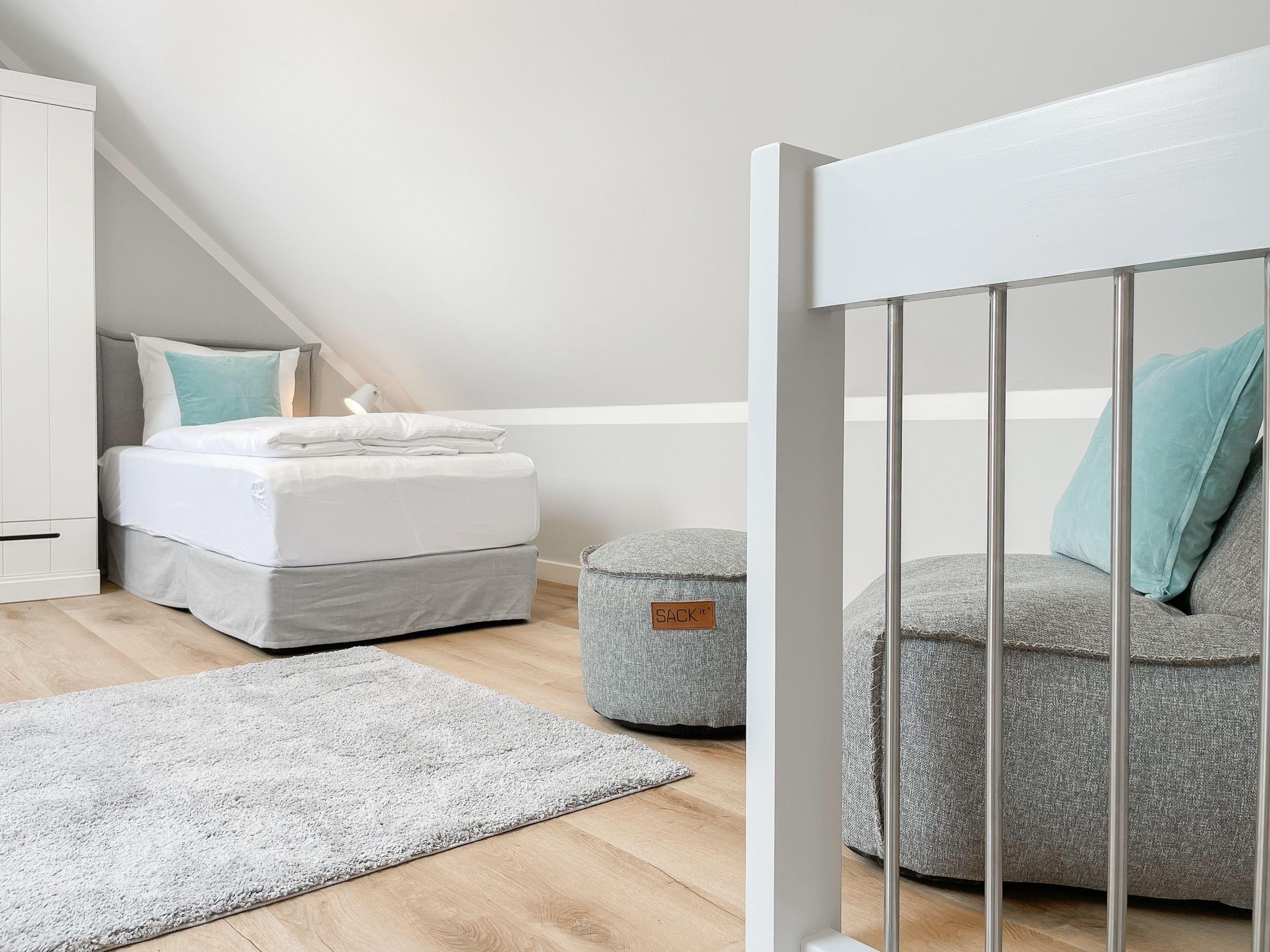 Es erwartet Sie eine wunderschönes Endreihenhaus, das bereits beim Eintreten Behaglichkeit und Wohlbefinden spüren läßt. Warme Farben, viel Licht und die hochwertige Einrichtung sorgen für einen hohen Wohnstandard in einer wunderbaren Atmosphäre. Mit 3 Schlafzimmern, einem Bad und einem separaten Gäste WC bietet das Haus auf 110 qm Wohnfläche ausreichend Raum für 4-6 Personen, um einen entspannten Urlaub in Strandnähe zu verleben. Im Erdgeschoss erwartet Sie ein großzügiger Wohnbereich, der mit einer gemütlichen XL Sofalandschaft und TV eingerichtet ist. Die vorgelagerte Sonnenterrasse in Südausrichtung ist mit Gartenmöbeln, 2 Sonnenliegen sowie einer elektrischen Markise ausgestattet und von einem großzügigen privaten Garten umgeben. Im hinteren Teil des Gartens befindet sich ein Holzhaus zum trockenen und sicheren Abstellen von Fahrrädern, Bollerwagen etc. Die neue moderne Einbauküche ist bestens ausgestattet und verfügt über Backofen, Mikrowelle, Induktionskochfeld, Spülmaschine und vielem mehr. Der anschließende Essbereich, mit großem Esstisch und gemütlichen Sesseln, bietet ausreichend Platz für 6 Personen zum gemeinsamen Essen und beisammen sein. Ein Gäste WC sowie ein Abstellraum mit Waschmaschine und Trockner sind ebenfalls im Erdgeschoss untergebracht. Im ersten Obergeschoss gibt es 2 separate Schlafzimmer (eines mit zusätzlichem TV), die mit hochwertigen Boxspringbetten (180x200), Kleiderschränken und Schreibtischen für das home office eingerichtet sind. Zwischen den Schlafräumen befindet sich das Bad mit Badewanne, Dusche, WC, Waschtisch, Fön und Handtuchtrockner. Auf der Galerie im Dachgeschoss befindet sich ein weiteres Schlafzimmer mit 2 Einzelbetten (Boxspring 90x200), TV, kleinem Kleiderschrank und gemütlicher Sitzecke. Alle Fenster der Schlafräume sind mit Blackout Plissees versehen. Ein fester PKW-Stellplatz (Carport) befindet sich vor dem Haus.