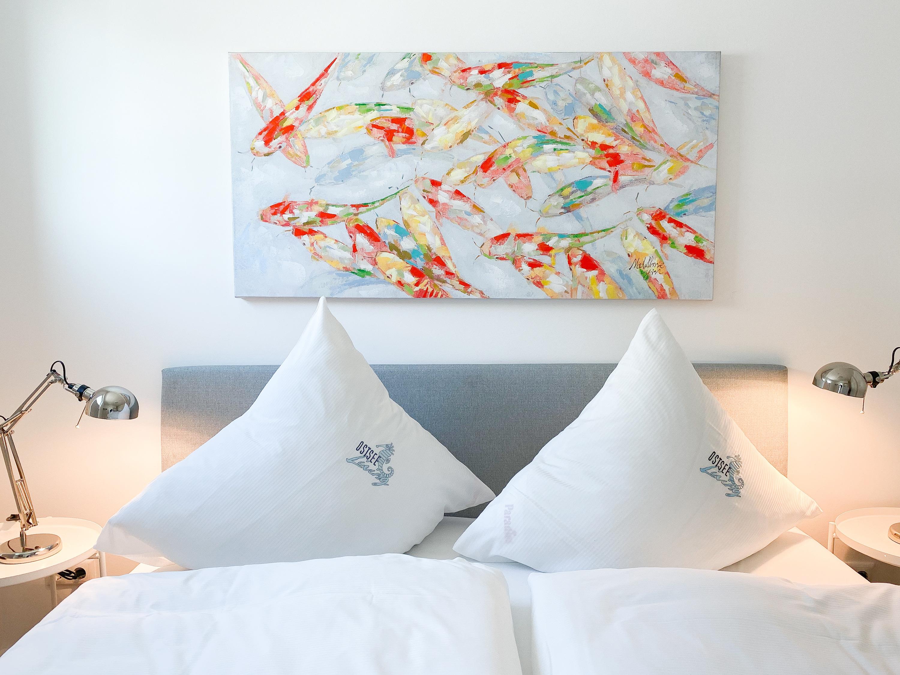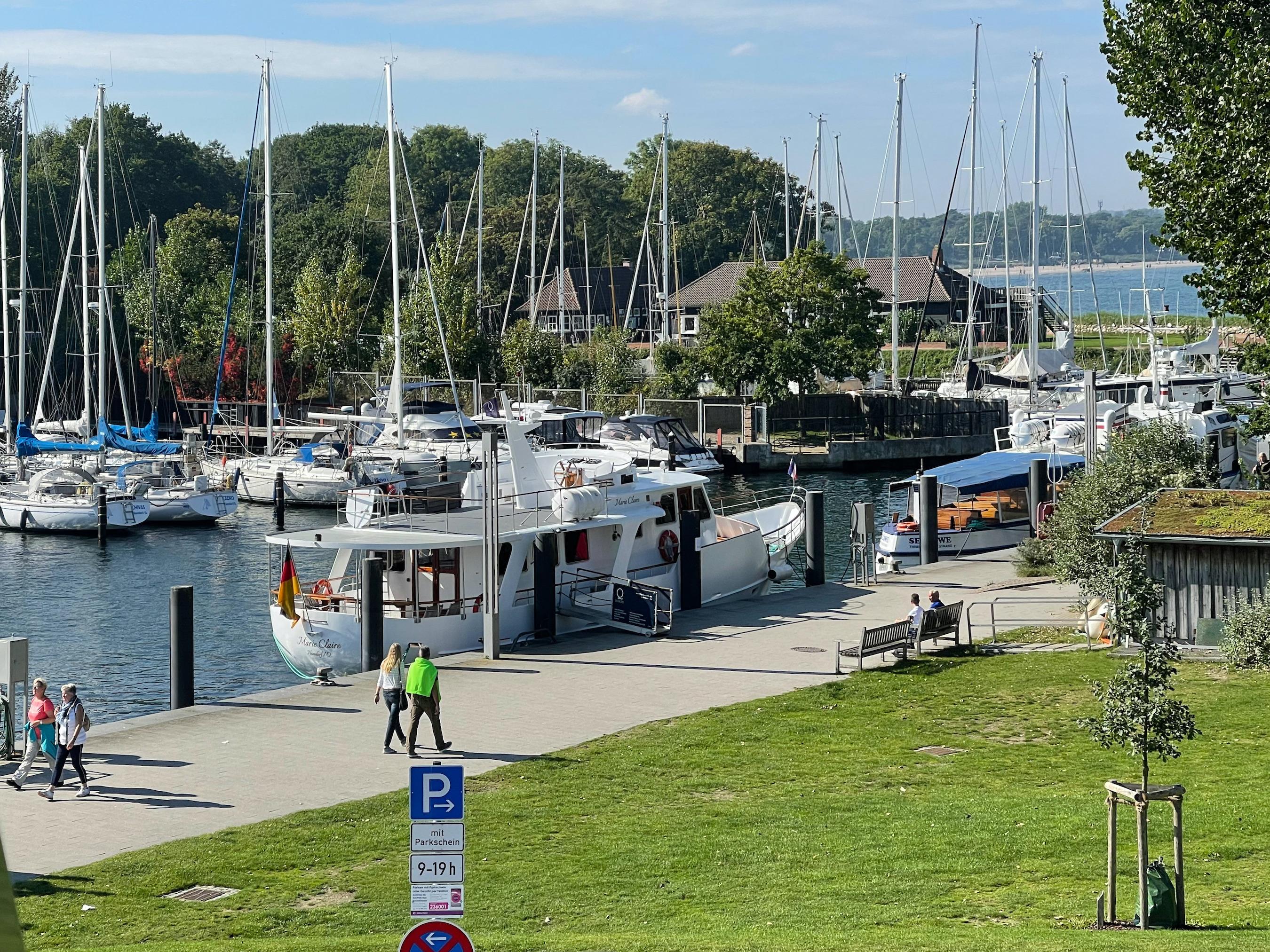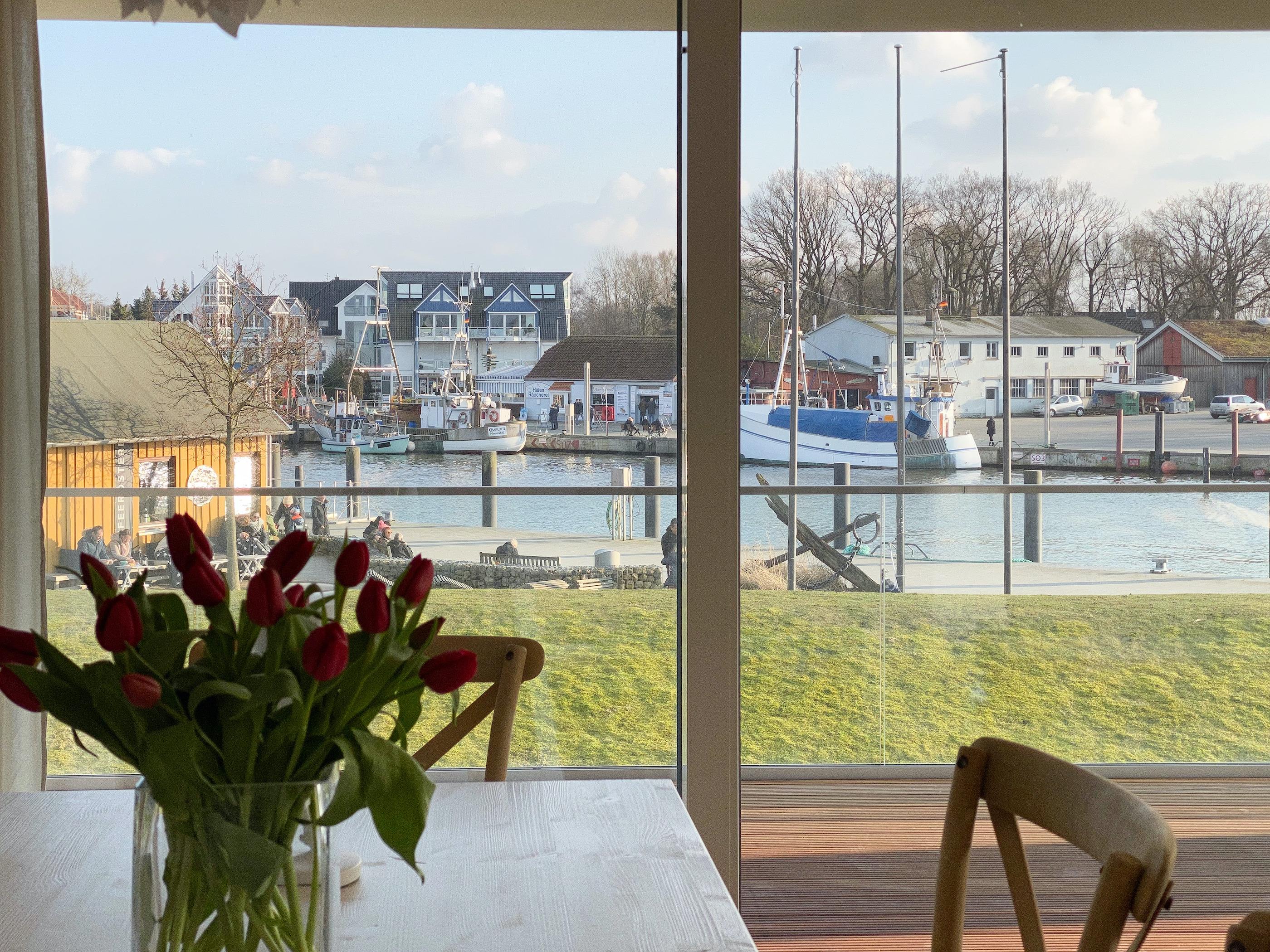 Diese einzigartige Ferienwohnung liegt im 1. Obergeschoss eines modernen Neubaus mit nur 3 Wohneinheiten und bietet auf 100 qm Wohnfläche mit 2 Schlafzimmern und 2 separaten Bädern jeglichen Komfort für 4 Personen. Das Herzstück der Wohnung bildet der stilvoll eingerichtete Wohn- und Essbereich mit riesigen Fensterelementen und einem phantastischen Ausblick auf die Ostsee und die ein- und ausfahrenden Schiffe vom Fischkutter bis zur Motoryacht.[nbsp] Echtholzböden und Fußbodenheizung sorgen für ein angenehmes Raumklima. Der großzügig angelegte Sonnenbalkon ist überdacht und sowohl zum Süden als auch zum Westen ausgerichtet. Genießen Sie die Sonne von früh bis spät, die einzigartige Hafenatmosphäre und beeindruckende Sonnenuntergänge bei einem Glas Wein.