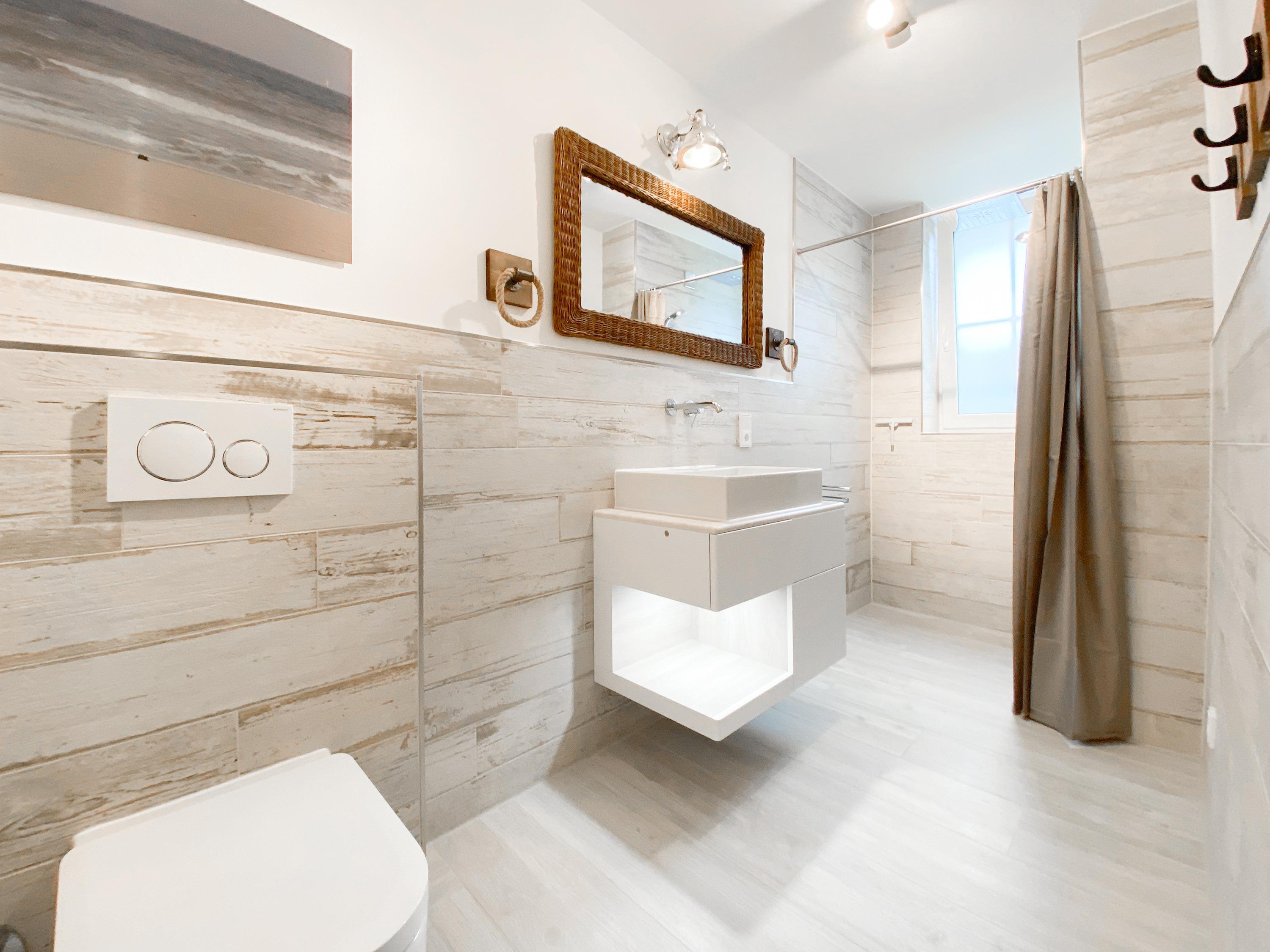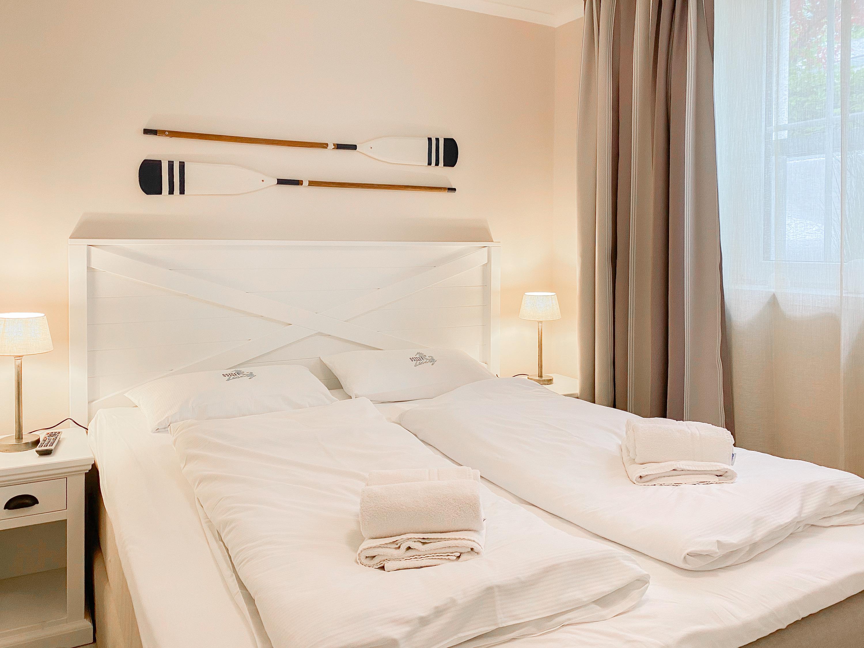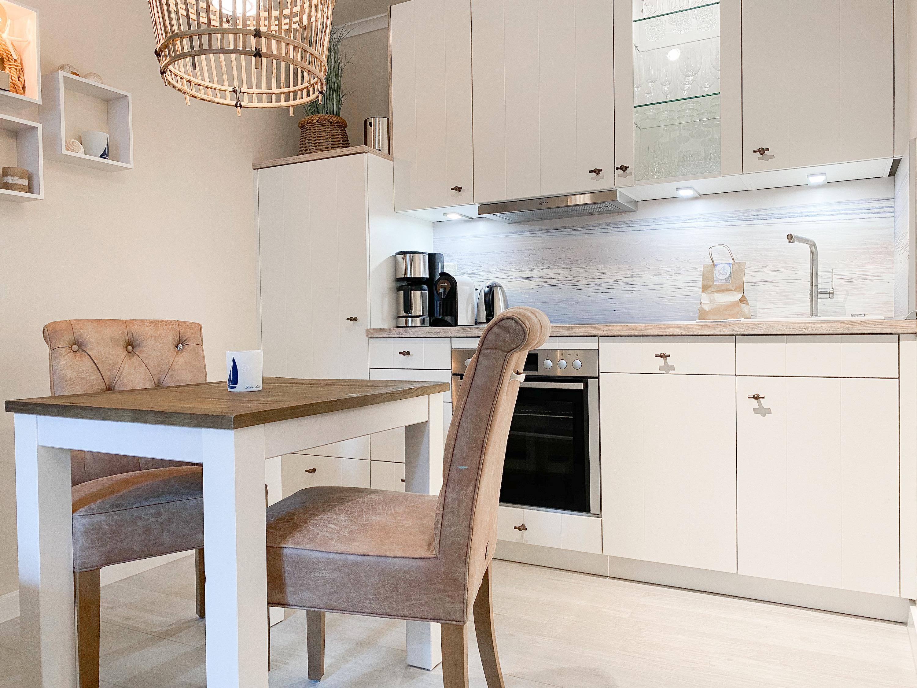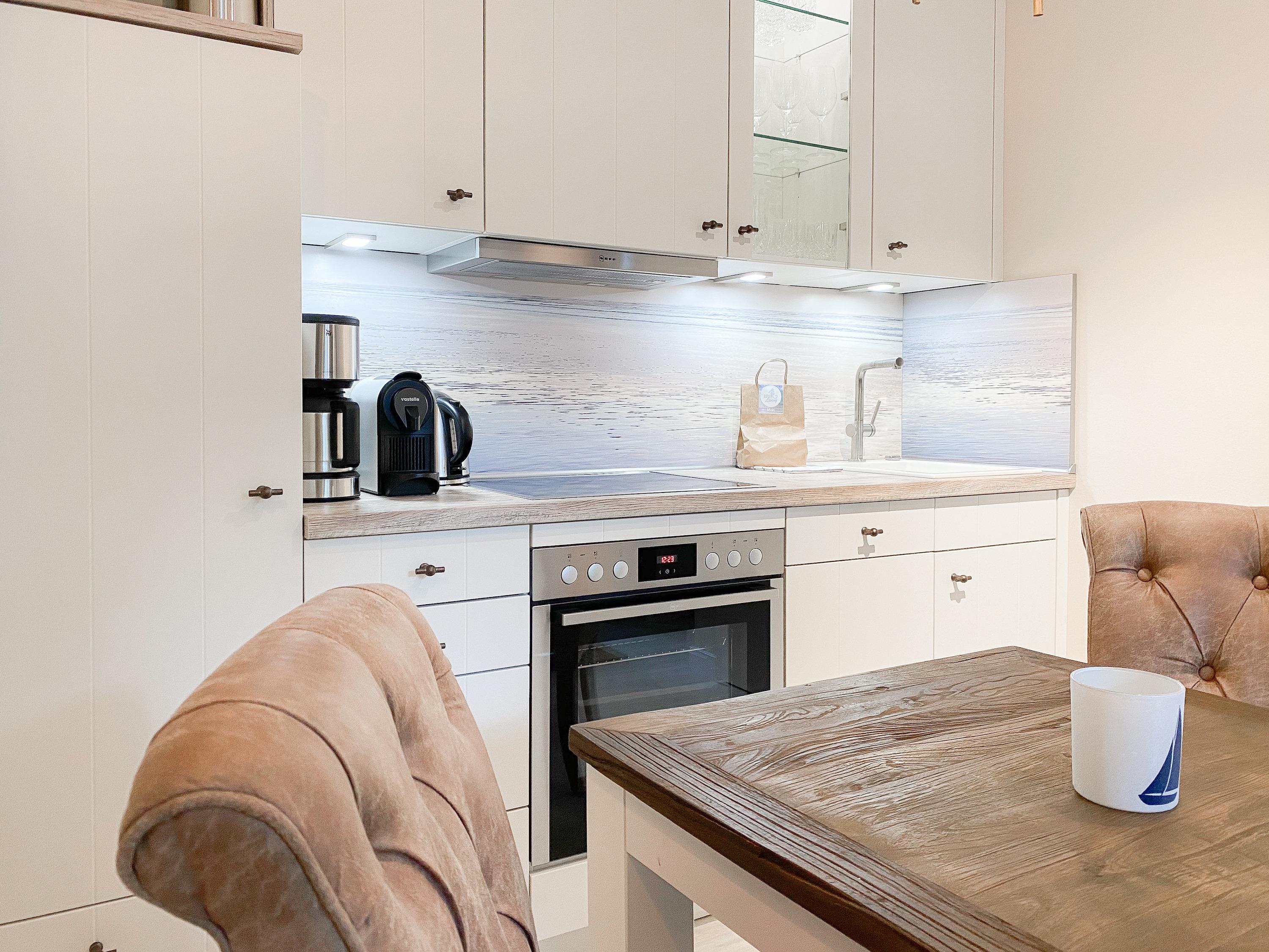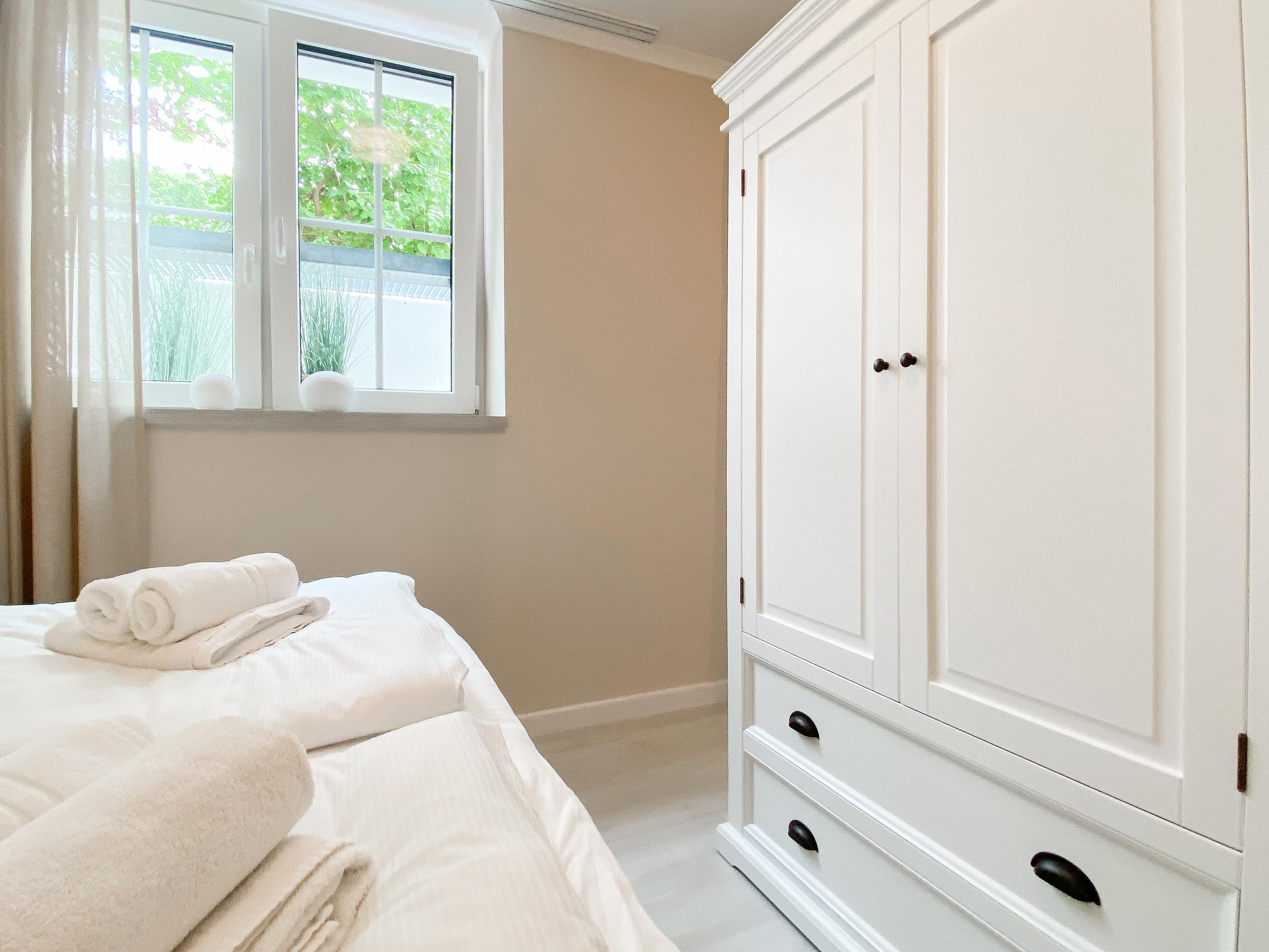 Die kleine Ferienwohnung Harbour Beach 5 befindet sich im Souterrain im Untergeschoss des Hauses und bietet auf 50 qm ausreichend Raum für 2 Personen. Breite Lichtschächte sorgen für[nbsp] Tageslicht. Die exklusive Einrichtung und die hochwertige Ausstattung gewährleisten eine Atmosphäre zum Wohlfühlen. Im Wohnbereich erwartet Sie ein gemütliches Sofa, ein anschließender Essbereich und die integrierte Küche in bester Ausstattung. Das Schlafzimmer ist durch einen Raumteiler getrennt und mit einem hochwertigen Boxspringbett (180x200) ausgestattet. Das moderne Duschbad verfügt über ein Fenster und ist großzügig bemessen. WLAN steht selbstverständlich kostenlos zur Verfügung und der Wohnung ist ein fester Parkplatz zugeordnet. Zur Wohnung gehört eine gemütliche Holzterrasse, die über den Hauseingang und dann über eine Außentreppe vom Parkplatz aus zu erreichen ist. Eine Waschmaschine und ein Trockner stehen im Keller zur gemeinschaftlichen Nutzung bereit. Wir bitten um Verständnis, dass das Rauchen sowohl im Innen- als auch Außenbereich der gesamten Anlage nicht erwünscht ist. Wir freuen uns sehr, Ihnen bei uns die Ruhe und Erholung zukommen zu lassen, die Sie brauchen! Moin und bis bald im Harbour Beach 53!