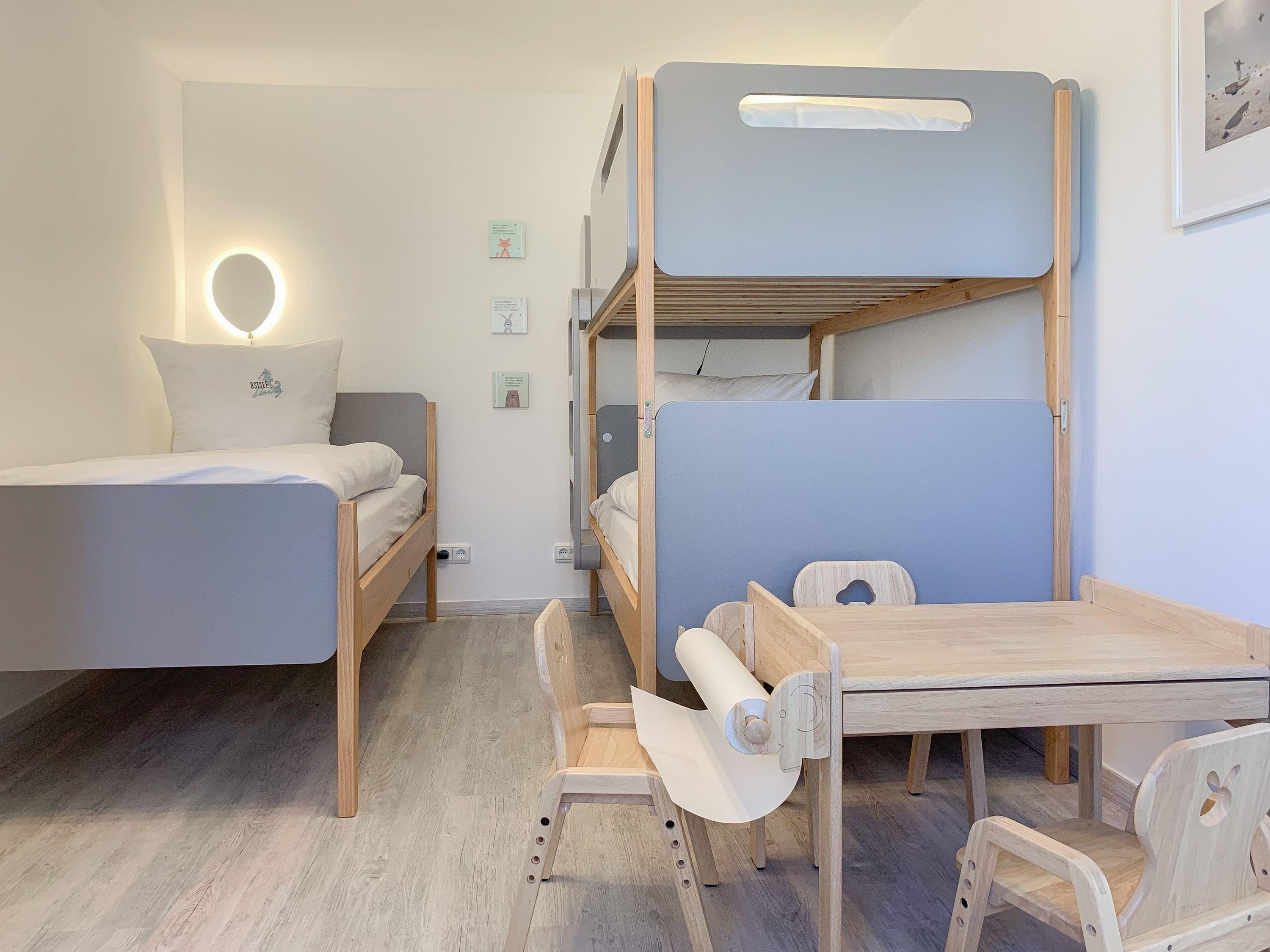 Kinder, Kinder – ein abschließbarer Gartenbereich zum Toben und ohne Sorge vor flüchtenden Abenteurern. Eine Schlafparty im Hochbett, ein ausklappbarer Wickeltisch auf rückenschonender Höhe, Malwettbewerbe am Kindermaltisch, Waschmaschine, Steckdosenschutz, Kinderhochsitze, Babybetten oder die Herdplattenkindersicherung: MAPLE BEACH wurde von Eltern für Eltern gedacht.