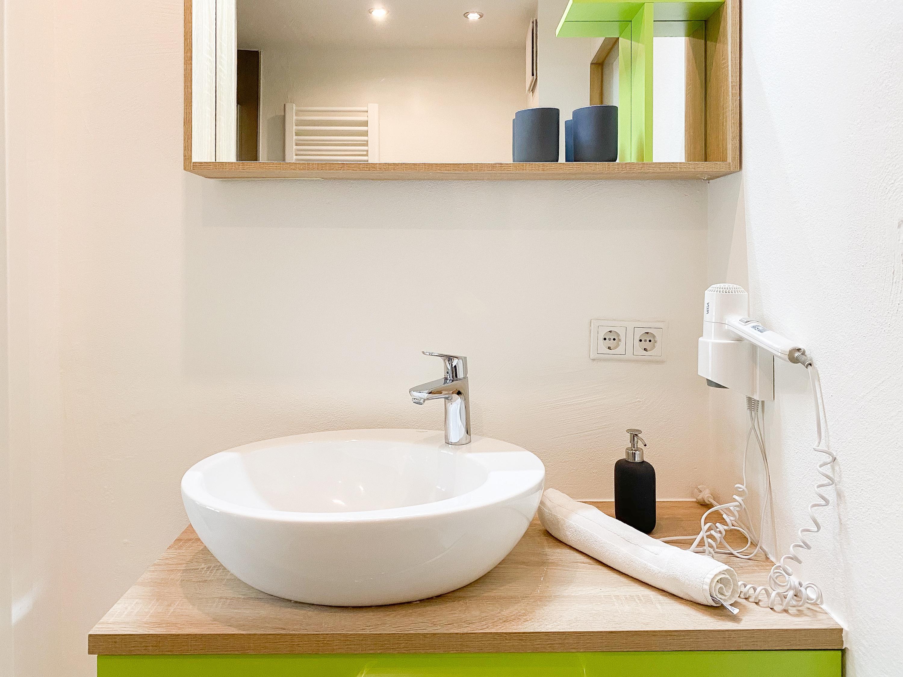 Waschmaschine und Trockner sind im separaten Waschraum untergebracht, der vom Garten zu erreichen ist. Zwei Parkplätze befinden sich auf dem Grundstück. Eine Fahrradunterstellmöglichkeit befindet sich hinter dem Saunahaus.