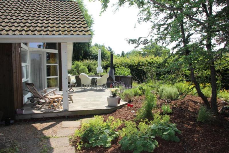 Es erwartet Sie ein heller, freundlicher Wohnraum mit äußerst hohen Decken und viel Fensterfläche, eine offene Einbauküche (Geschirrspüler, Backofen, Mikrowelle) mit einem Essbereich für 6 Personen. Im angrenzenden Wohnbereich befindet sich ein Kaminofen und eine kuschelige Schlafkoje (140x200). Die vorgelagerte Holzterrasse ist zum Süden ausgerichtet und mit Sonnenliegen und Gartenmöbeln ausgestattet. Das Haus verfügt über zwei Schlafzimmer mit Doppelbetten (180x200 und 140x200), eines mit zusätzlichem TV, ein großes Bad mit integrierter Sauna, Badewanne und Dusche sowie ein weiteres Bad mit Dusche.