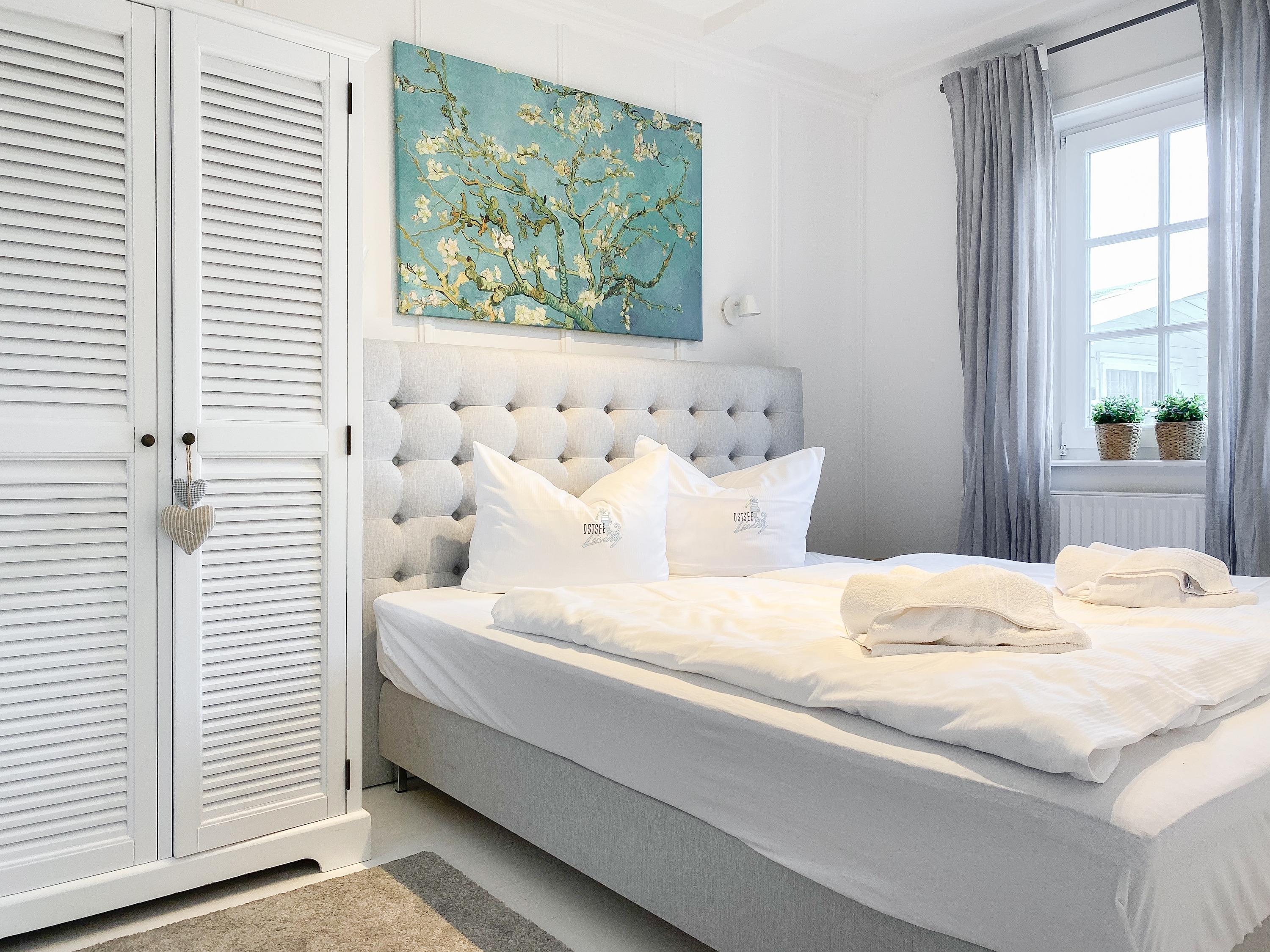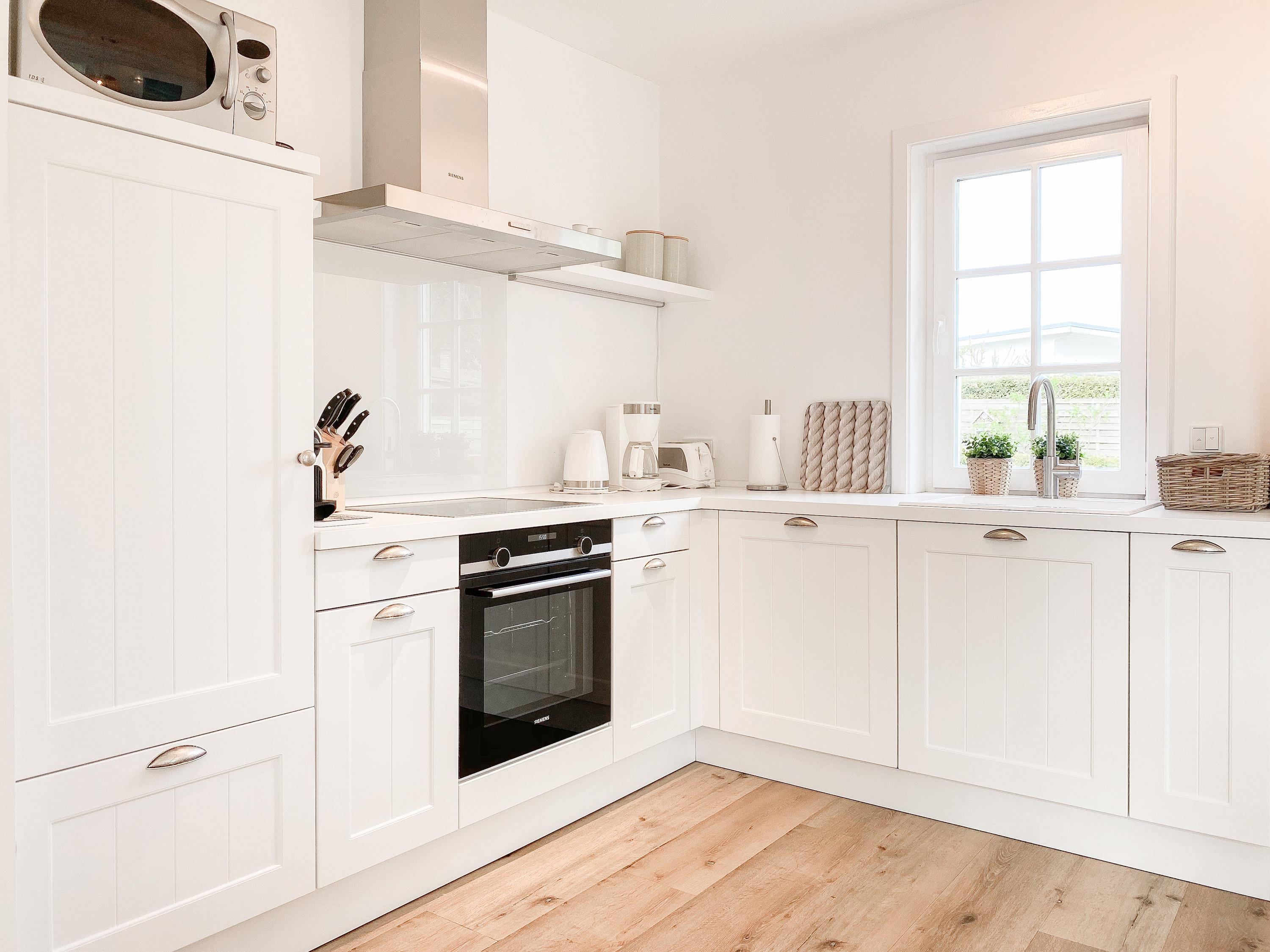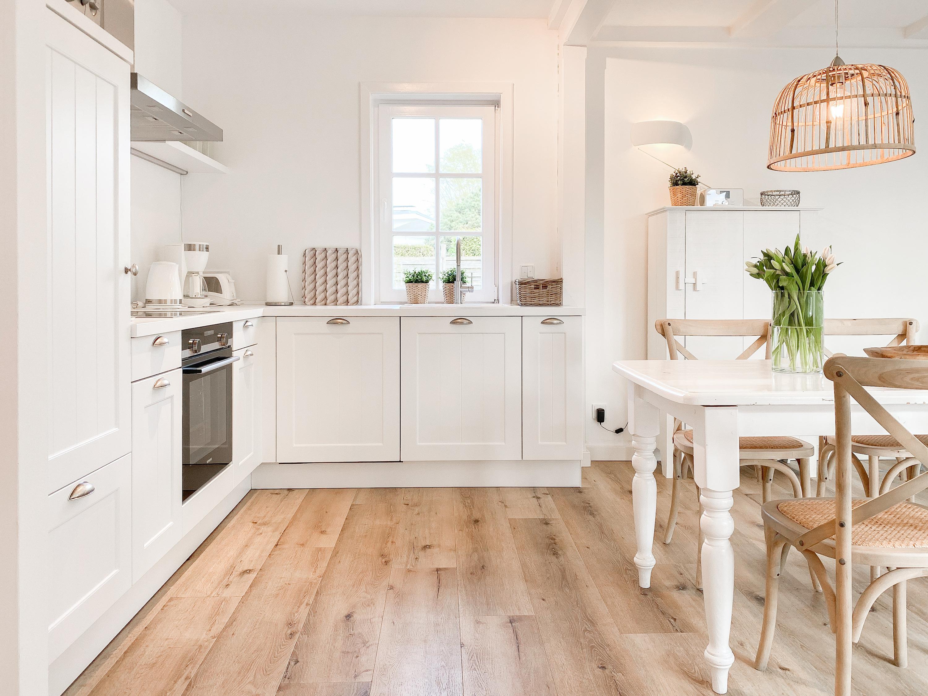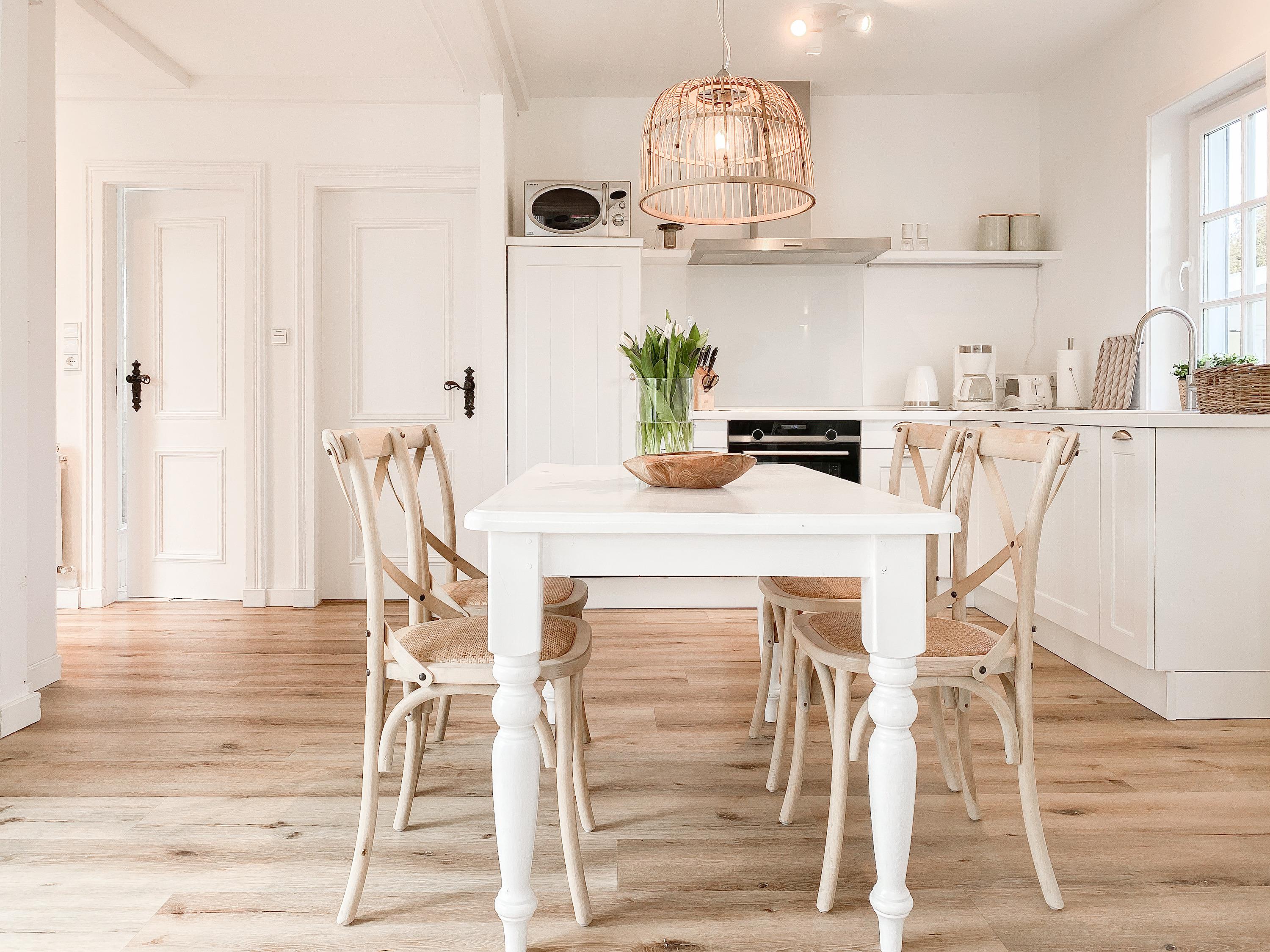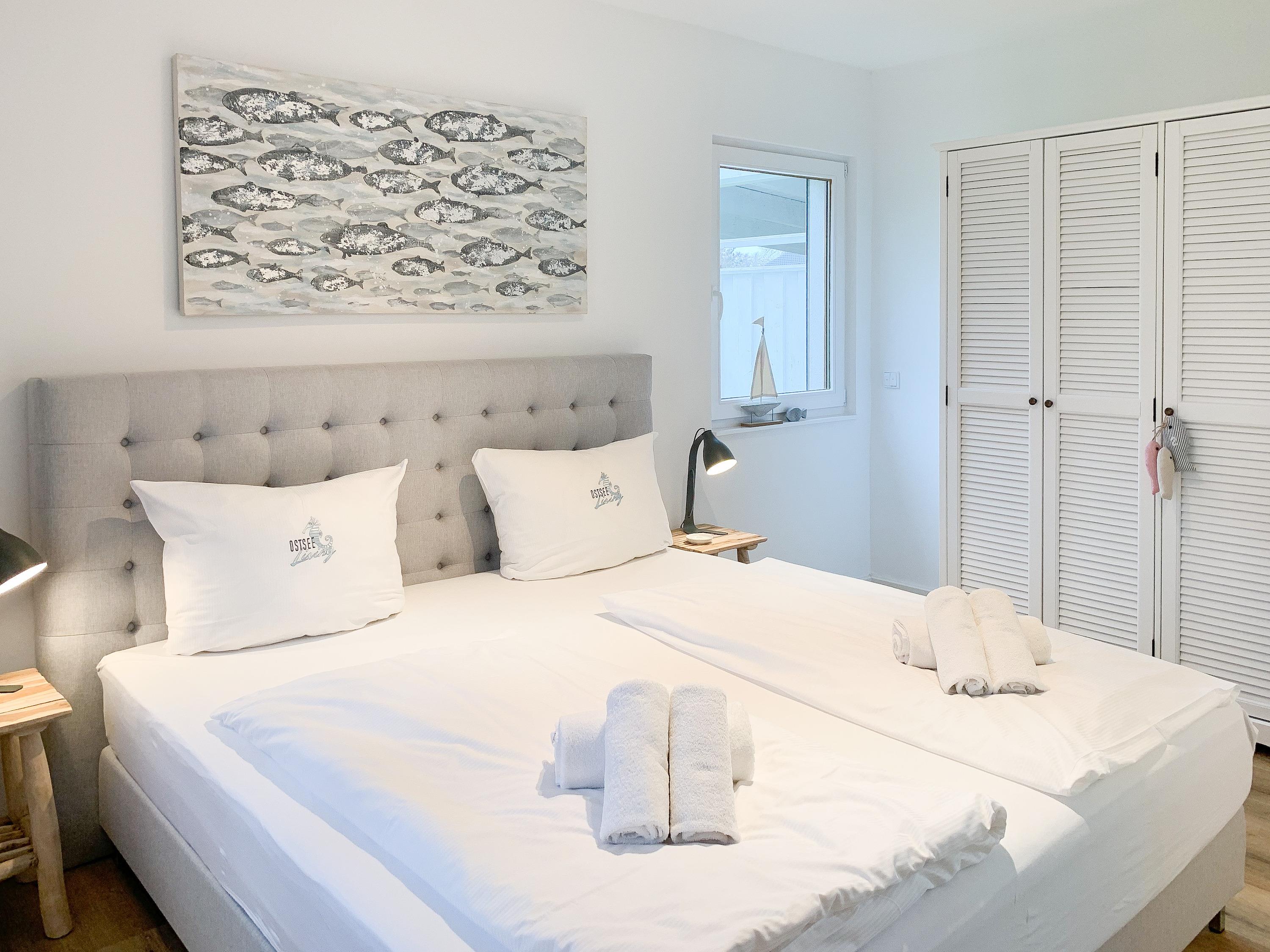 Strandflair pur! Das vollständig renovierte und hochwertig ausgestattete Cottage bietet jeglichen Komfort für 4 Personen, um einen entspannten Urlaub zu verleben! Die stilvolle Einrichtung mit Liebe zum Detail, helle Räumlichkeiten und zeitgemäßes Ambiente wie TV, Bluetooth Lautsprecher, Internetradio und WLAN sorgen für eine Atmosphäre zum Wohlfühlen. Es gibt einen gemütlichen Wohnbereich mit schönem Blick in den eingewachsenen Garten. Die vorgelagerte Sonnenterrasse ist teilweise überdacht und zum Südwesten ausgerichtet. Ein Außenkamin für gemütliche Urlaubsabende, Markise, Sonnenliegen und Gartenmöbel stehen zur Verfügung. Der Essbereich bietet ausreichend Platz für 4 Personen und die offene, hochwertige Einbauküche ist bestens ausgestattet. Es stehen zwei separate Schlafzimmer mit Boxspringbetten (180x200 und 160x200)[nbsp] sowie zwei Duschbäder zur Verfügung. Sämtliche Fenster sind mit elektrischen Außenjalousien versehen. Eine Waschmaschine ist im Bad untergebracht.