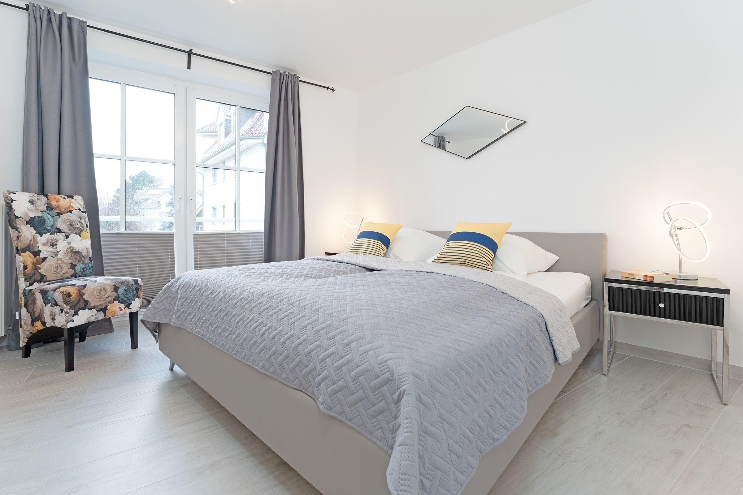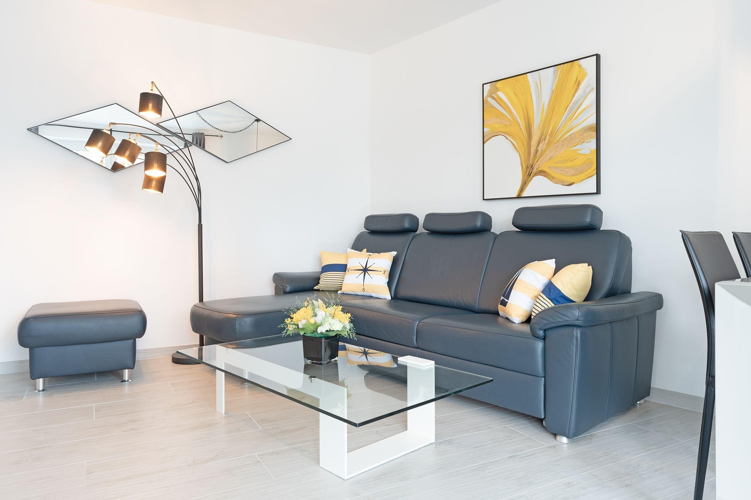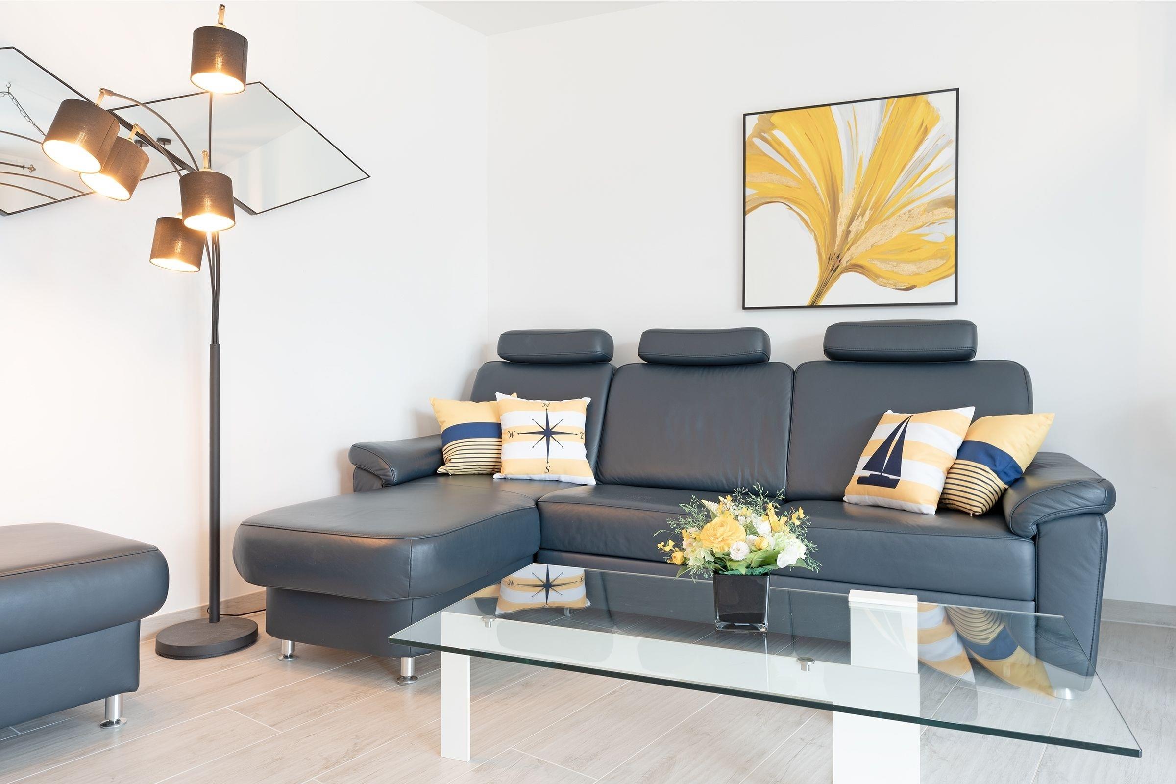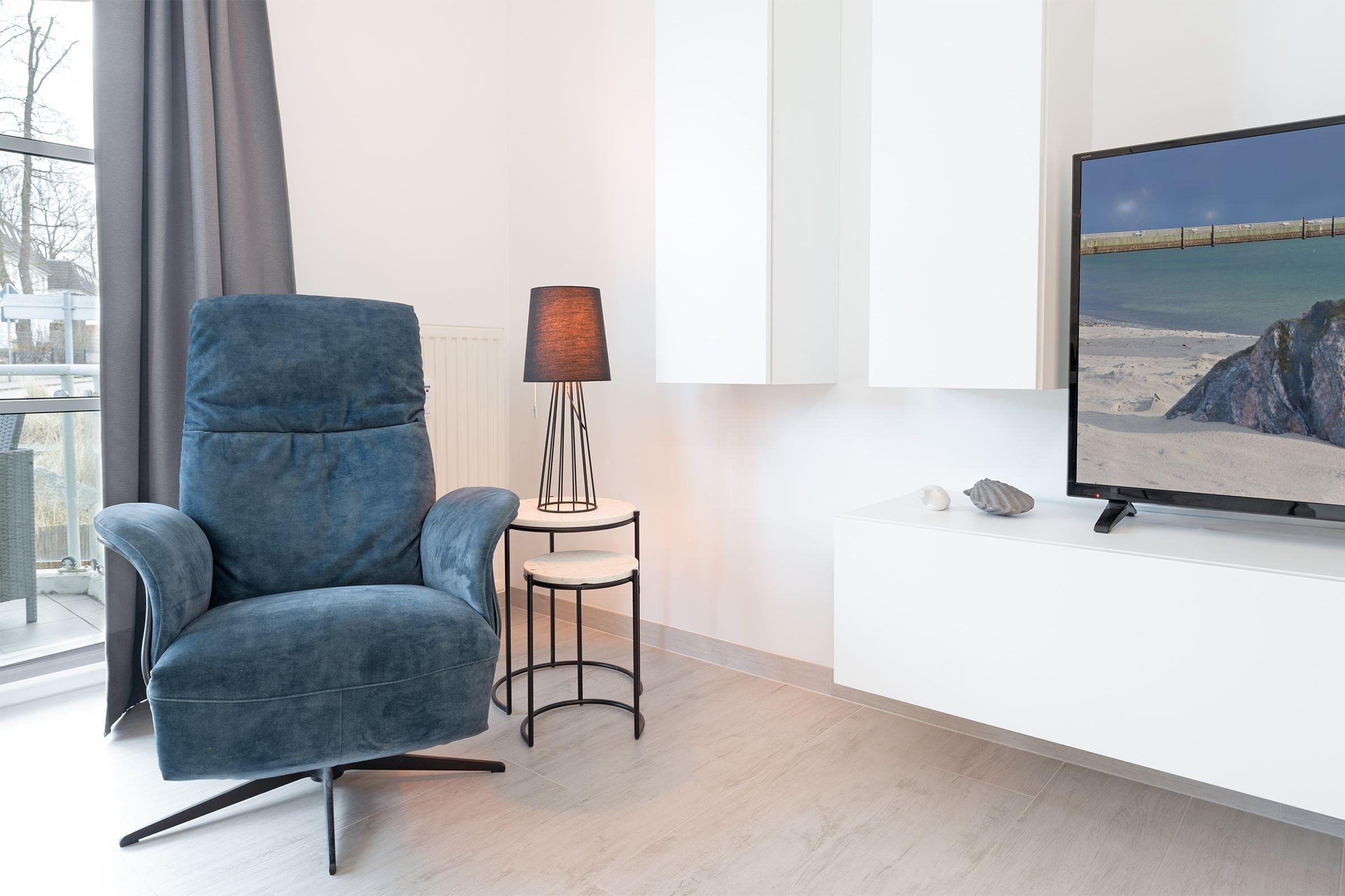 Urlaub mit Wohlfühl-Garantie in Strandnähe. Der Wohnbereich der Wohnung Seeluft präsentiert sich mit einer geschmackvoll ausgesuchten und farblich perfekt abgestimmten Einrichtung. Die gemütliche Sofalandschaft, die Essecke sowie der möblierte Balkon laden zum Verweilen ein. Wie wäre es mit einem Willkommensdrink? Die separate Küche ist gut ausgestattet und ermöglicht es Ihnen, sich im Urlaub prima selbst zu verpflegen. Nach einem tollen Tag an der Ostsee werden Sie sicher wunderbar im bequemen Doppelbett (2x 90x200 cm) im Schlafzimmer zur Ruhe kommen. Ein zusätzliches TV-Gerät sowie ein großer Kleiderschrank stehen Ihnen hier zur Verfügung. Das großzügige Duschbad bietet mit einer Fußbodenheizung viel Komfort.
