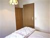 Schlafzimmer 1: 2 Ablagen, 2 Matratzen, 2 Nachttischlampen, Doppelbett, Hakenleiste, Hocker, Klappstuhl, Kleiderschrank, Spiegel, Verdunklungsrollo