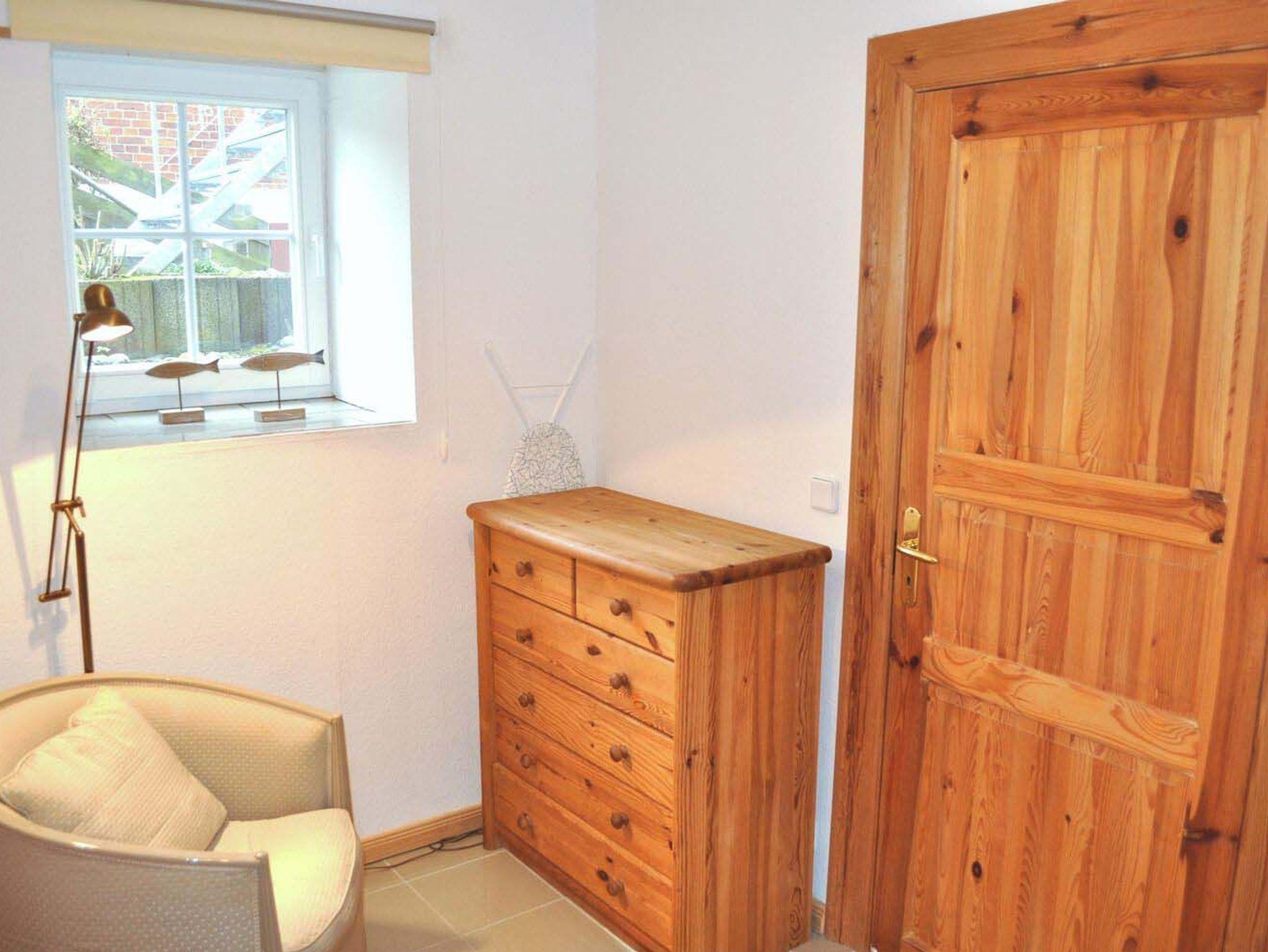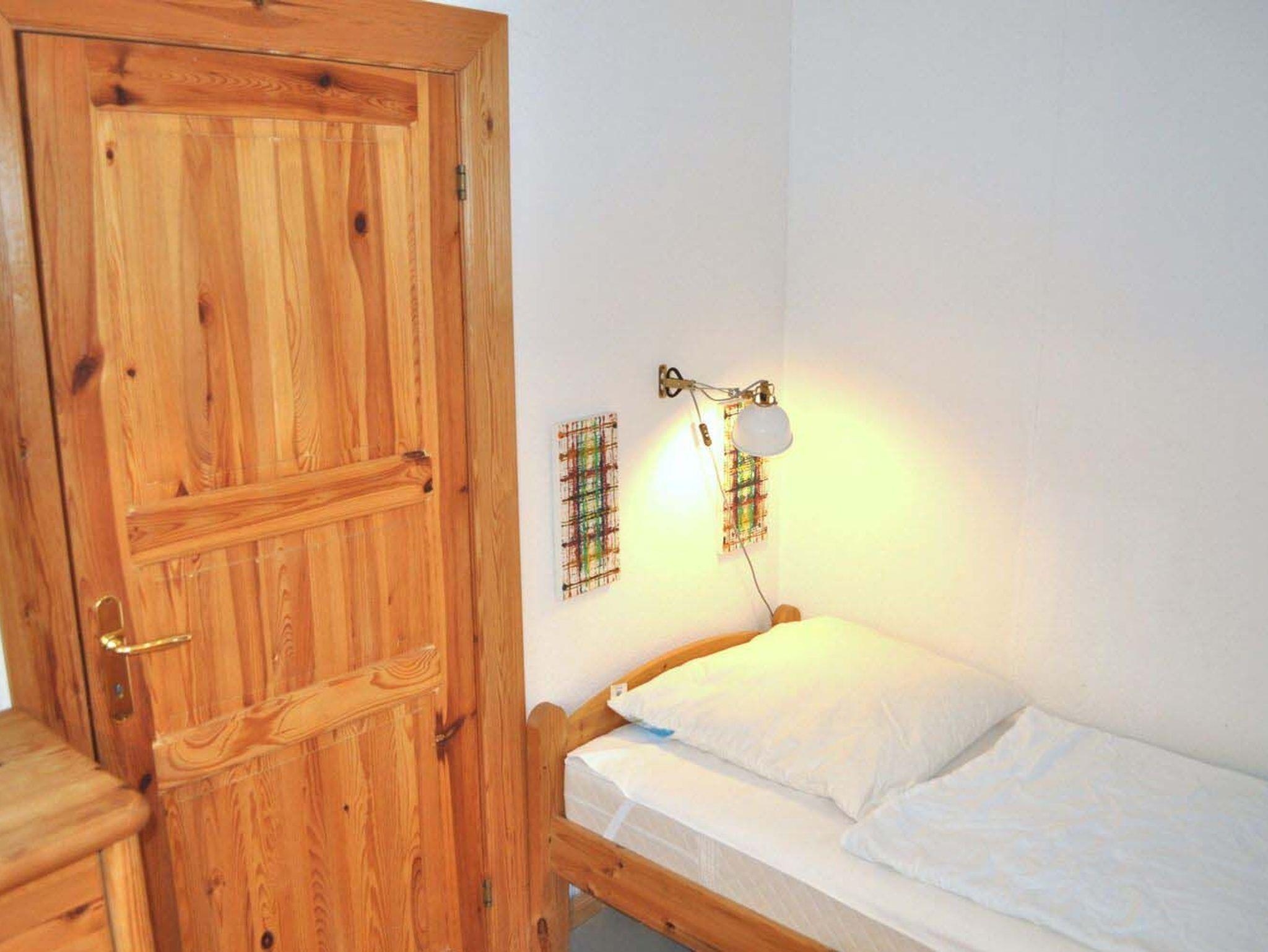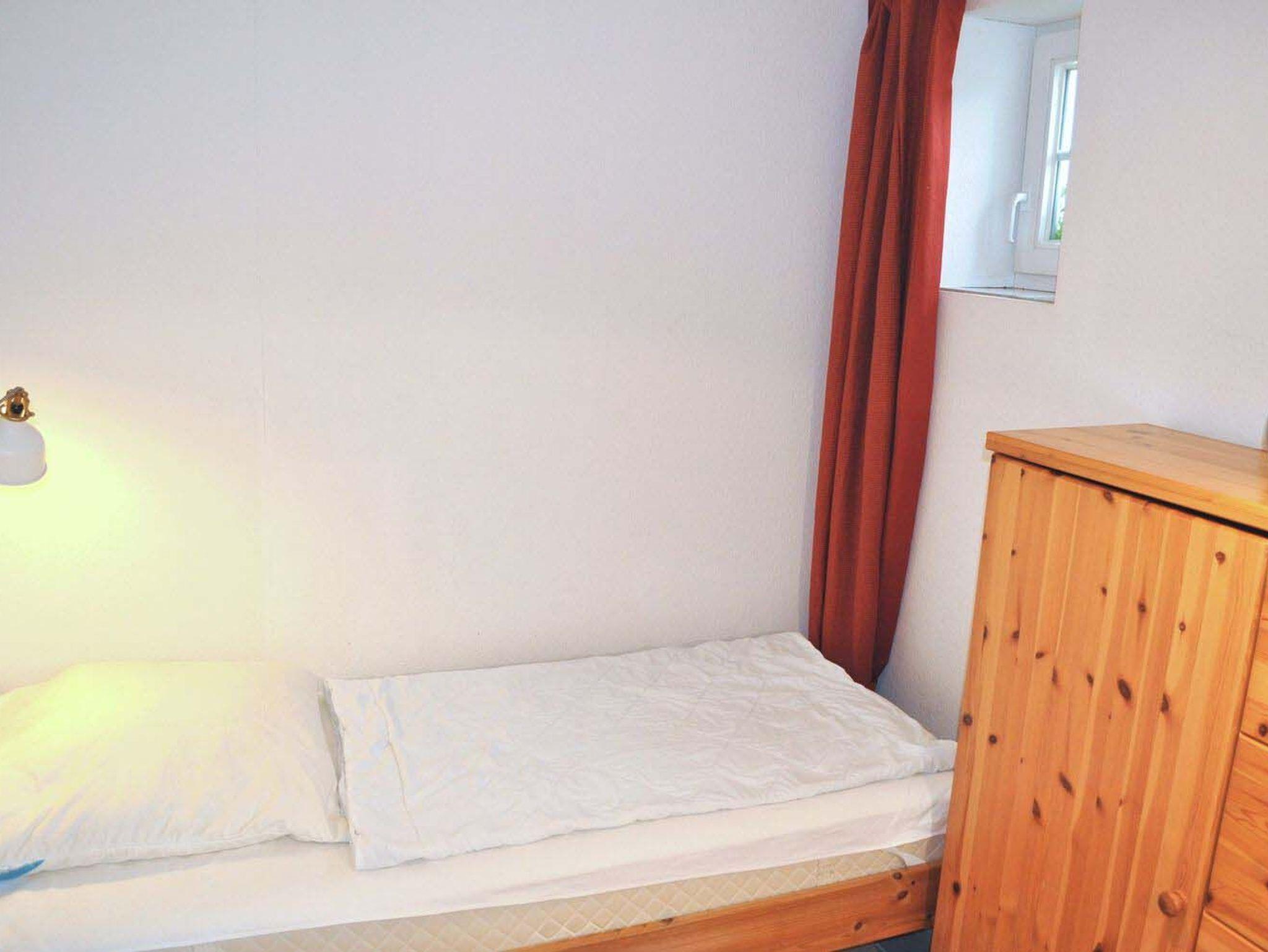Schlafzimmer 2: 2 Kommoden, Bügelbrett, CD-Stereoanlage, Einzelbett 2,00 x 0,90 m, Sessel, Stehlampe, Verdunklungsgardinen, Verdunklungsplissee