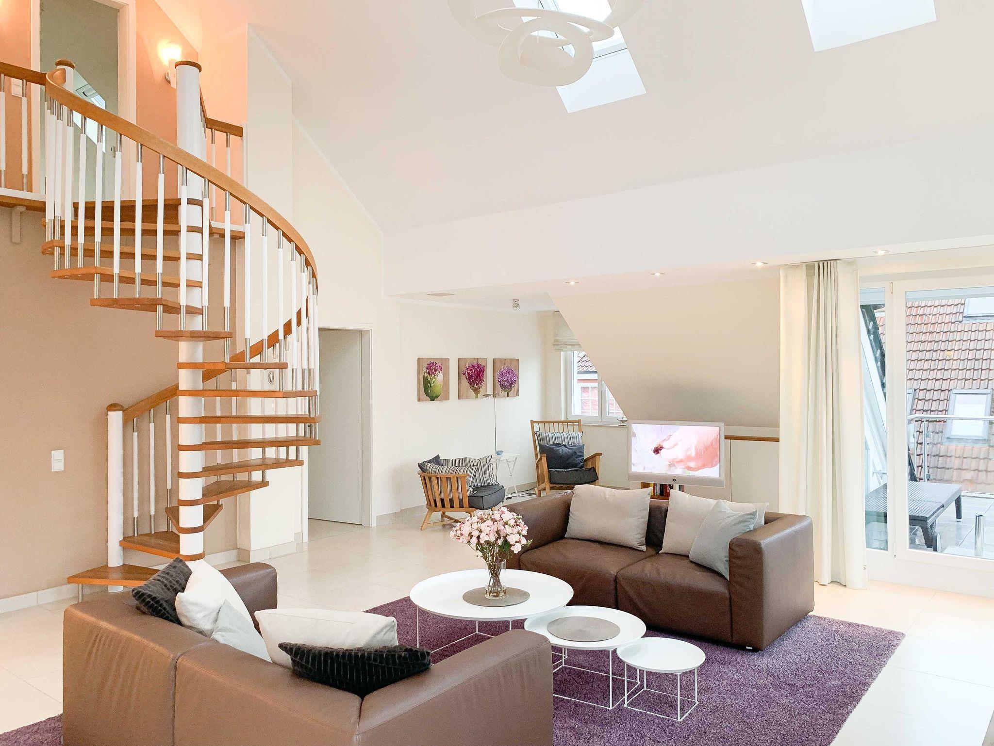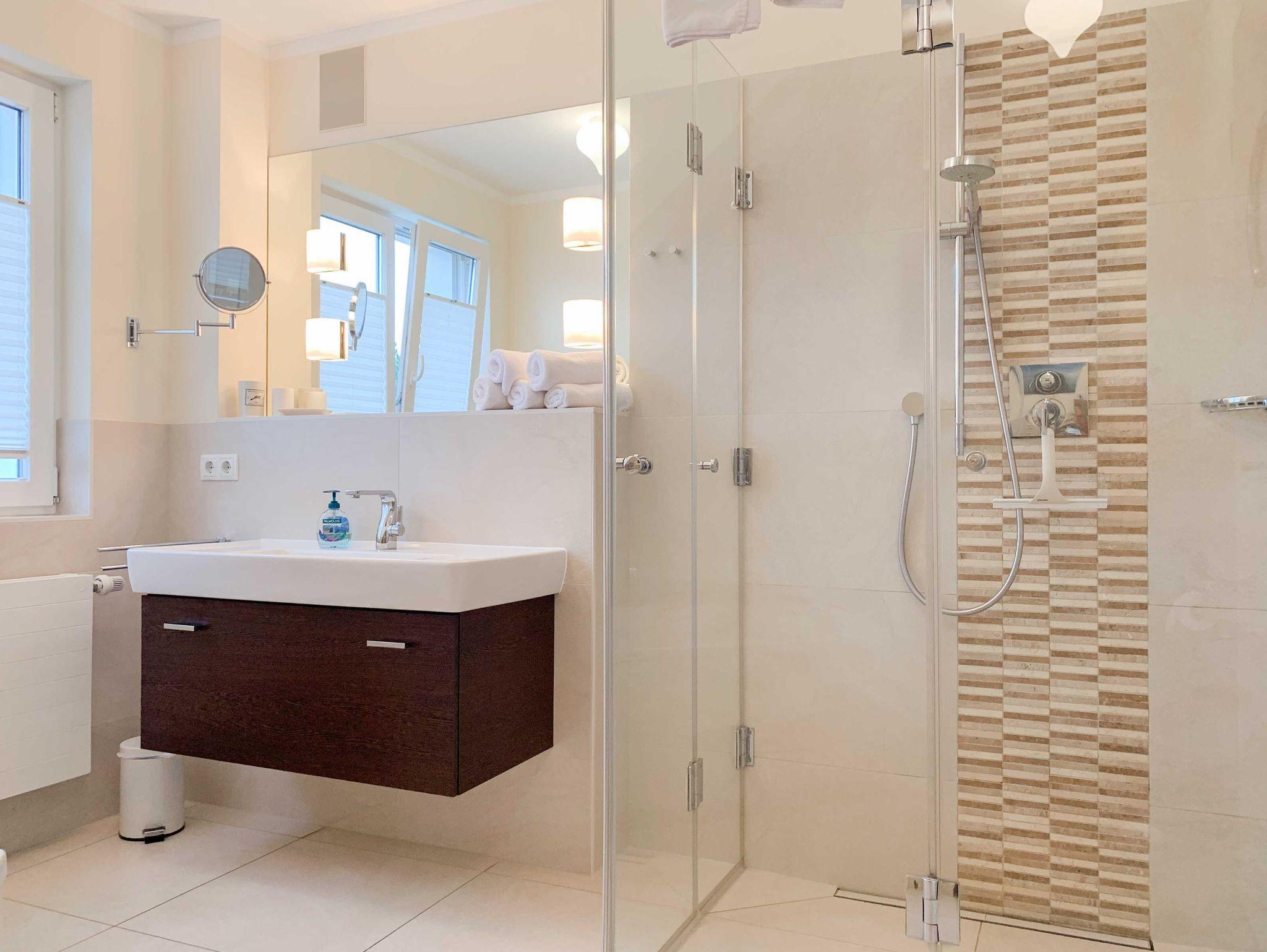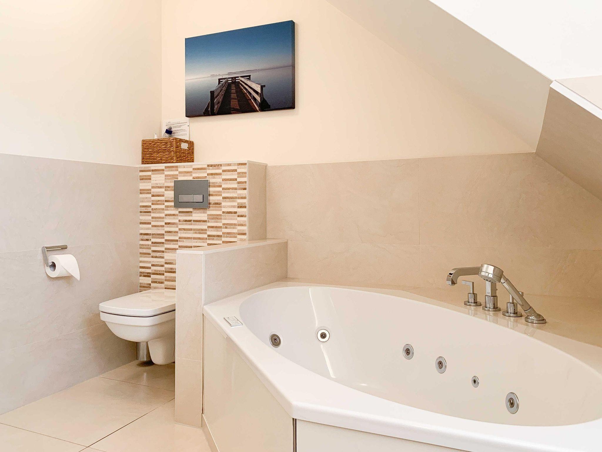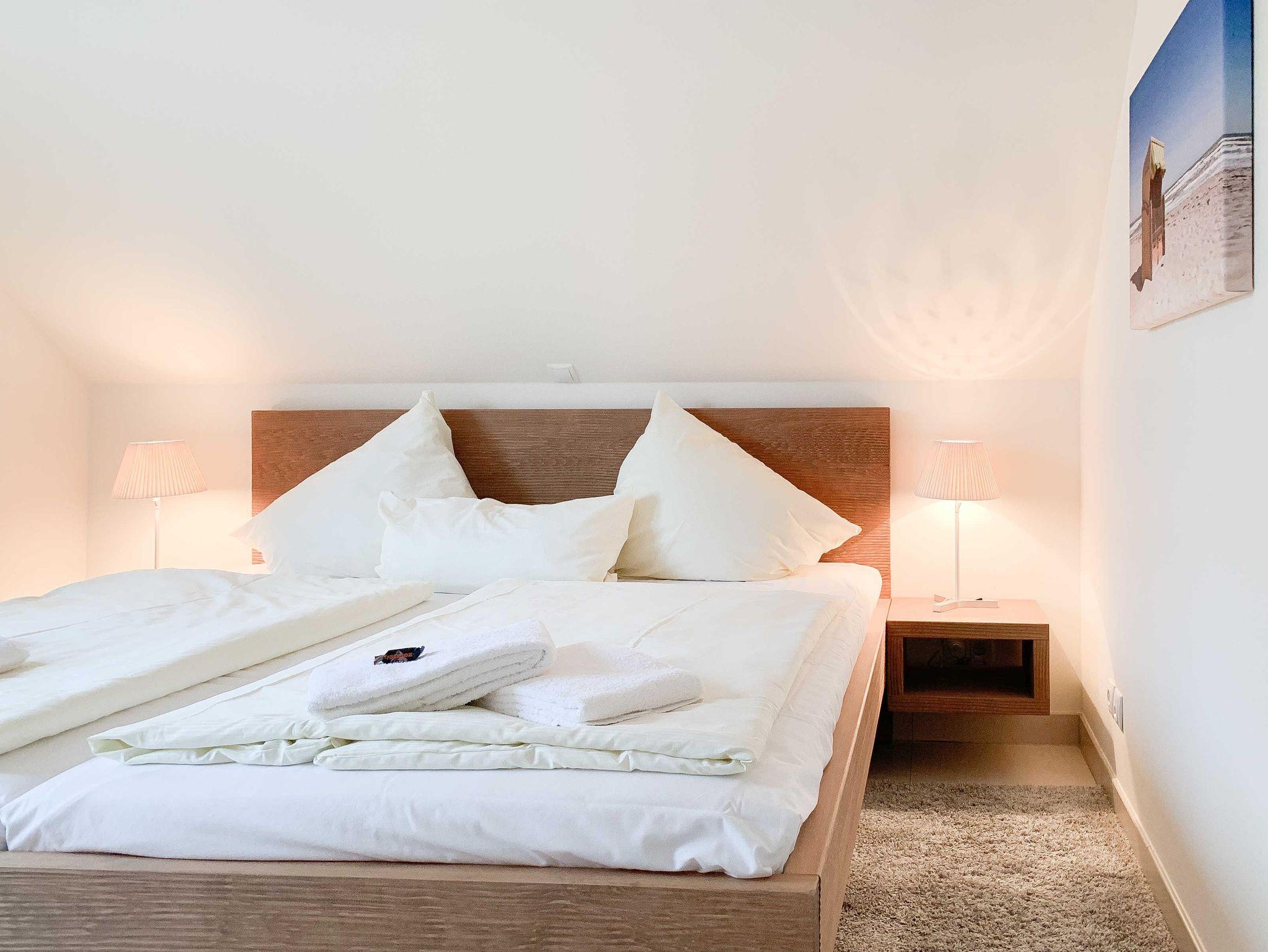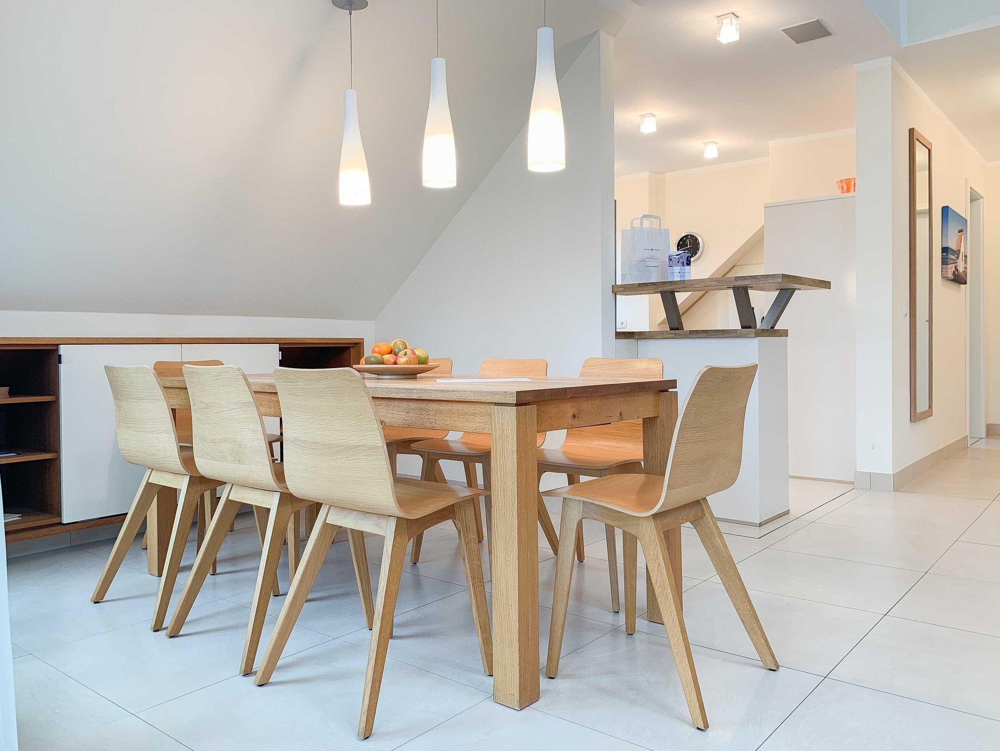 In unserem Herzstück der 144 qm großen Wohnung Captain´s Home können Sie gemütlich vor dem Holzkamin verweilen mit Freunden oder Ihrer Familie mit bis zu 6 Personen. Im Wellnessbereich finden Sie unsere Klafssauna mit Regendusche und Fitnessgeräten wie einem Crosstrainer und Ergometer. Ladestationen für Ihr Elektrofahrzeug im Carport sind vorhanden.
