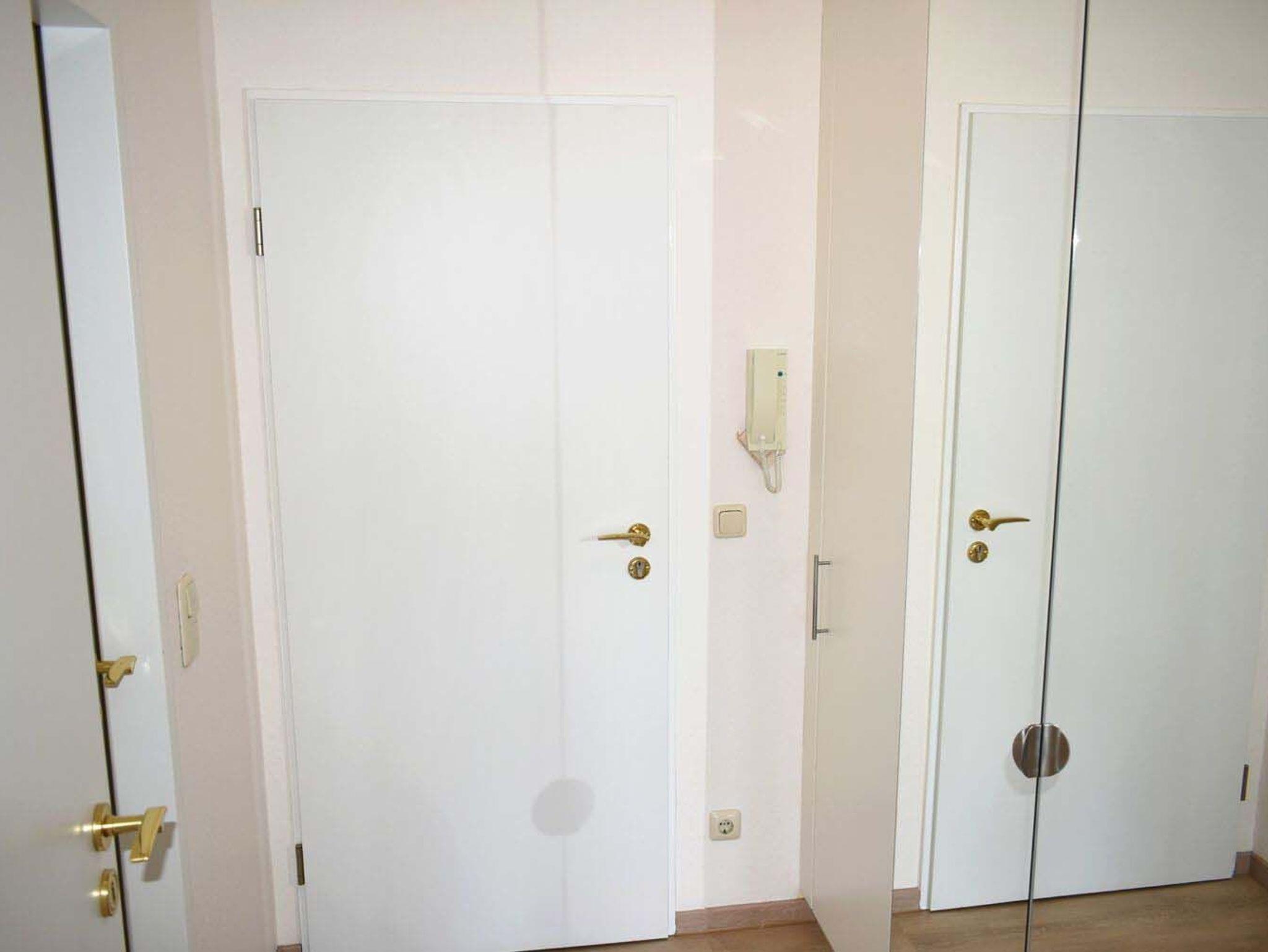 Flur: Einbauschrank, Garderobe, Spiegel, Staubsauger, Wäscheständer