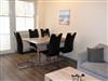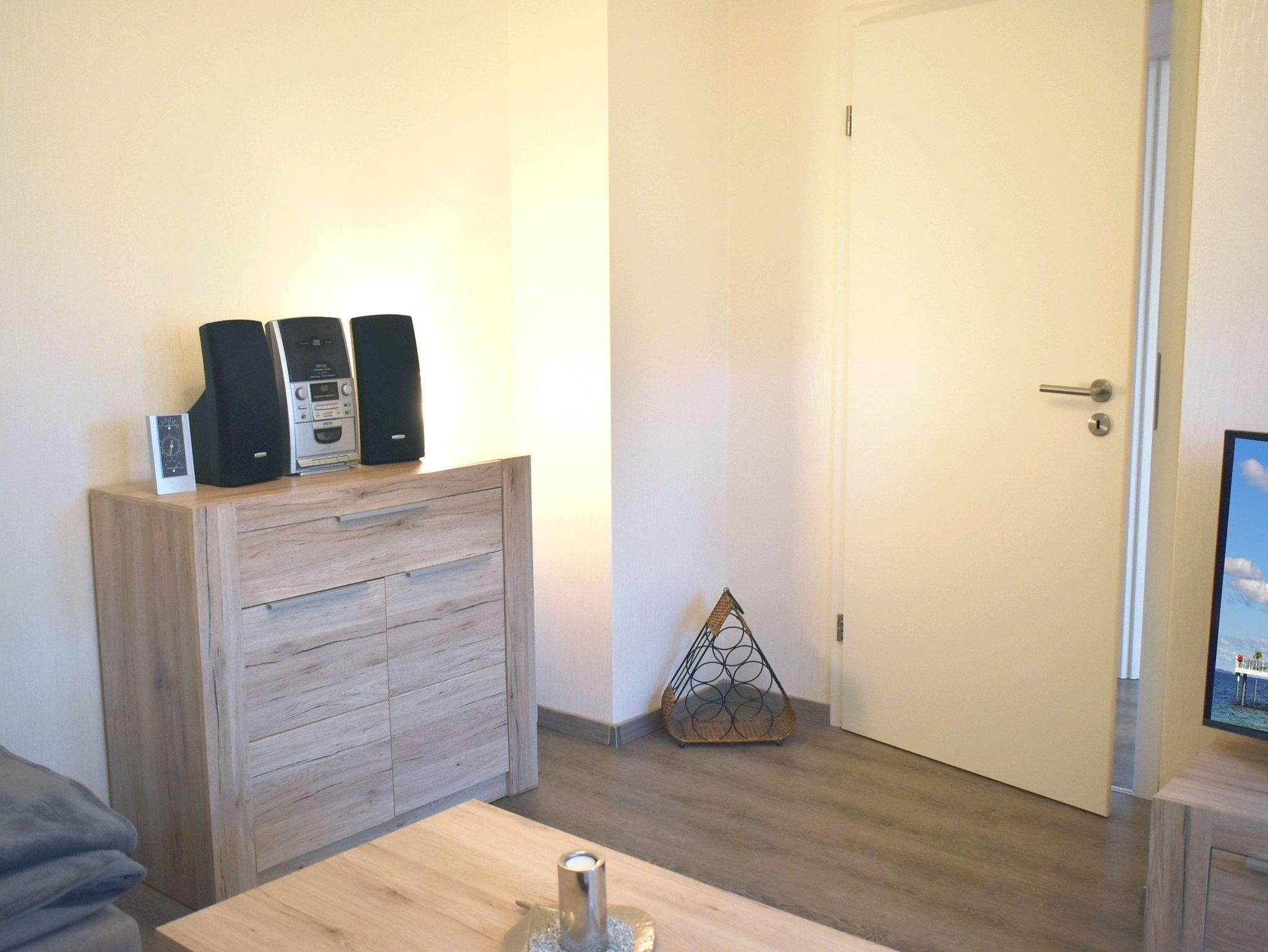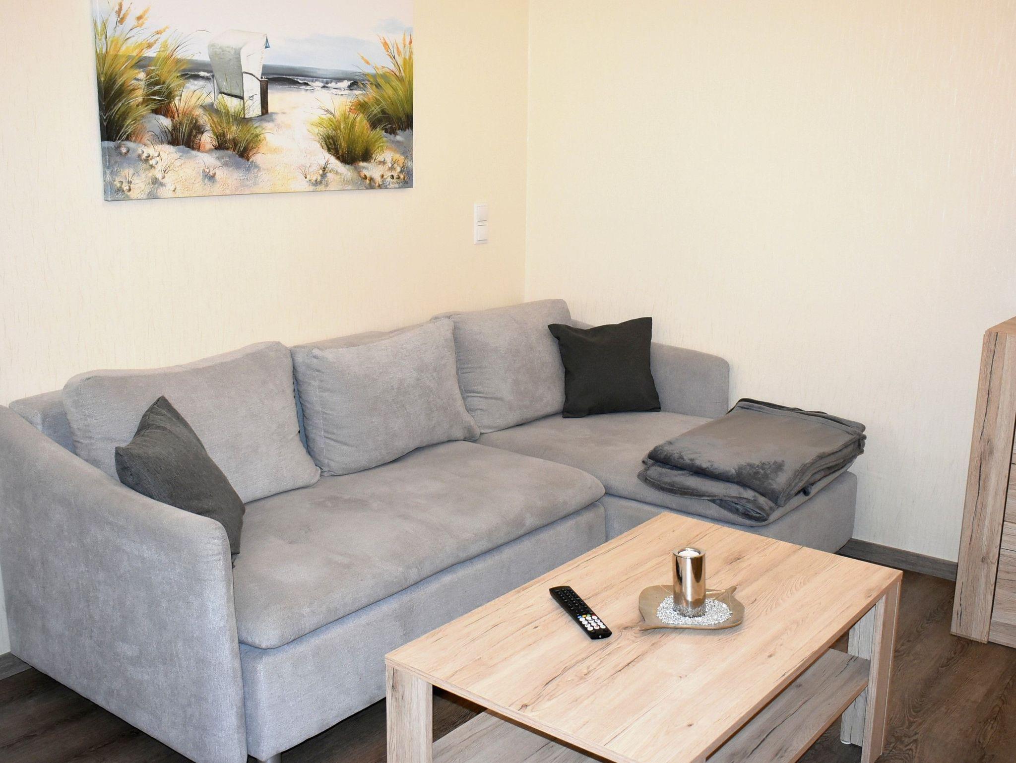 Wohnzimmer: 2 Plattenherd mit Ceranfeld, 5 Stühle, Couchtisch, Dunstabzugshaube, Eckschlafcouch, Esstisch, Flachbildschirm, Geschirr, Kabel-TV, Kaffeemaschine, Kochtöpfe, Kommode, Küchenzeile, Kühlschrank, Mikrowelle, Stereoanlage mit CD-Player, Toaster, TV-Unterschrank, Wasserkocher