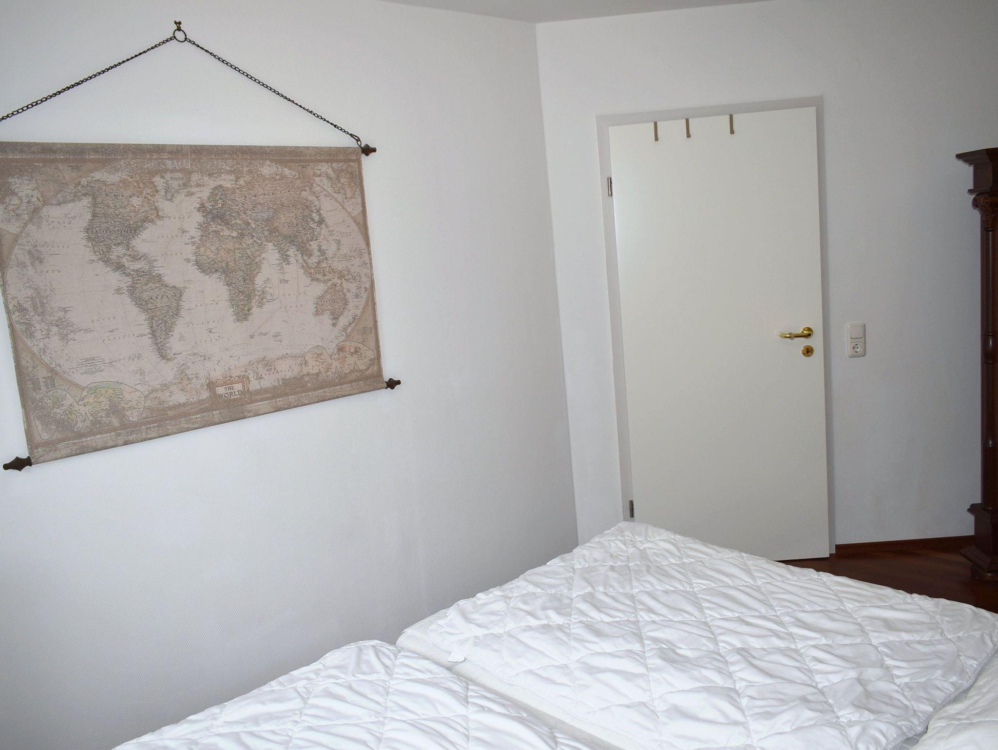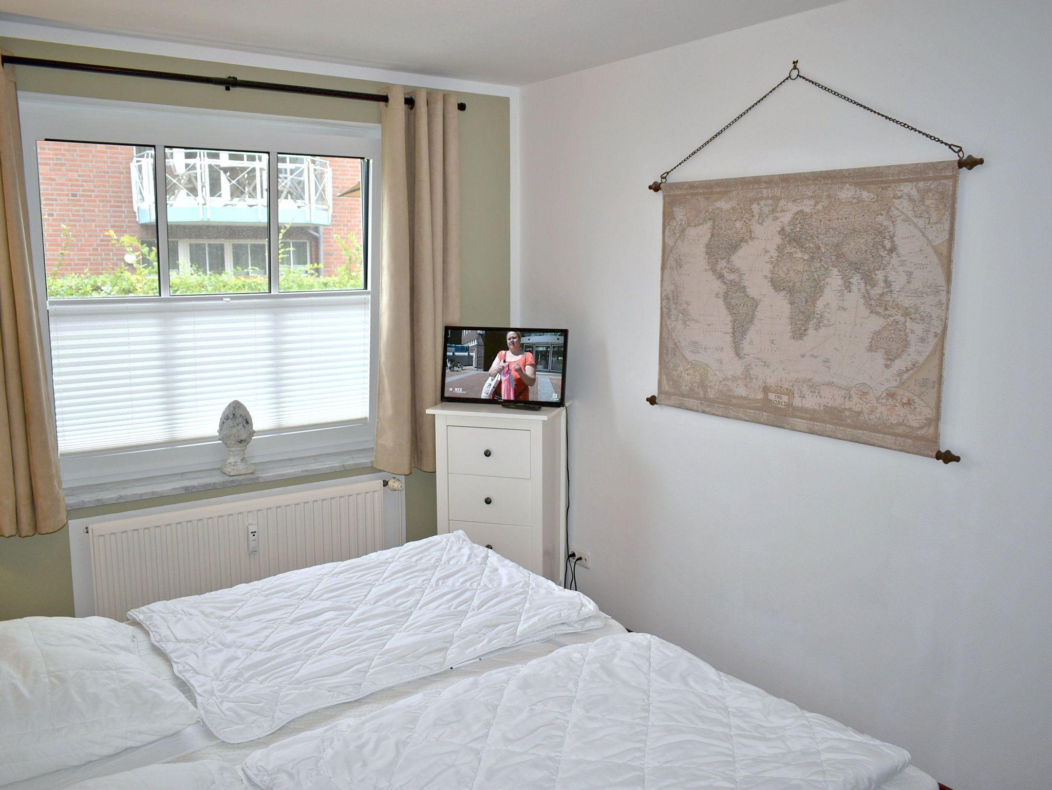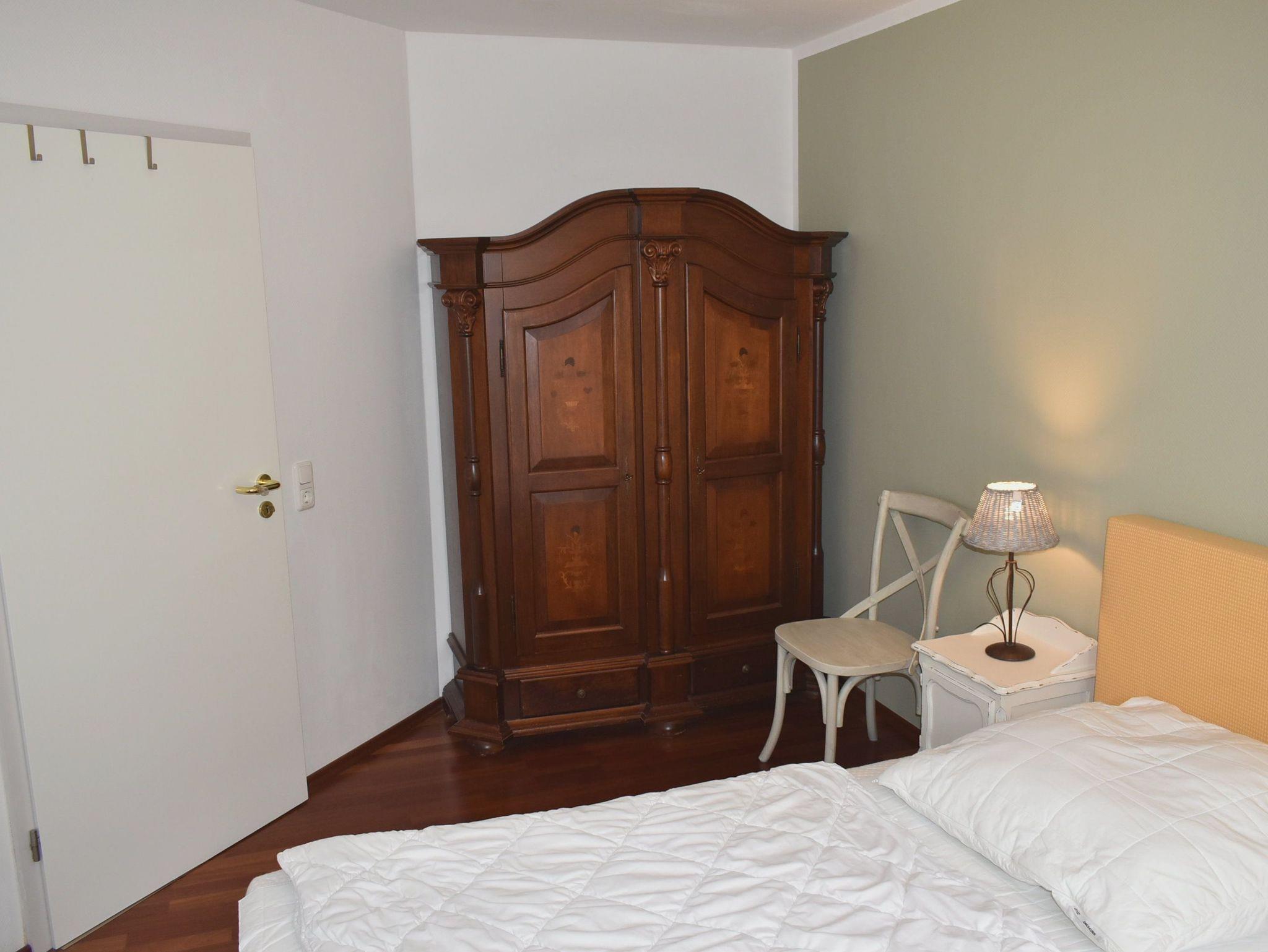 Schlafzimmer 1: 2 Matratzen, 2 Nachttische, Boxspringbett 2,00 x 2,00 m, Flachbildschirm, Kabel-TV, Kleiderschrank, Regal, Stuhl