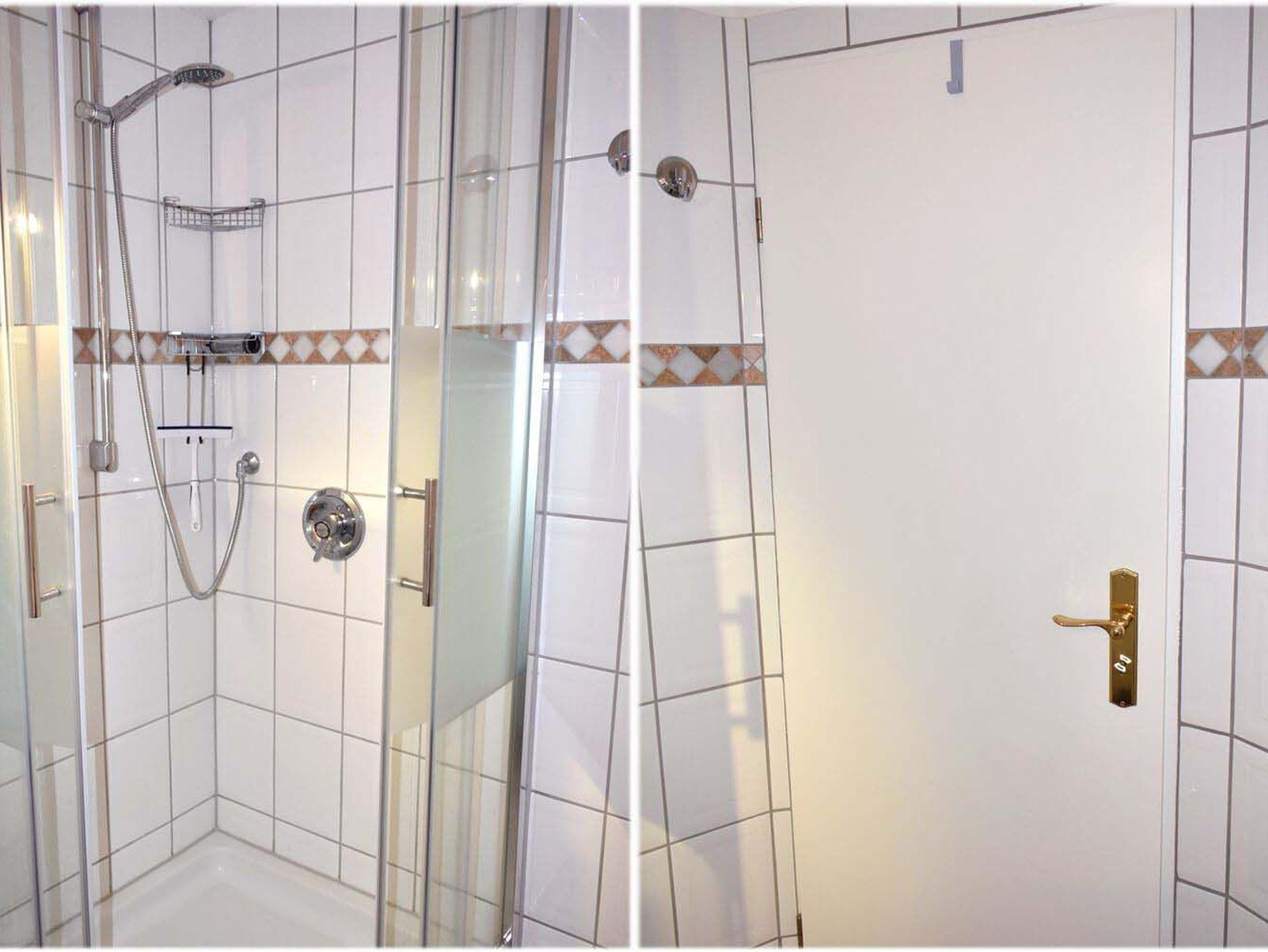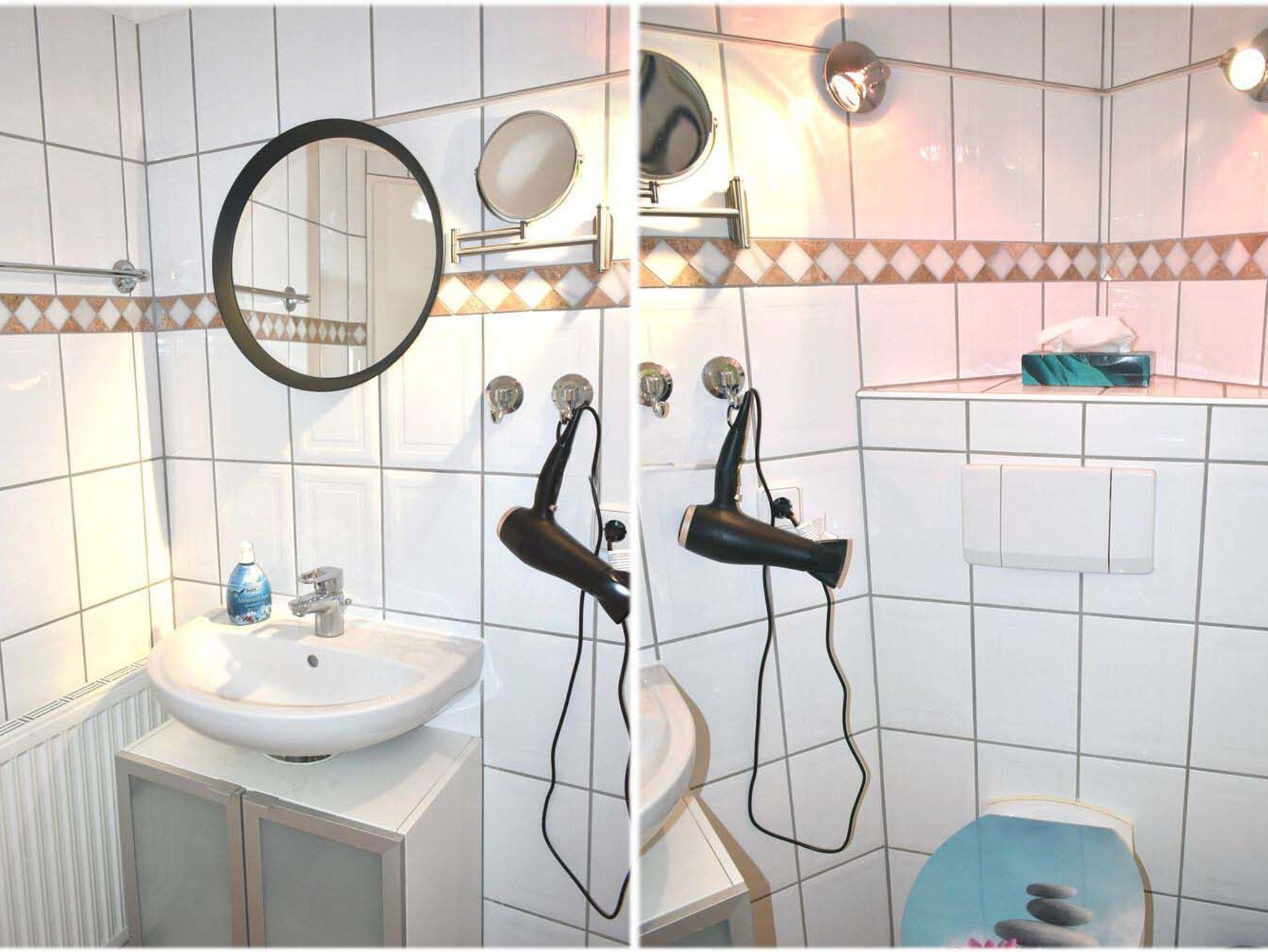 Bad 2: Duschkabine, Spiegel, Waschbecken, WC