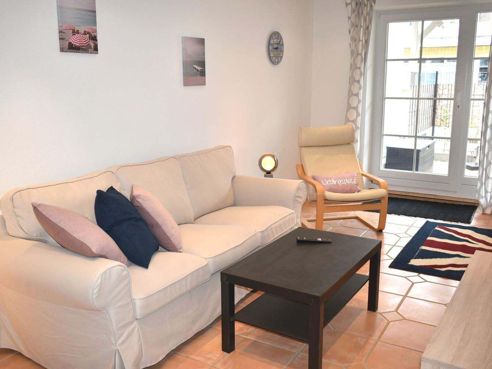 Terrasse: 4 Stühle, Strandkorb, Tisch