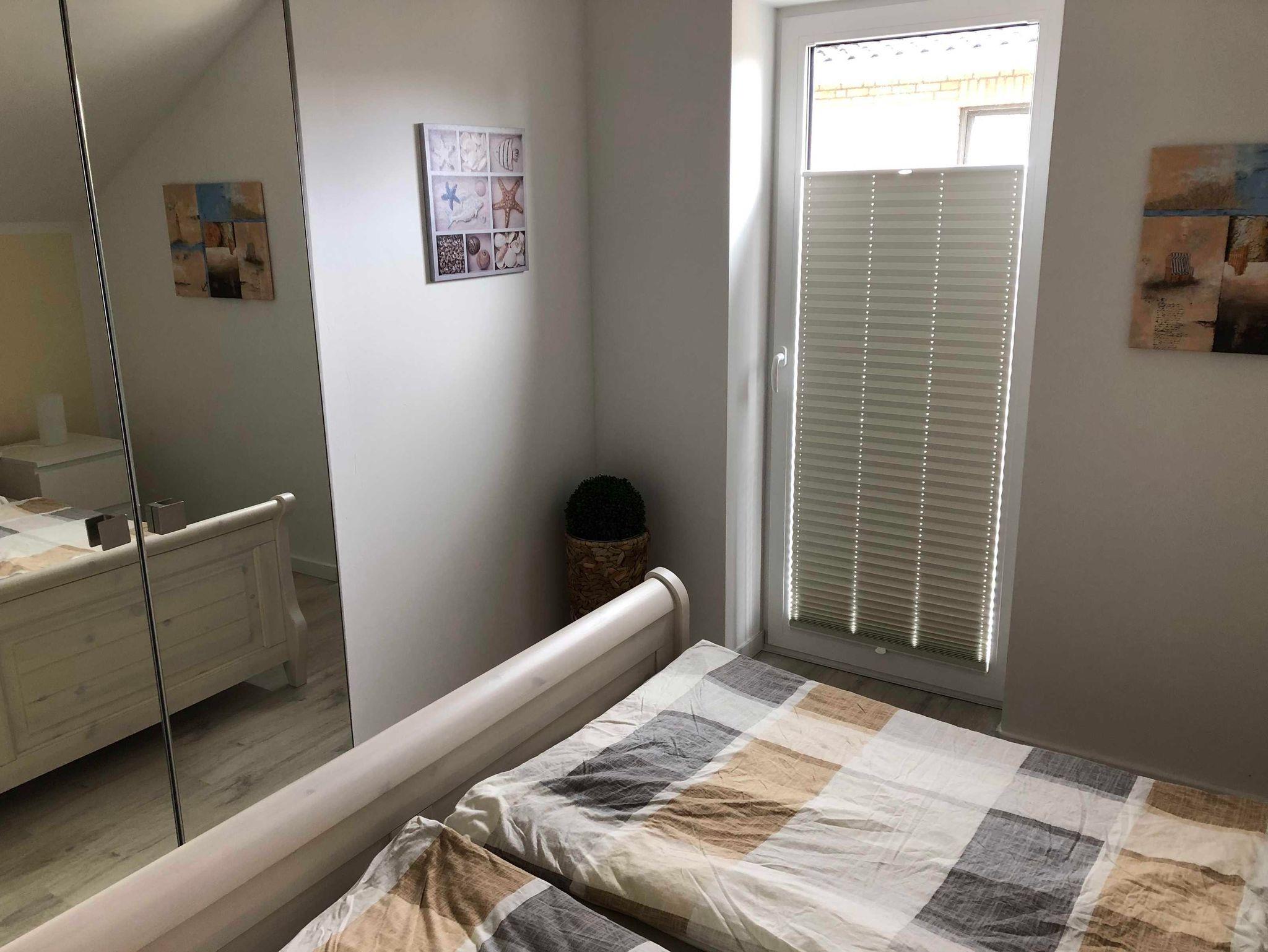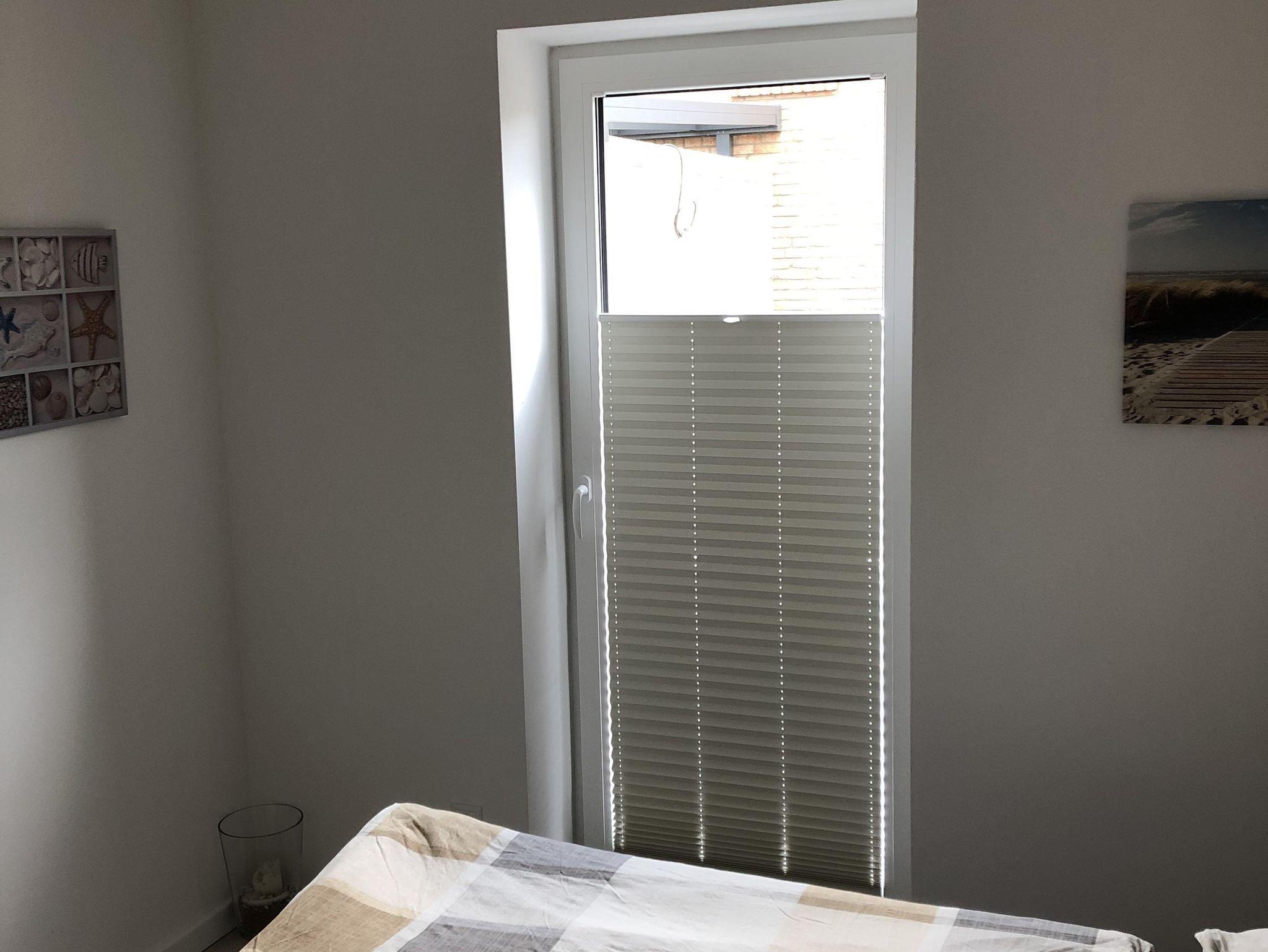 In den Schlafräumen sind an den Bodentiefen Fenstern Verdunkelungsrollos angebracht.