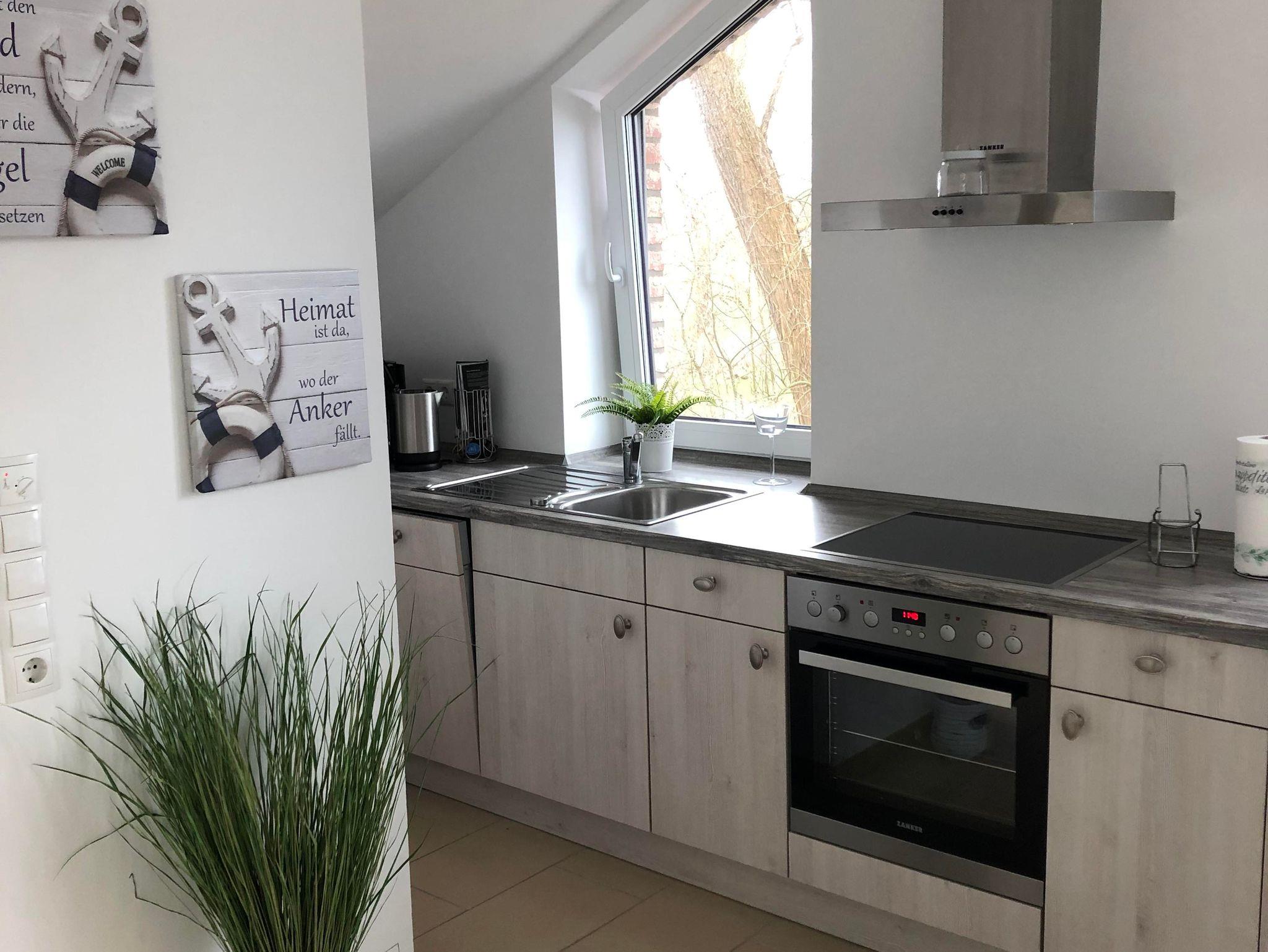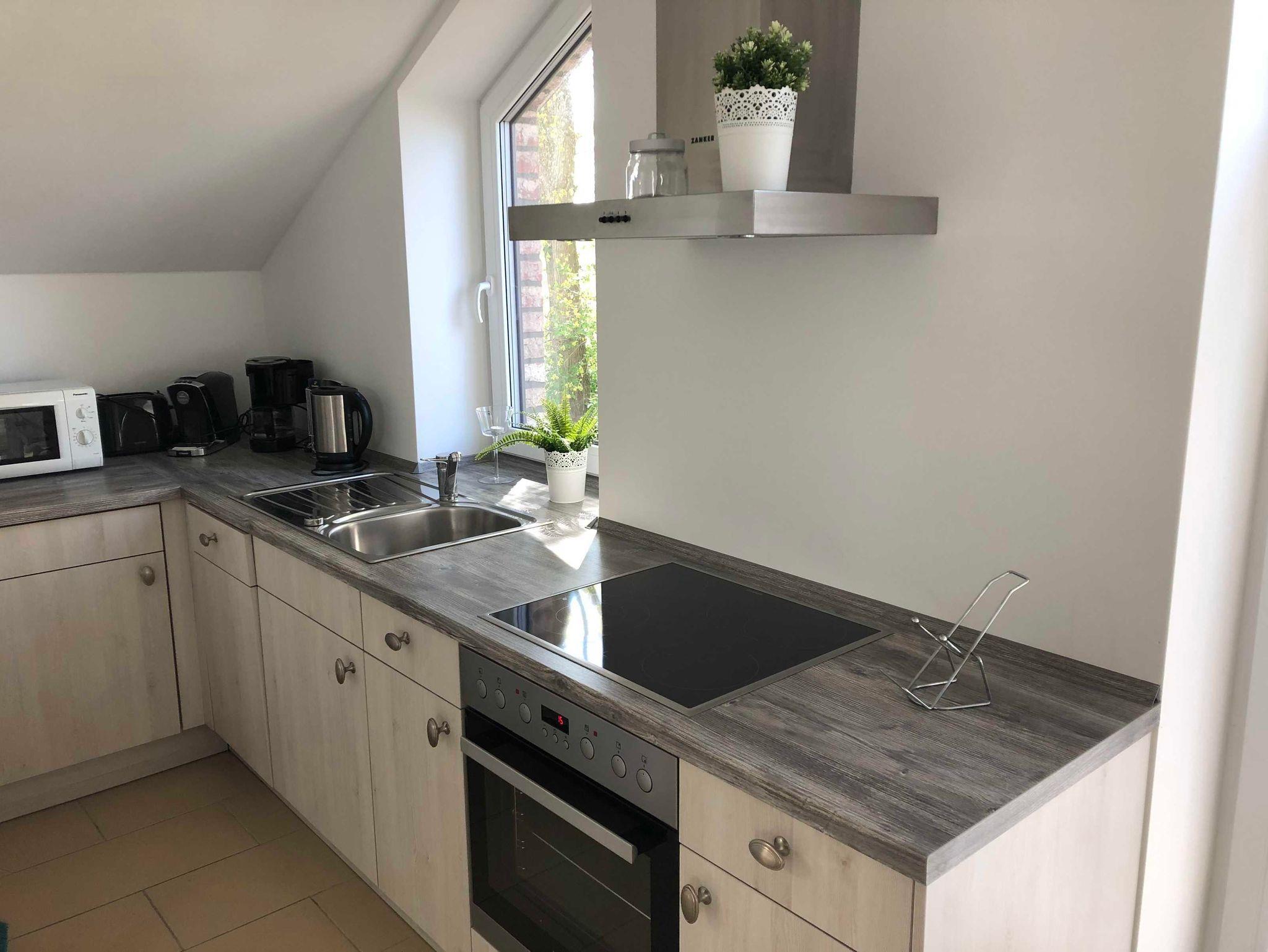Die Wohnung verfügt über eine offene Küche mit Geschirrspüler, Cerankochfeld mit 4 Feldern, Backofen, Kühlschrank mit Gefrierfach, Toaster, Kaffeemaschine,Caffisimo Maschine,Wasserkocher, Mikrowelle und genügend Geschirr sowie Gläser.