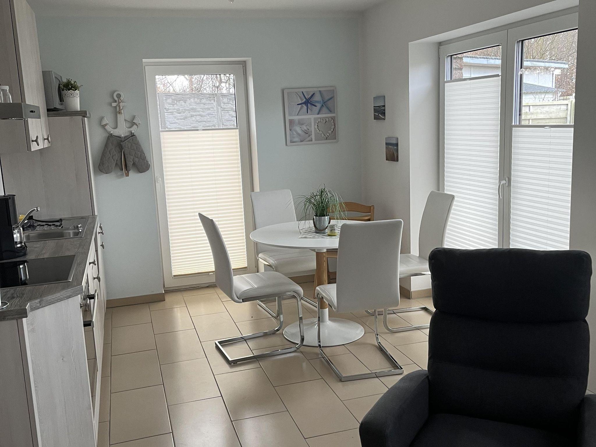Es grenzt der Eßbereich mit Eßtisch und vier Stühlen an die Küche.