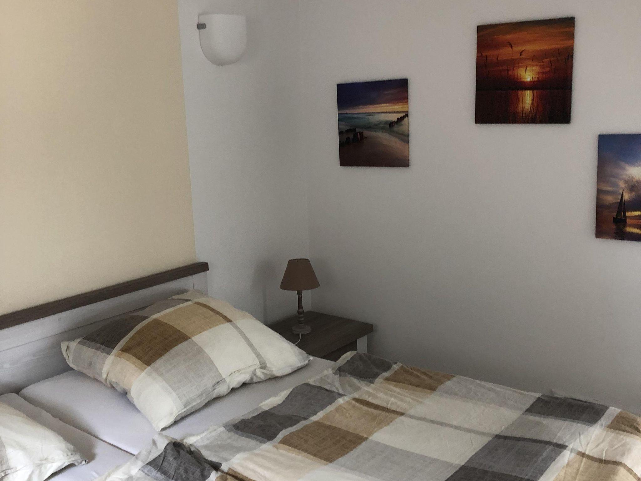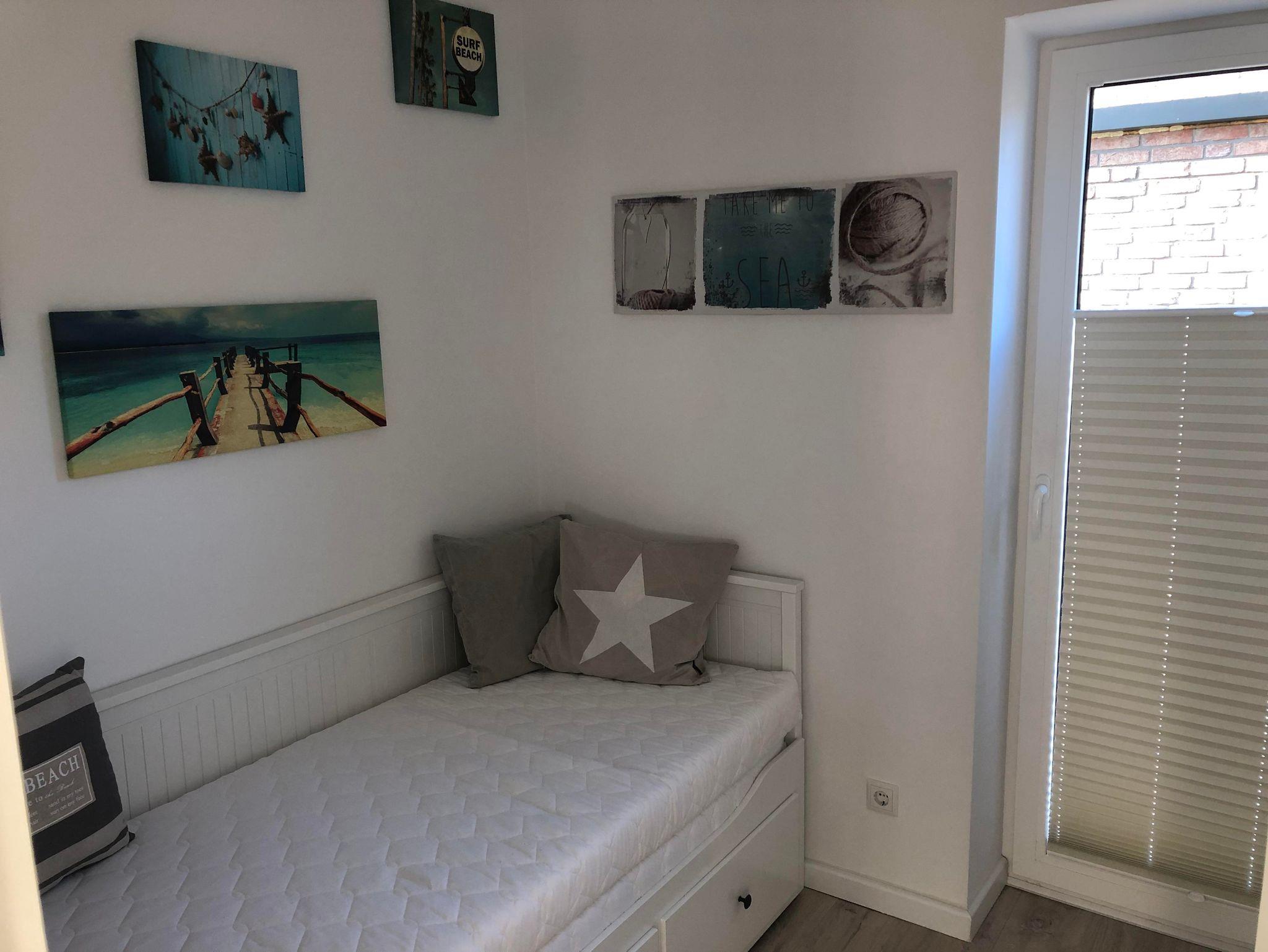 Im Schlafzimmern gibt es ein 180x200cm grosses Doppelbett und ein Kleiderschrank. Im Kinderzimmern gibt es ein Futtonbett ( für 2 Kinder geeignet) sowie einen Schrank.
