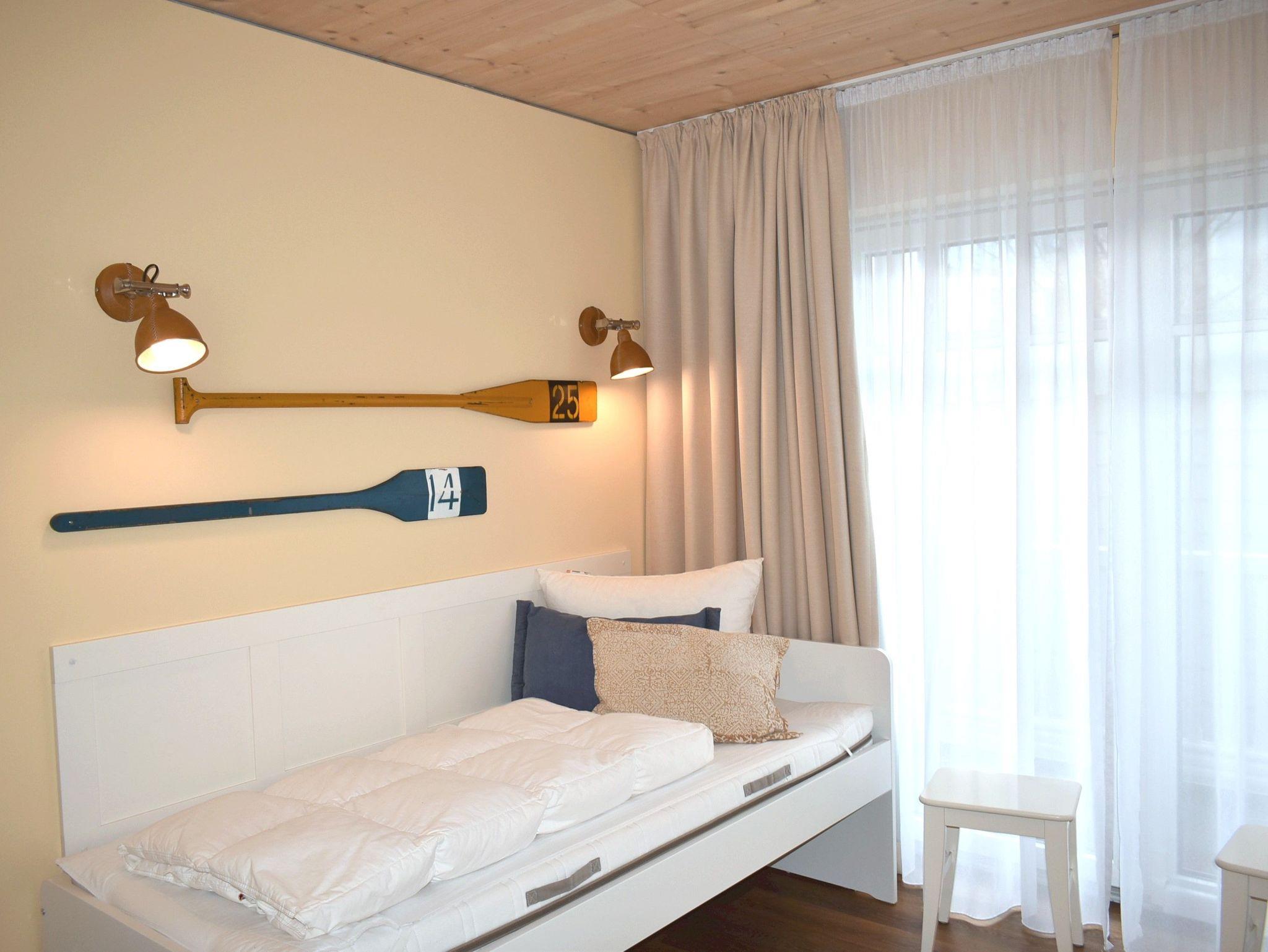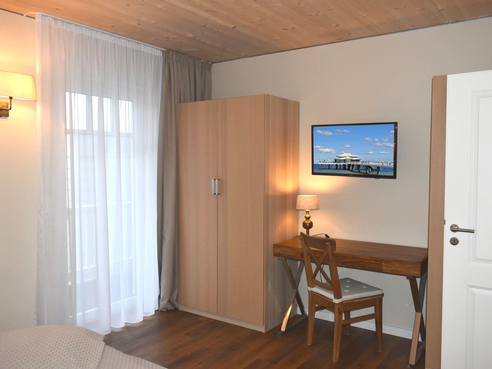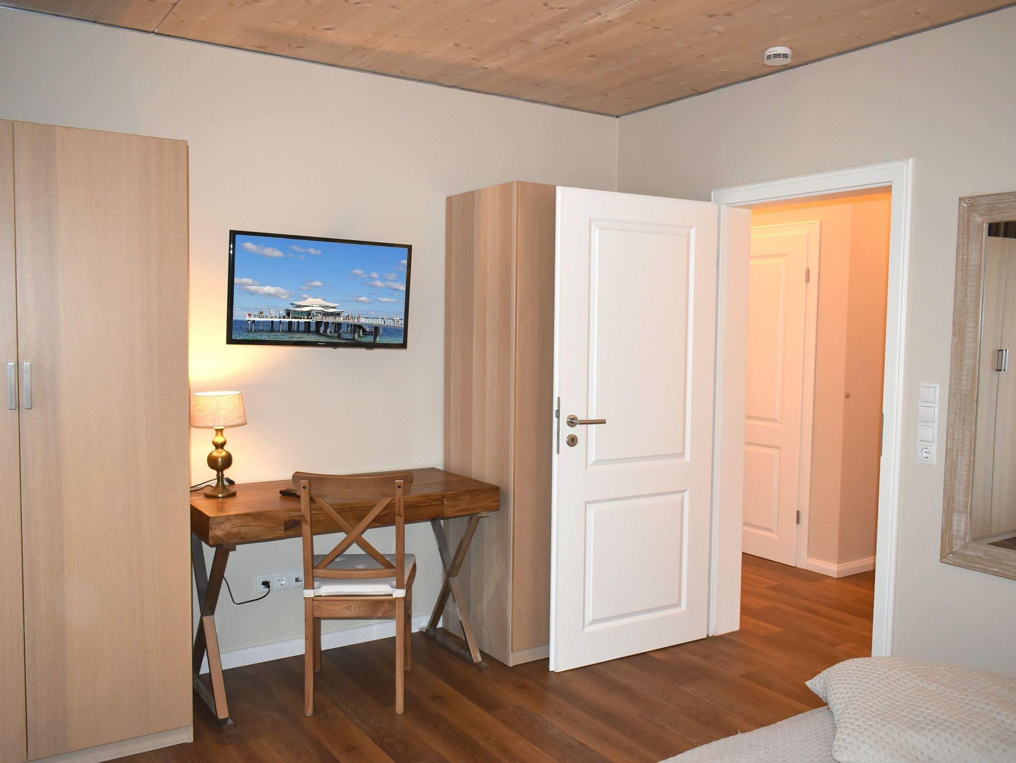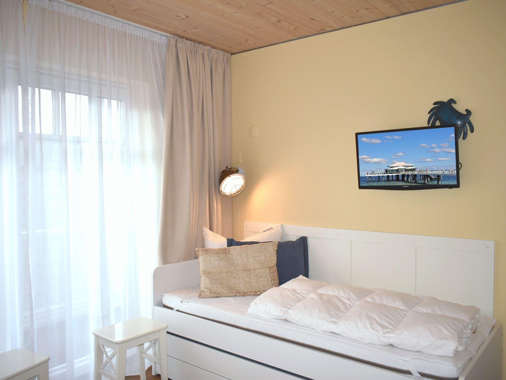 Schlafzimmer 2: 2 Einzelbetten 2,00 x 0,80 m, Flachbildschirm, Hocker, Kleiderschrank, Kommode, Korbstuhl, Sat-TV, Tisch