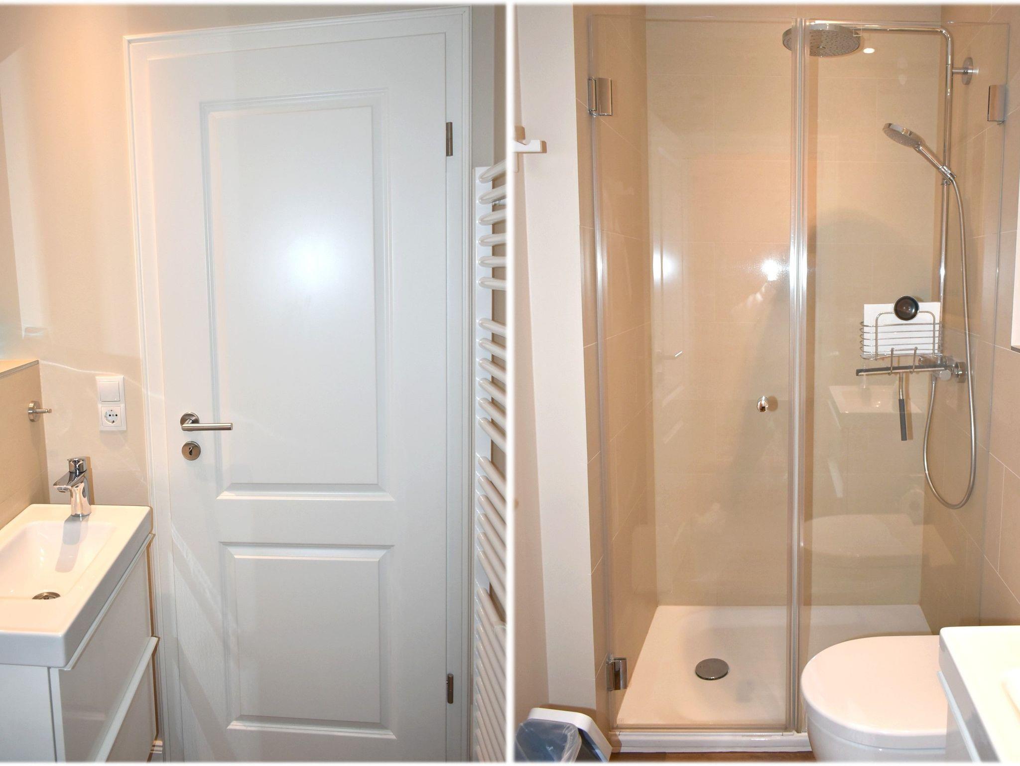 Bad 1: Duschkabine, Fön, Kosmetikspiegel, Regen-Dusche, Spiegel, Unterschrank, Waschtisch, WC
