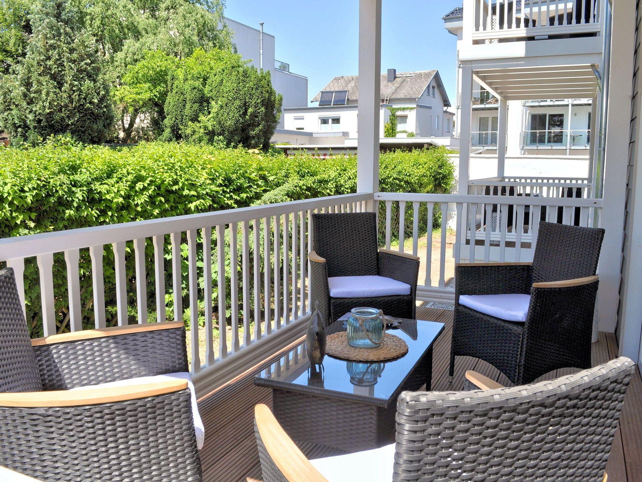Balkon 2: Süd- Westlage, 2 Korbstühle, überdacht